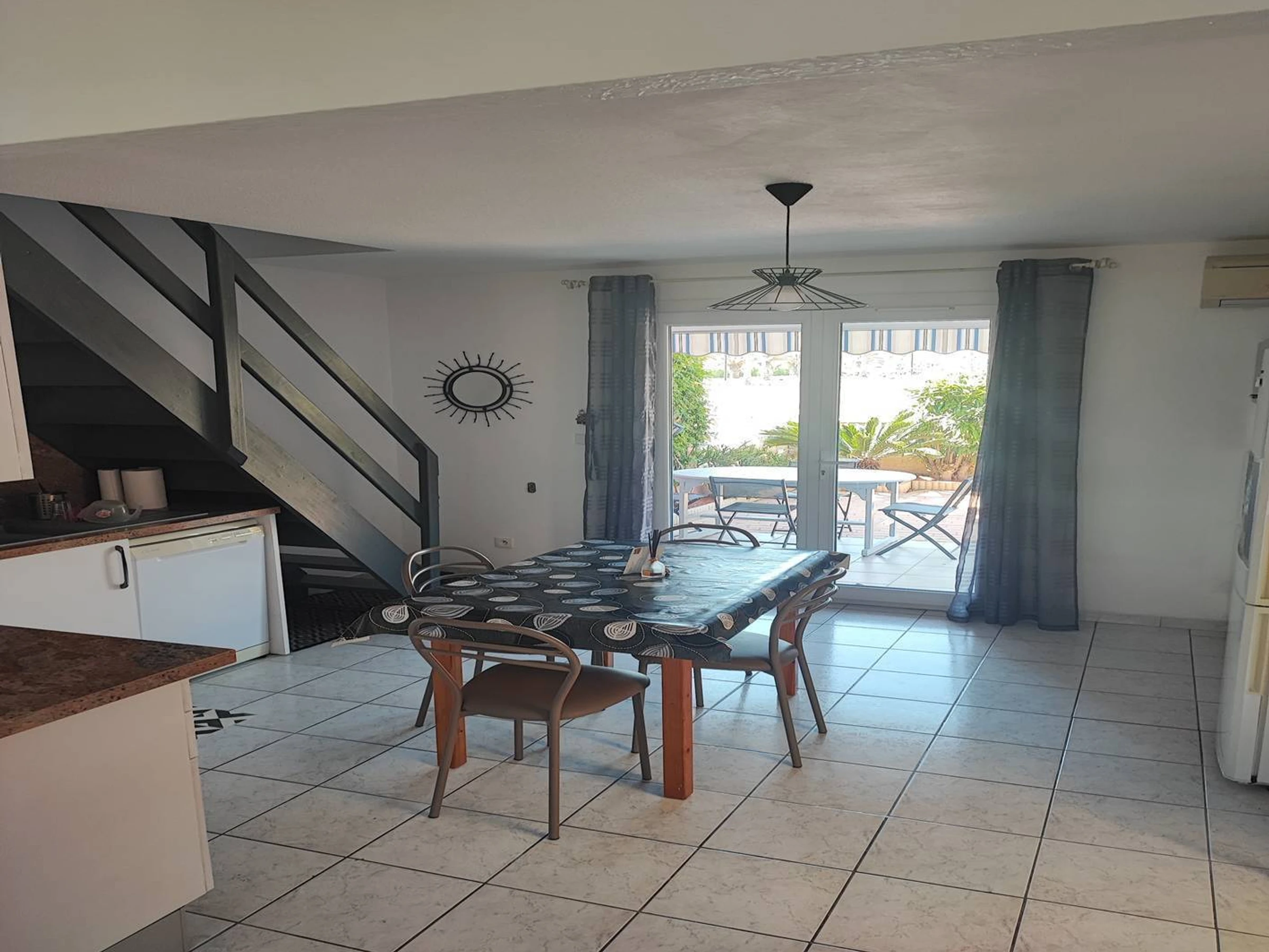 Esta cómoda y agradable villa vacacional de 3 habitaciones (50 m²) cuenta con: un salón-comedor con aire acondicionado, zona de descanso (sofá cama para 2 personas) y TV; una cocina americana totalmente equipada (vitrocerámica, horno, lavavajillas, microondas, frigorífico/congelador); un aseo independiente con lavabo; y un lavadero contiguo (con acceso desde la terraza) con lavadora y un pequeño frigorífico adicional.