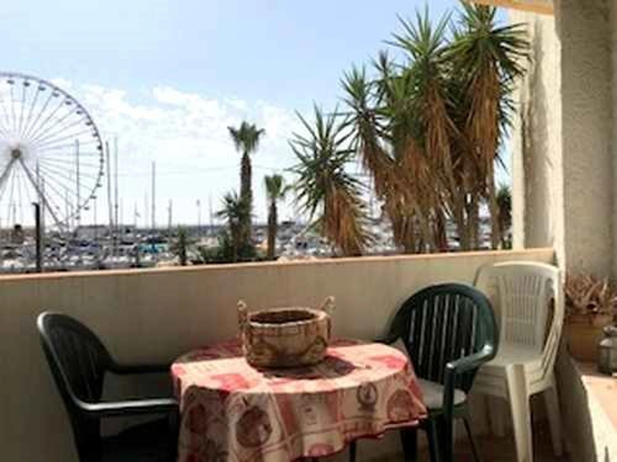Este espacioso y confortable apartamento de dos habitaciones, de aproximadamente 55 m², cuenta con un salón-comedor con zona de TV y sofá cama (para 2 personas) que da a una terraza amueblada con vistas al puerto y al mar. Dispone de una cocina independiente totalmente equipada (lavavajillas, vitrocerámica de dos fuegos, microondas y frigorífico/congelador). El dormitorio principal cuenta con una cama de matrimonio (para 2 personas) y un armario empotrado. El baño dispone de lavadora y hay un aseo independiente. Además, se encuentra cerca de la playa y las tiendas, y cuenta con una plaza de aparcamiento privada. El apartamento tiene capacidad para 4 personas.