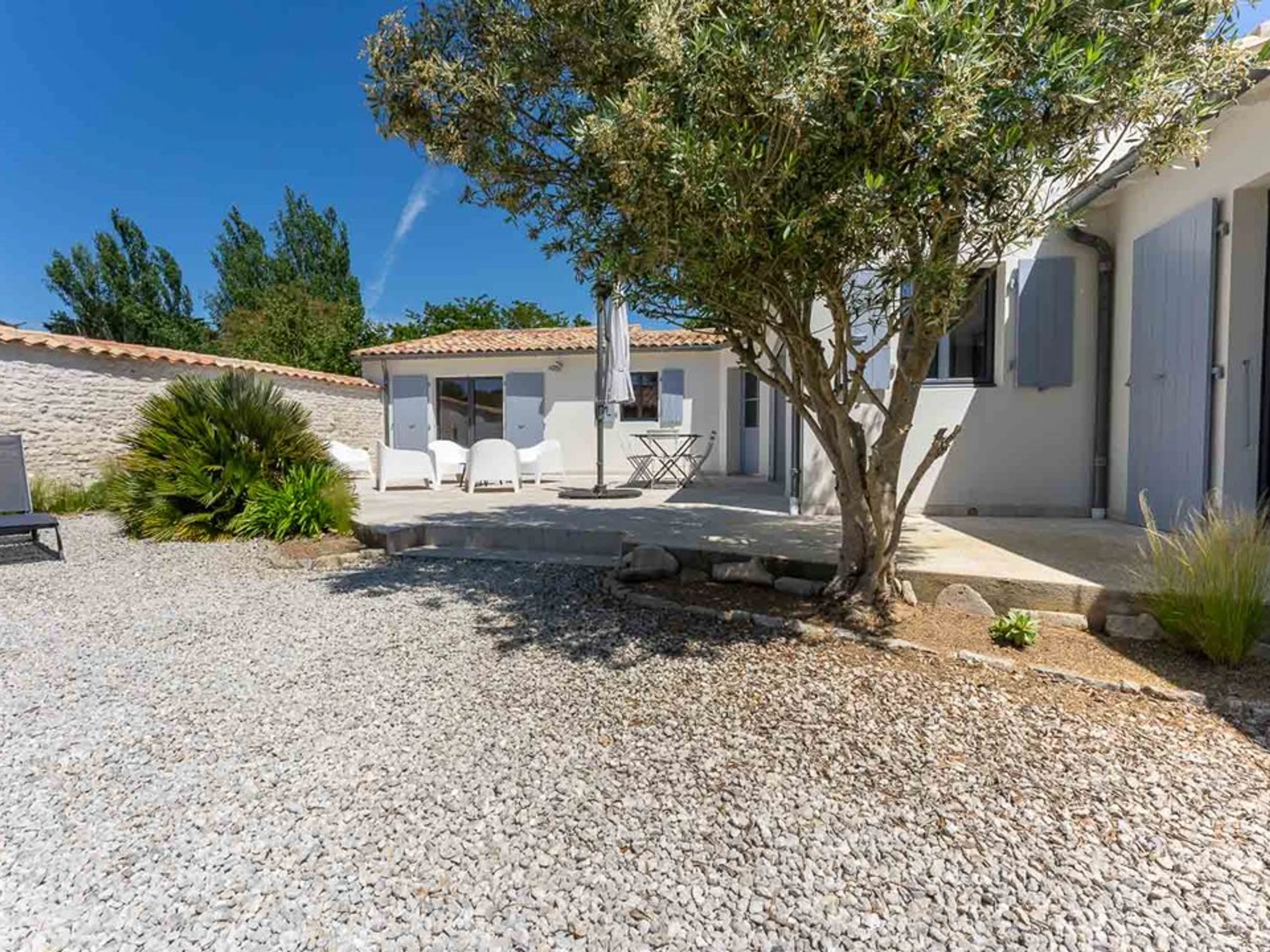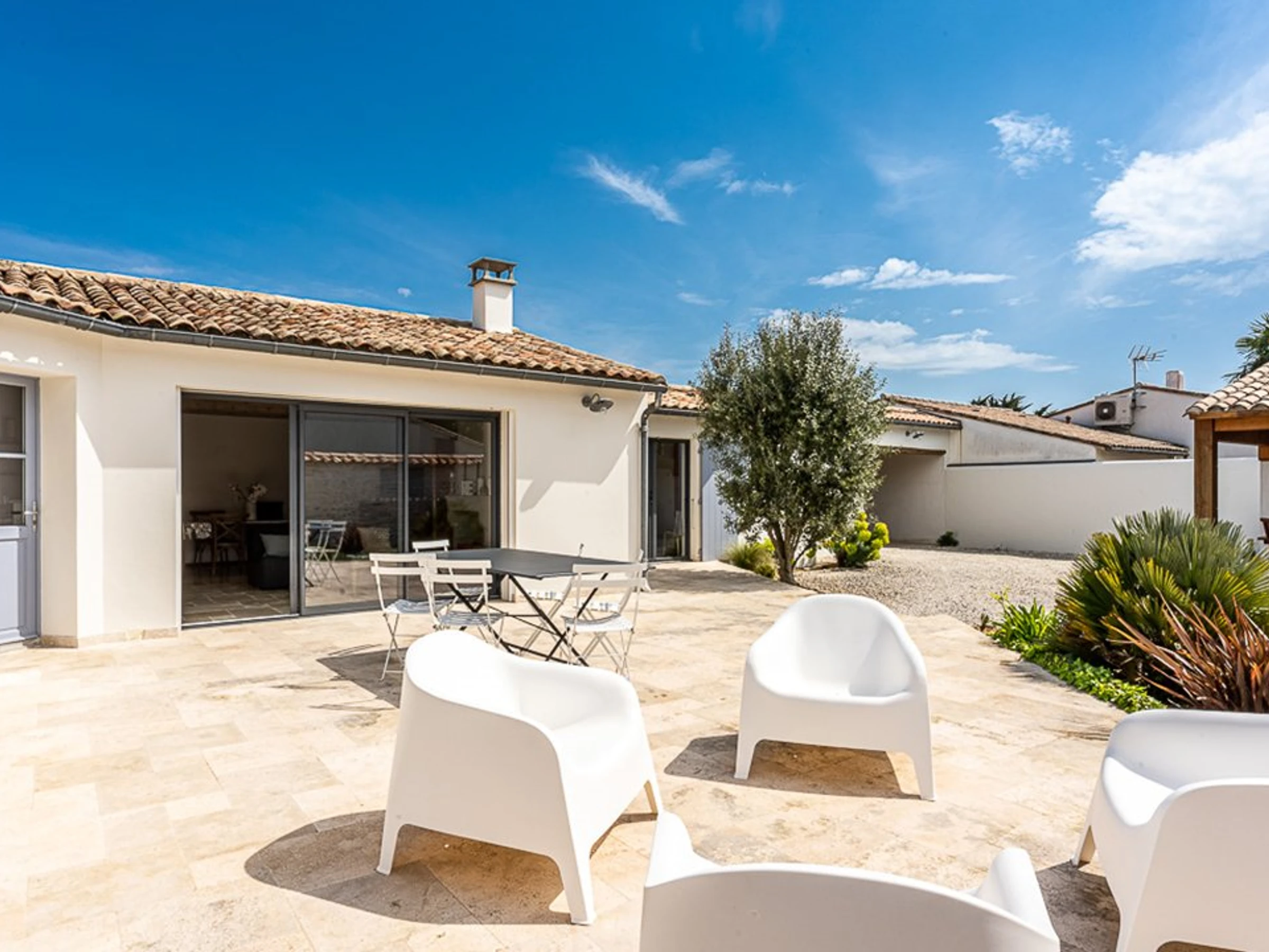 Apreciarás los diferentes espacios de esta casa de una sola planta de 110m², con su patio, su patio cubierto y su terraza exterior.