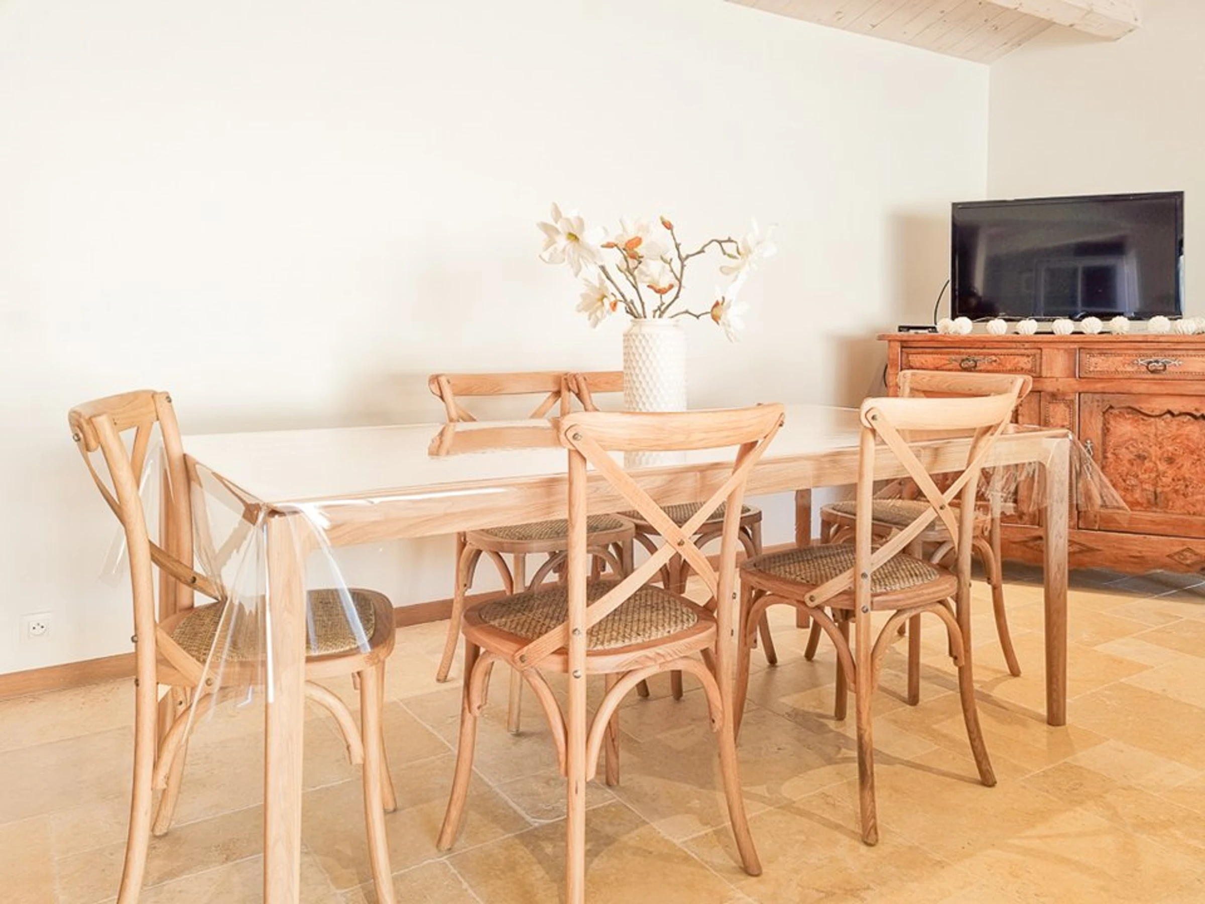 La casa La Clef des champs, orientada al suroeste, se compone de un salón-comedor, una cocina equipada y 3 dormitorios.