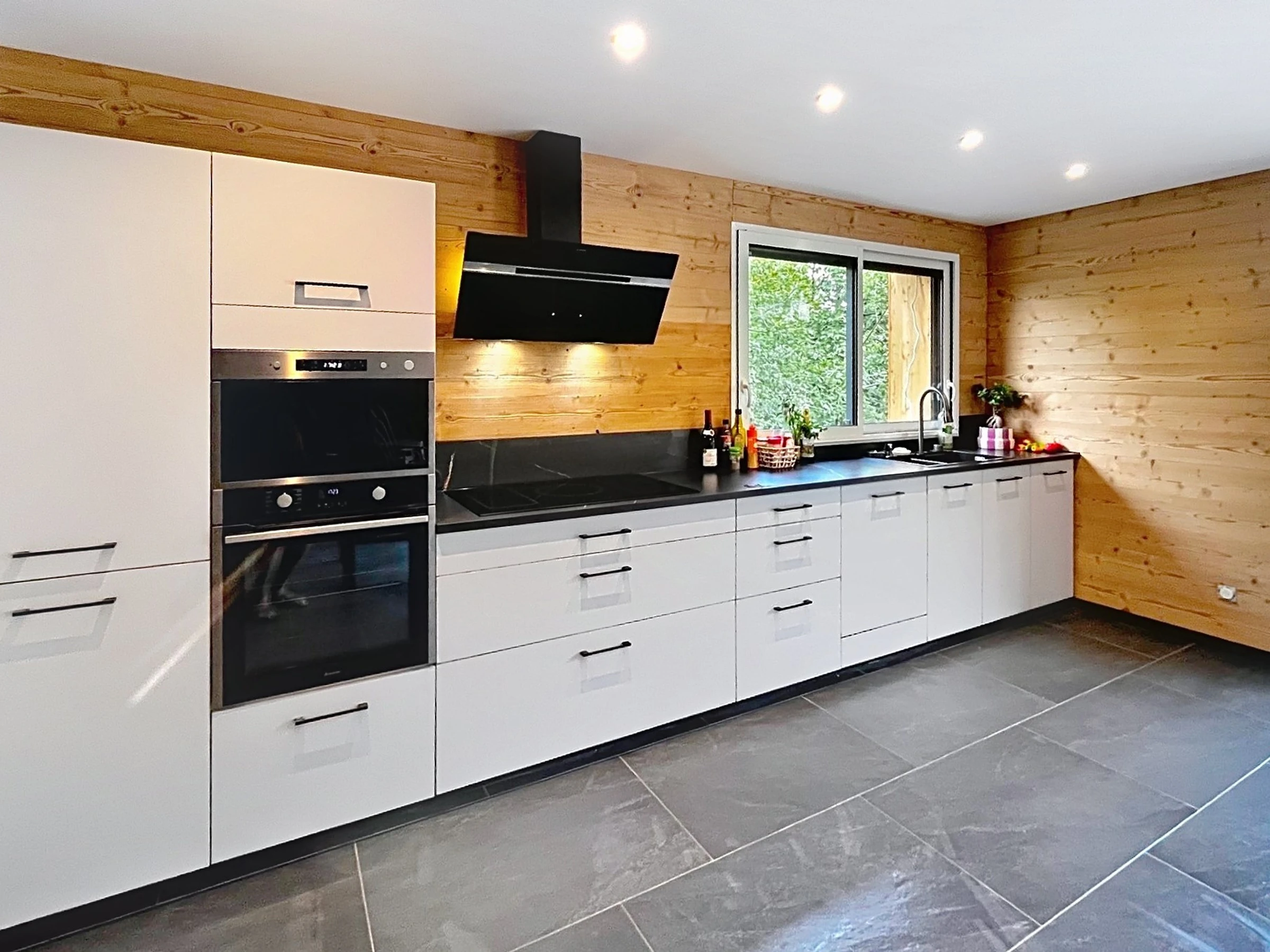 Cocina totalmente equipada con lavavajillas, horno, microondas, placas de inducción, cafetera Nespresso®, tostadora, hervidor de agua, juegos de raclette y fondue... y una gran mesa para 14 personas