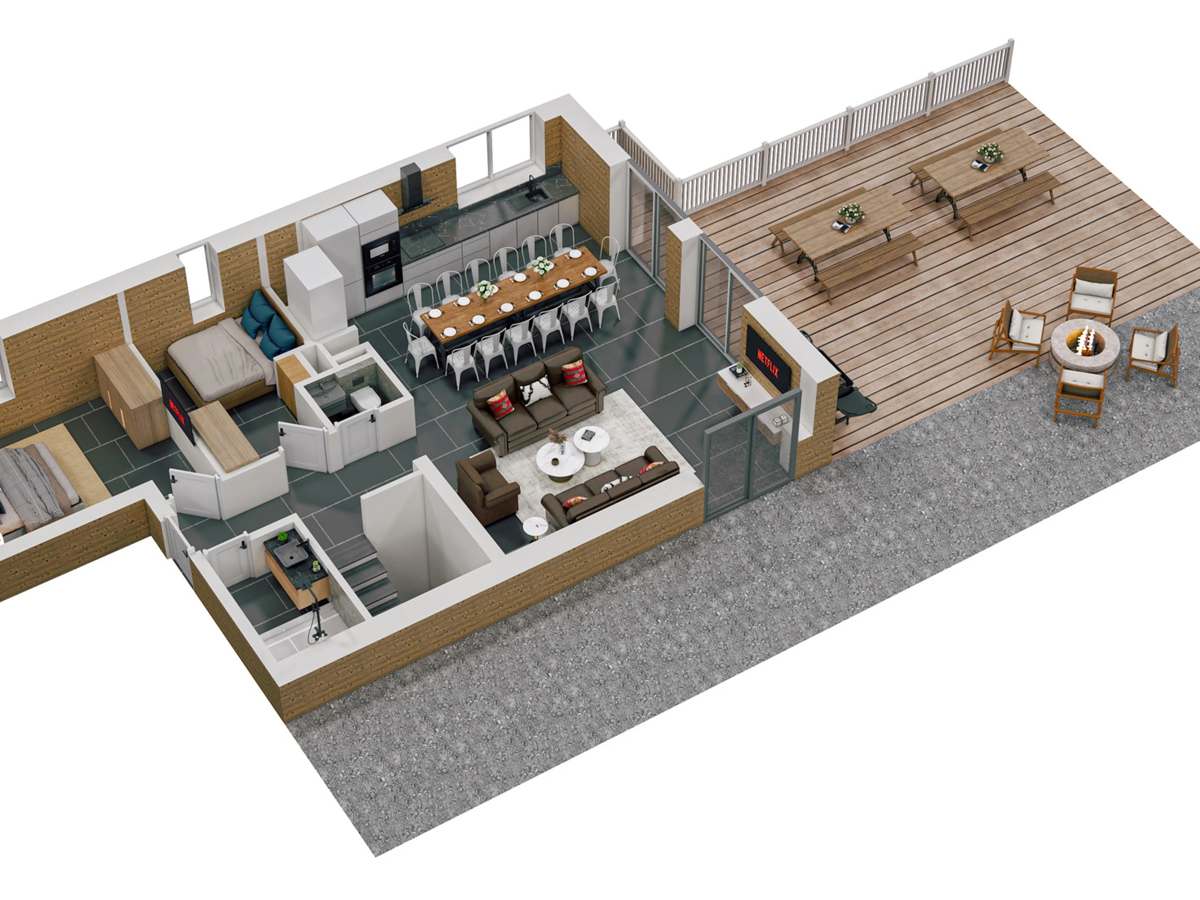 Aunque pronto estarán disponibles fotos reales del chalet, descúbralo ahora en 3D, lo más parecido posible a la realidad... ¡Le prometemos que el chalet real será aún mejor... especialmente con usted dentro!