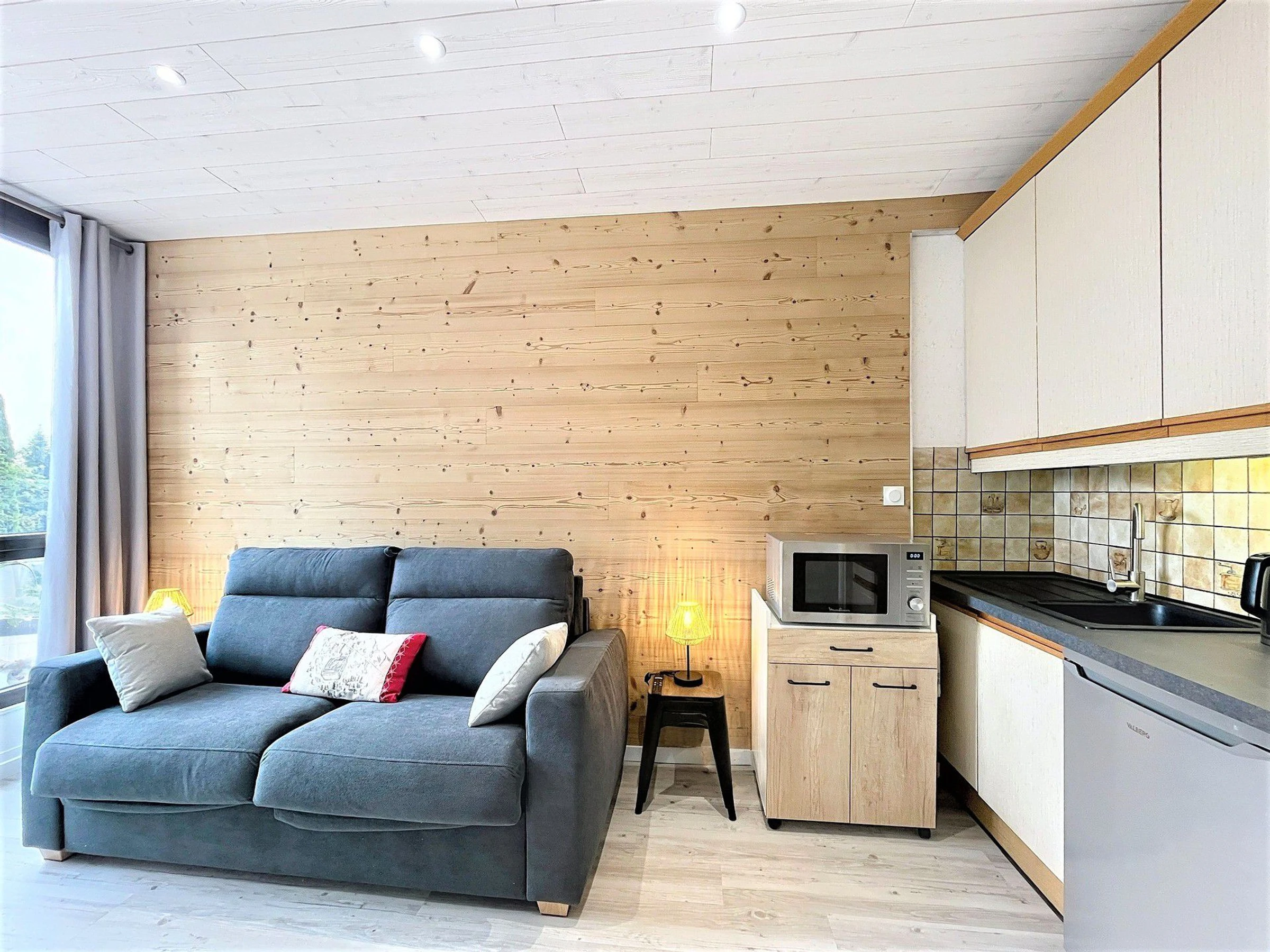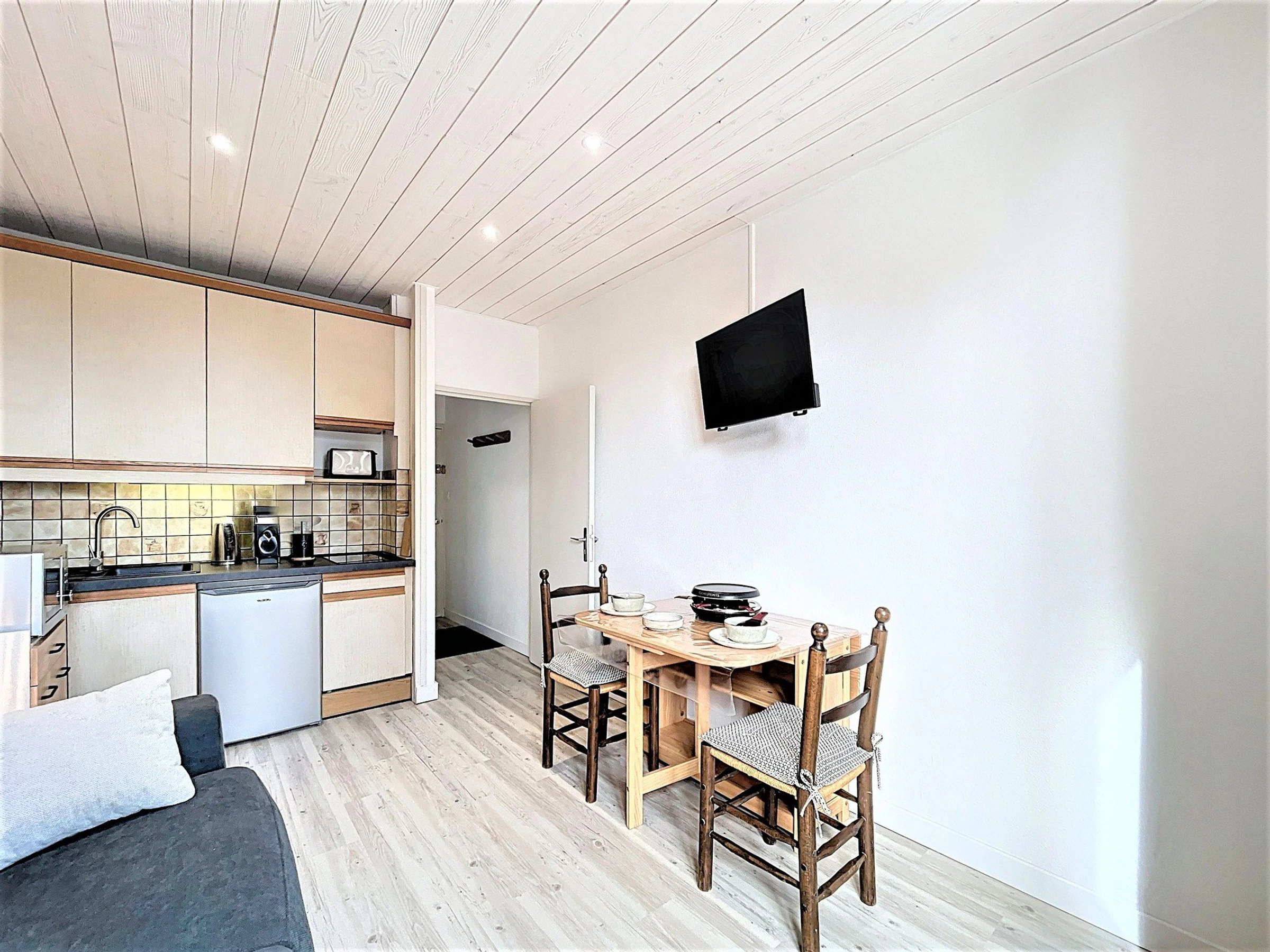Este encantador estudio reformado, ubicado en la Residencia Altaïr, le da la bienvenida cómodamente en la planta -1, con vistas al valle.