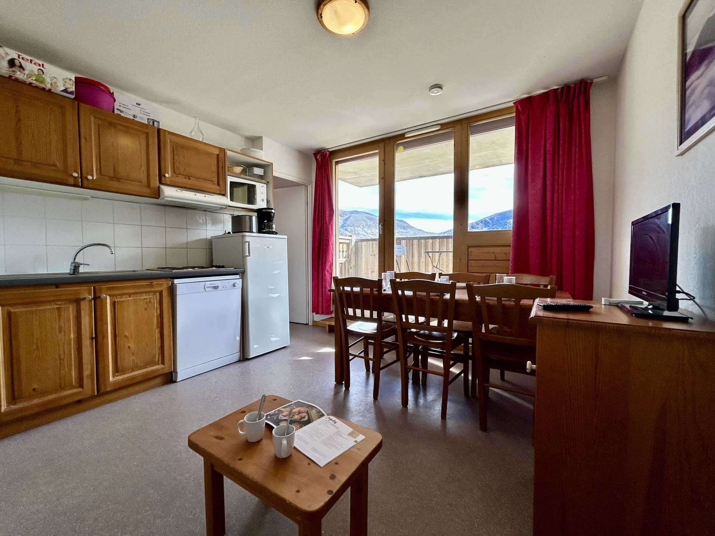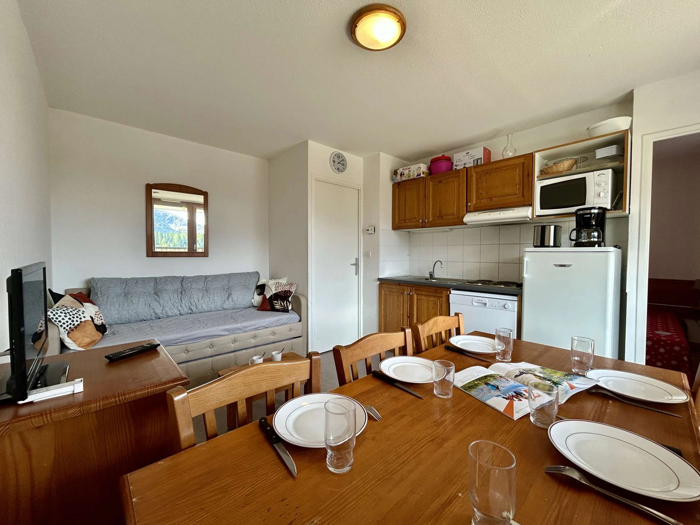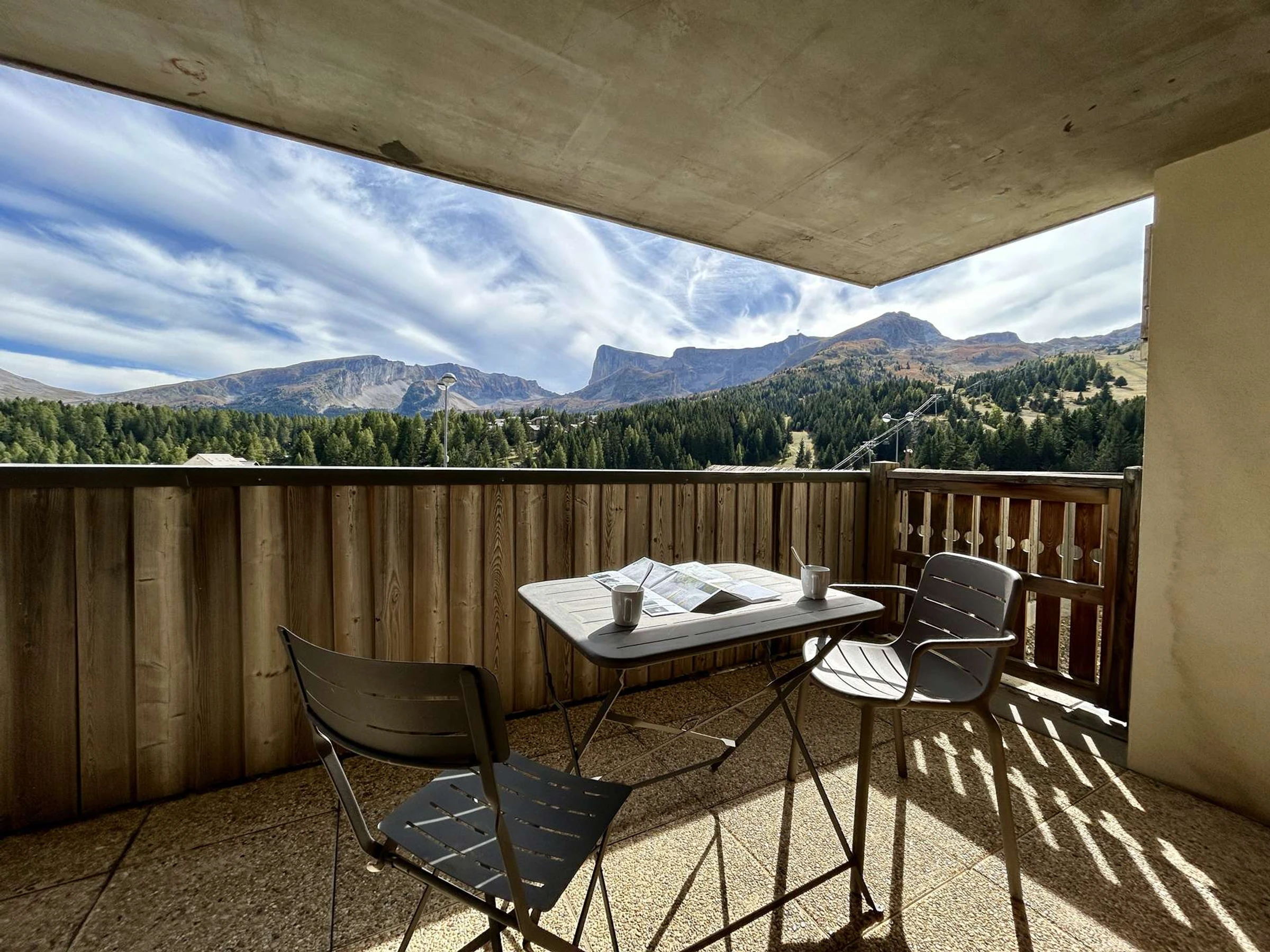 Este apartamento cabaña de dos habitaciones tiene capacidad para hasta 6 personas, está orientado al sur y cuenta con balcón y vistas panorámicas.