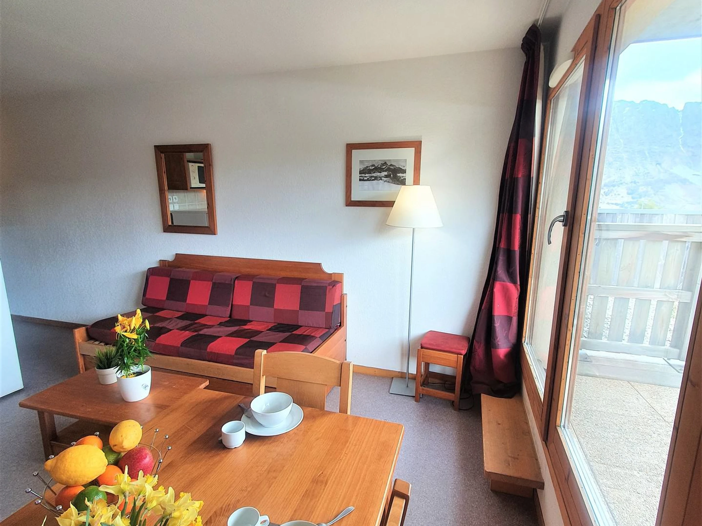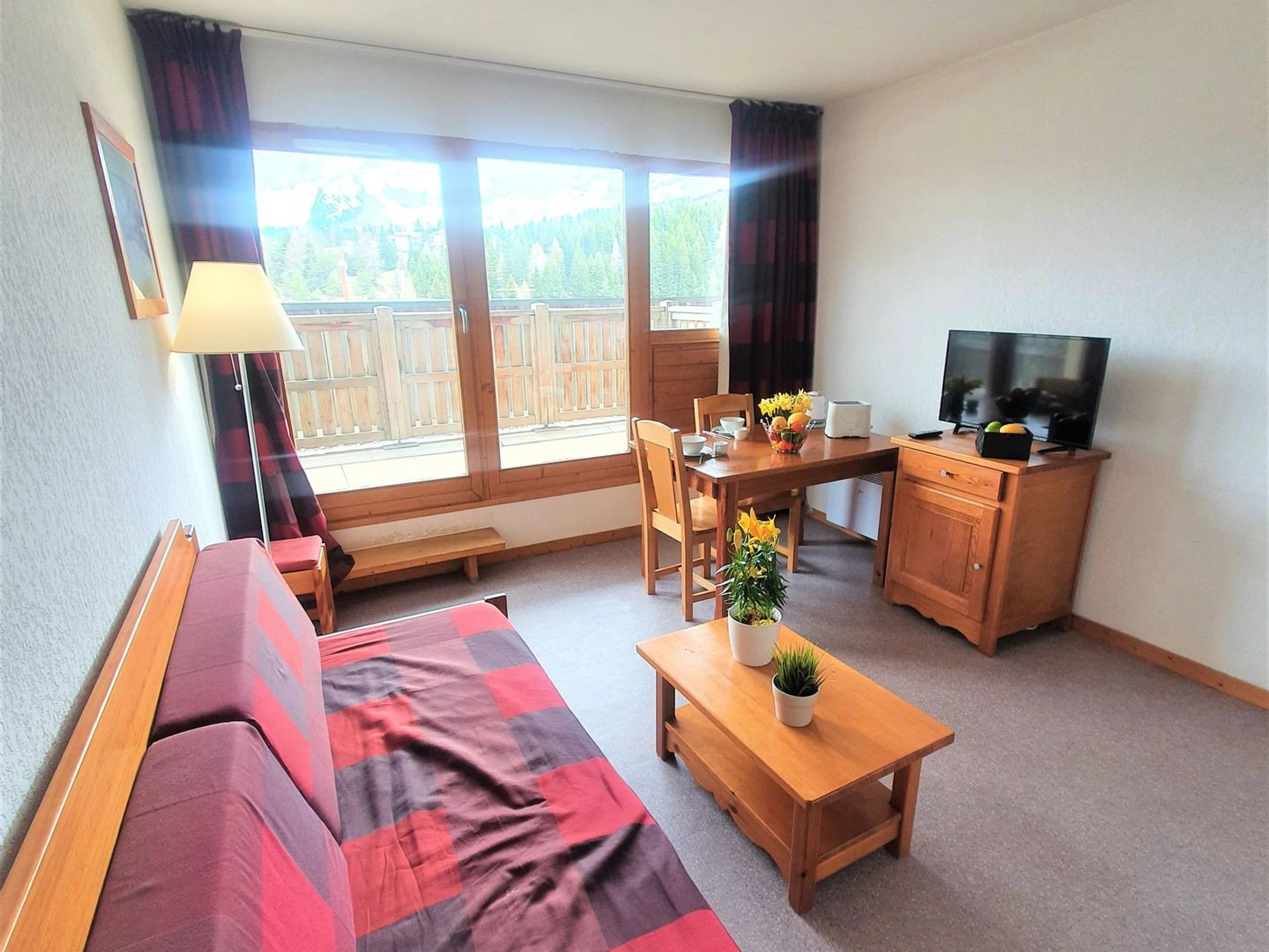 Balcón orientado al sur. Pistas y centro de la estación a 100m