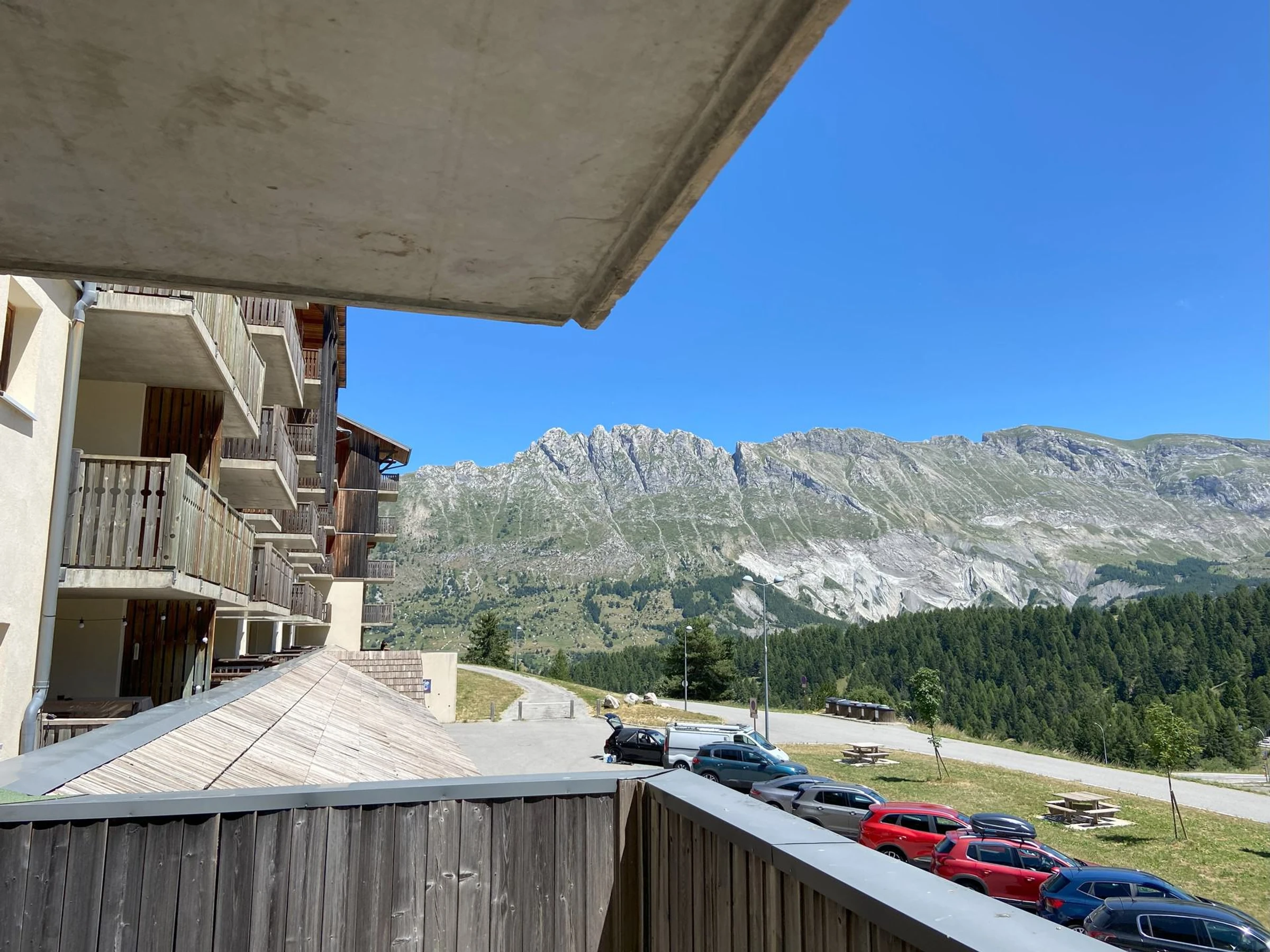 Résidence les Toits du Dévoluy à Superdévoluy. Apartamentos de 4 a 10 personas. En été entrée à la piscine de la résidence comprenden. A 50 m de pistas y de l'Office de Tourisme, relié par passerelle. Très belle vue sur la montagne environnante, dont le Pic de Bure.