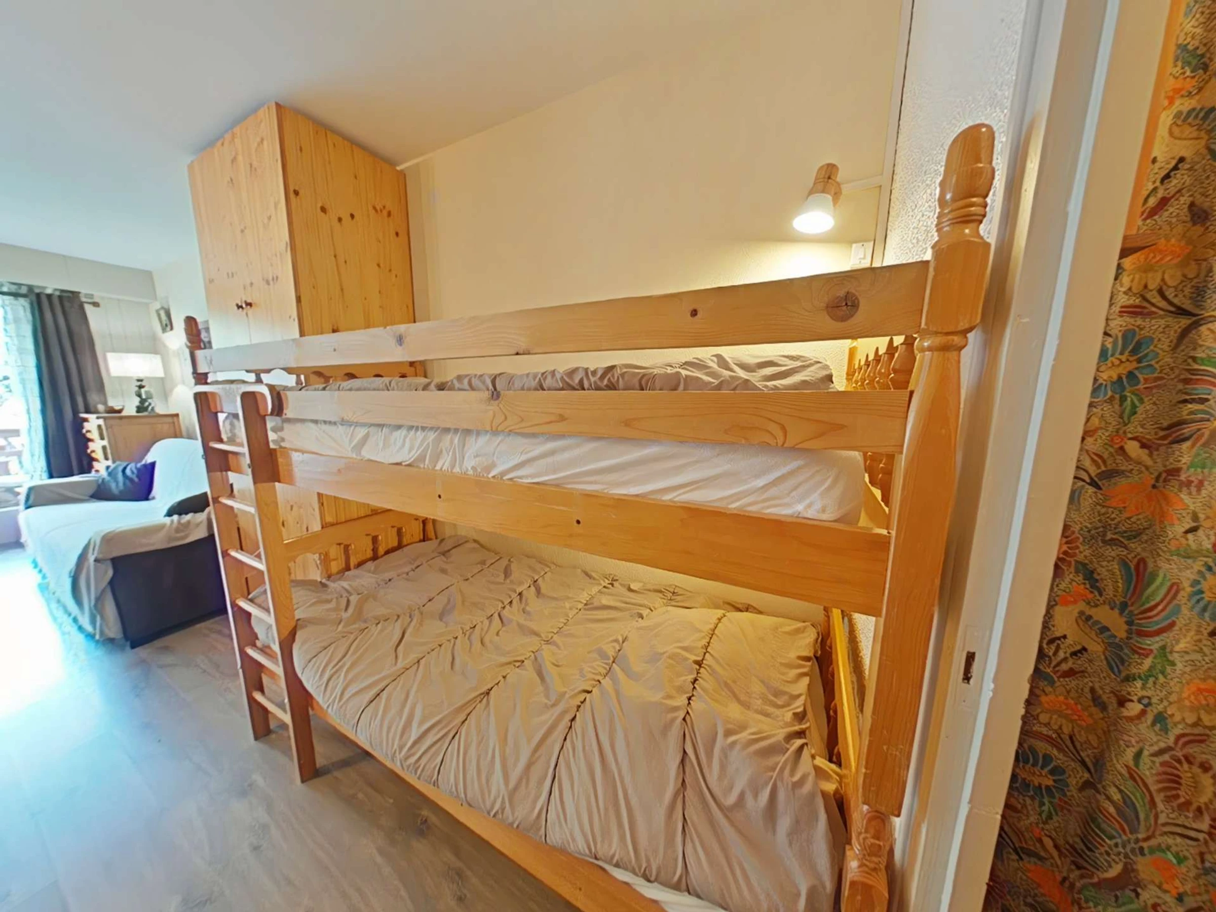 Este apartamento vacacional, ubicado en la primera planta, incluye un salón con sofá cama doble y televisión, con acceso a un balcón orientado al sur con vistas a las pistas, una cocina totalmente equipada, un dormitorio con dos literas y un baño con inodoro. Dispone de guardaesquís y aparcamiento en la residencia (ubicación no especificada).