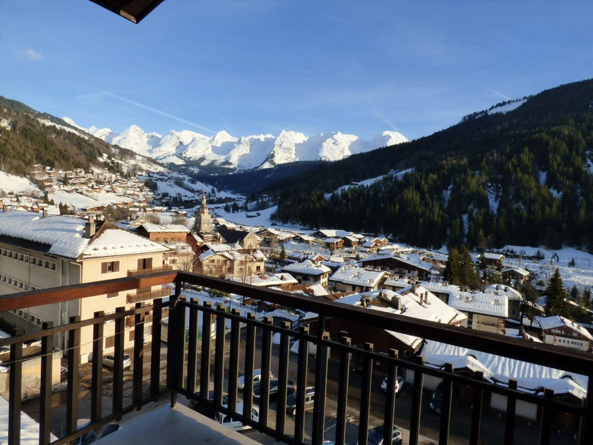 Balcón orientado al sur con vistas al pueblo de Grand-Bornand y a la sierra de Aravis