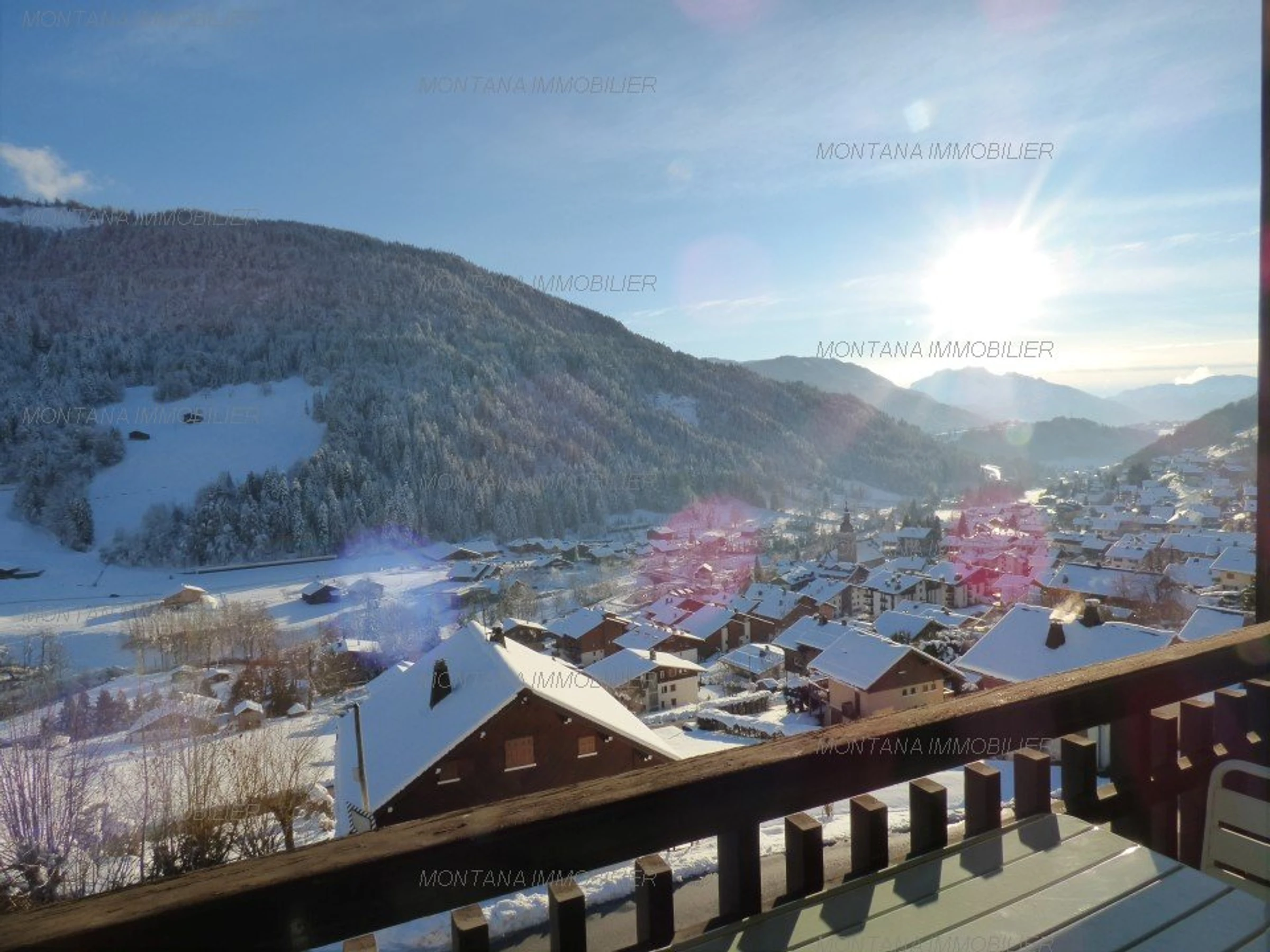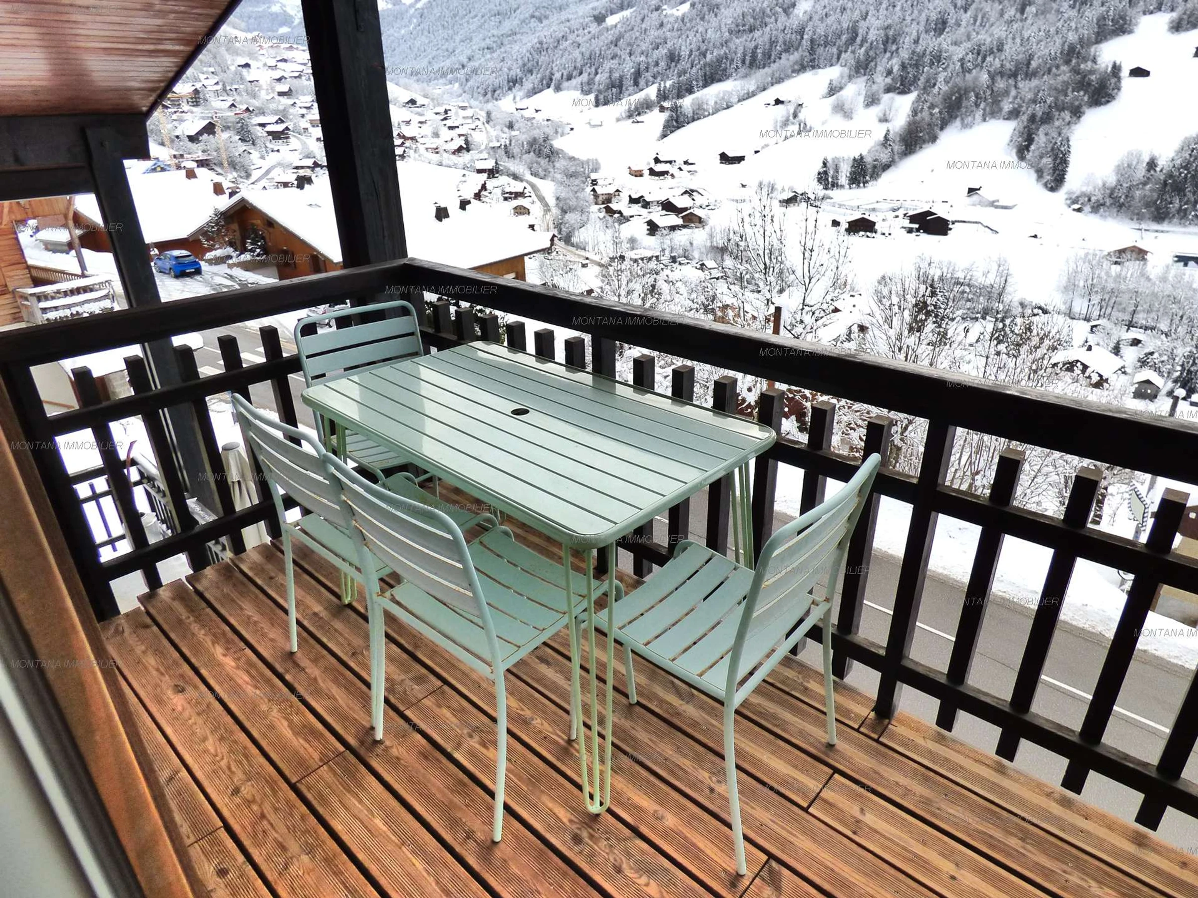 ¡Disfrute de su balcón orientado al sur con vistas a las montañas de Aravis y al pueblo!