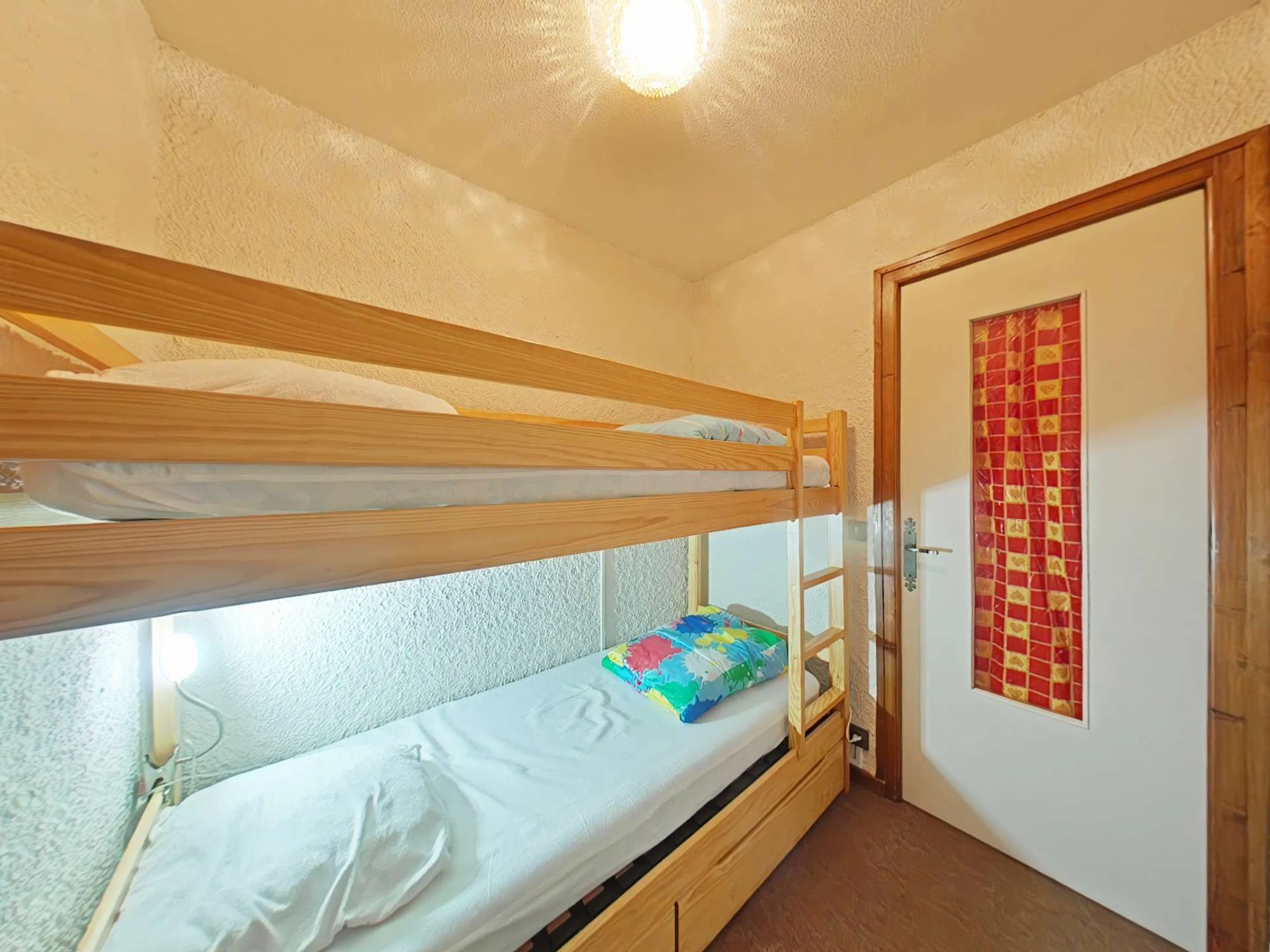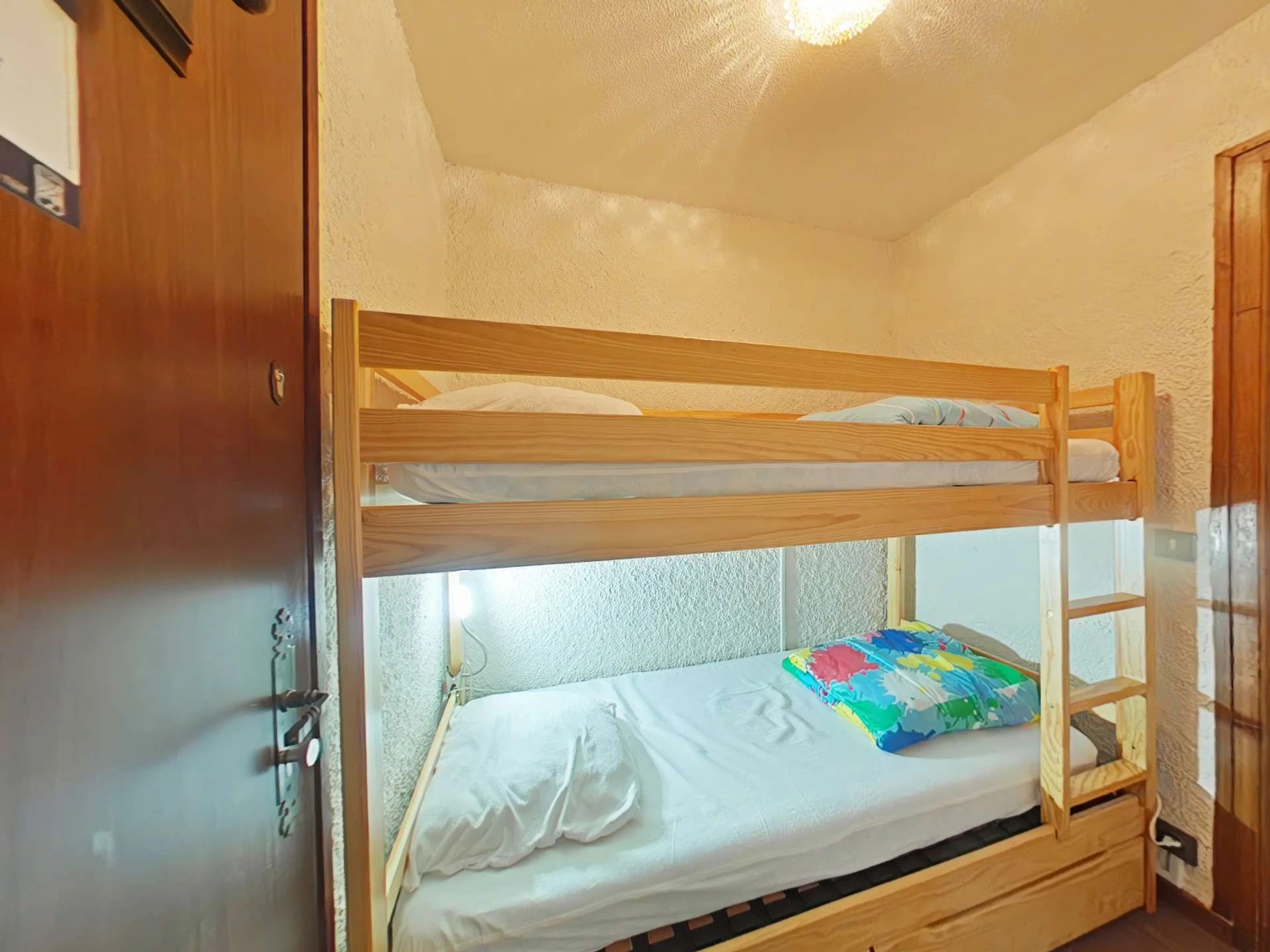 Este apartamento vacacional en planta baja (dos plantas más abajo) incluye salón con sofá cama Rapido, televisión, cocina americana equipada, dormitorio con dos literas y baño con inodoro incorporado.