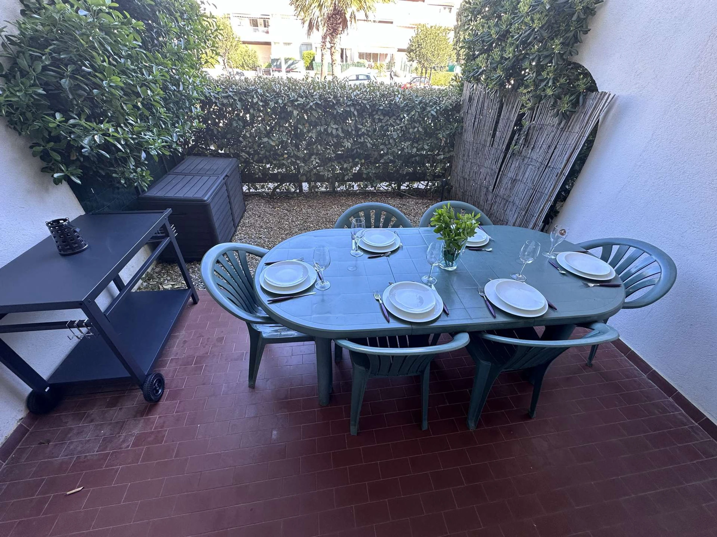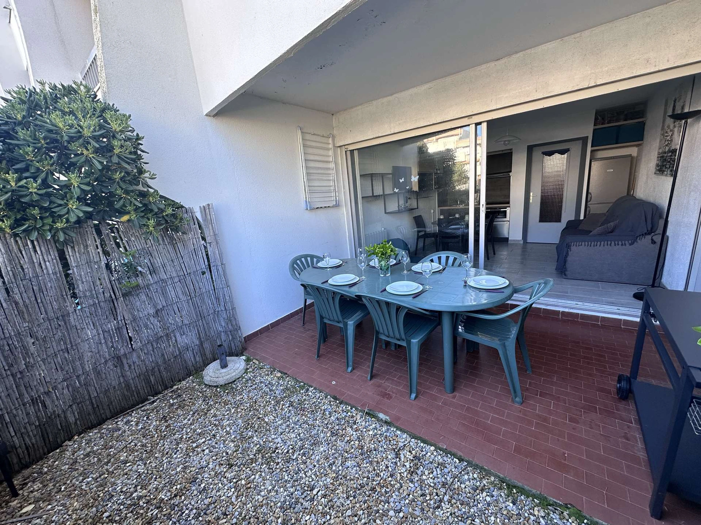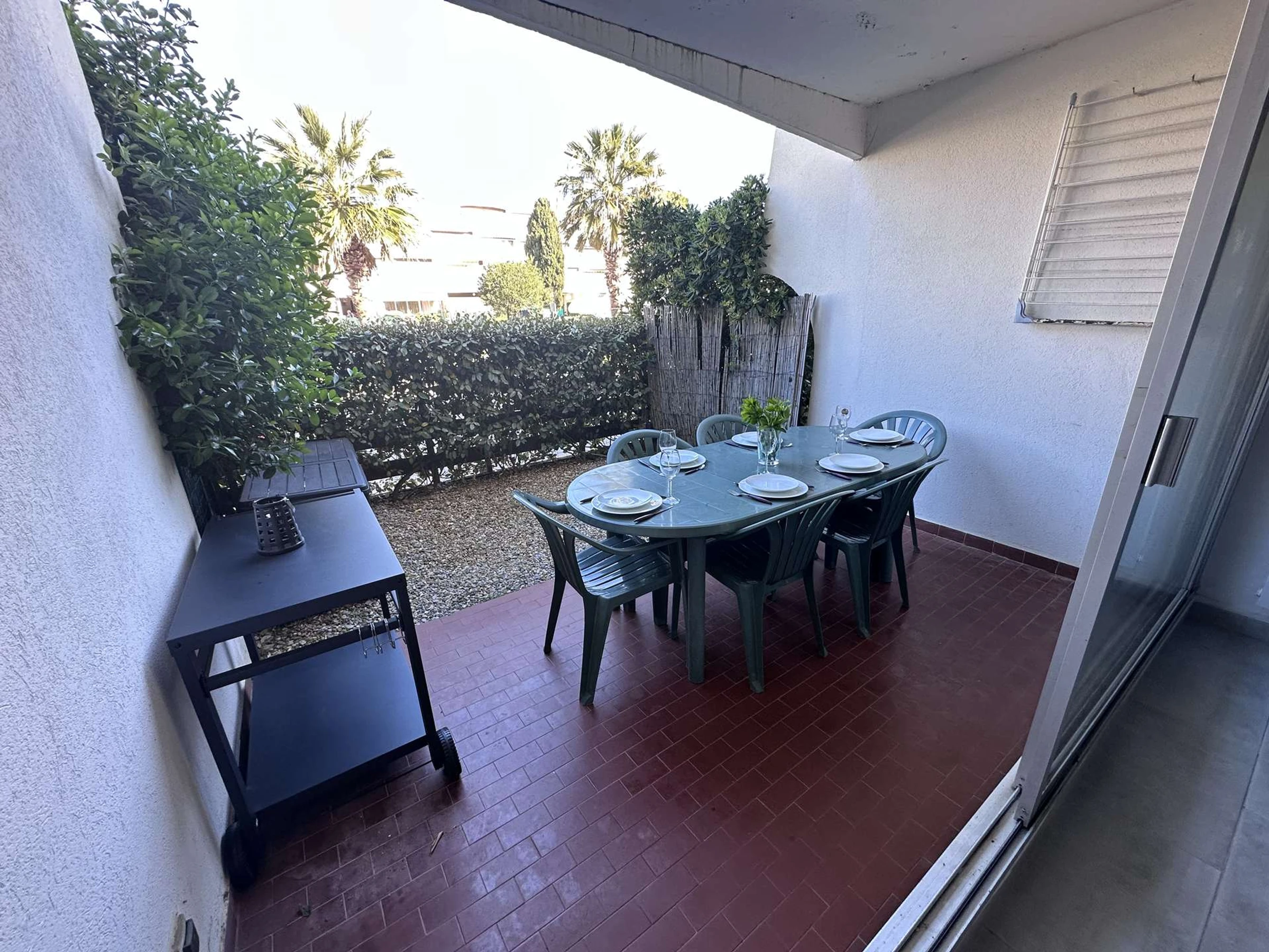 Ubicado en la planta baja elevada de la tranquila residencia "LE CORMORAN".
