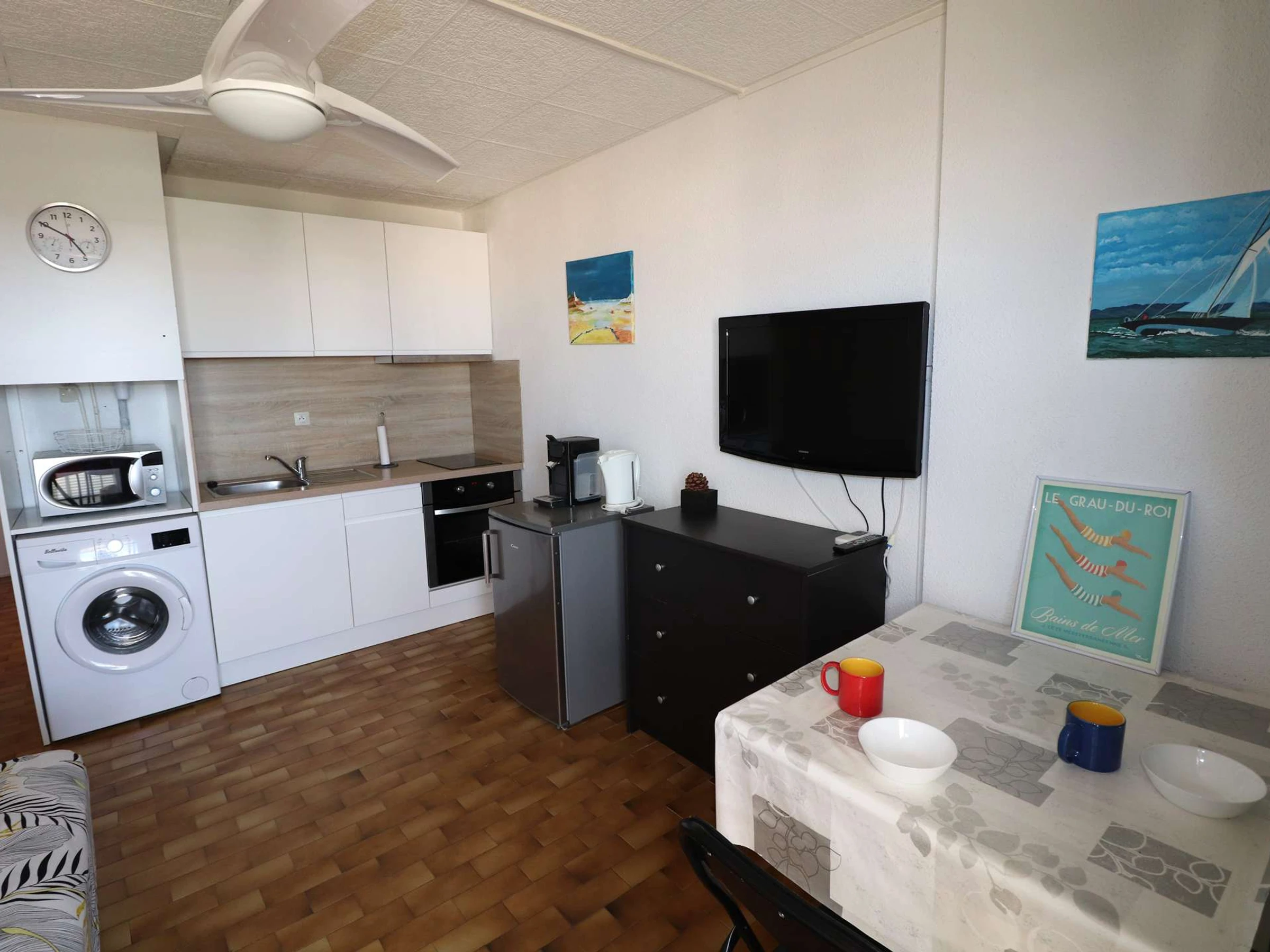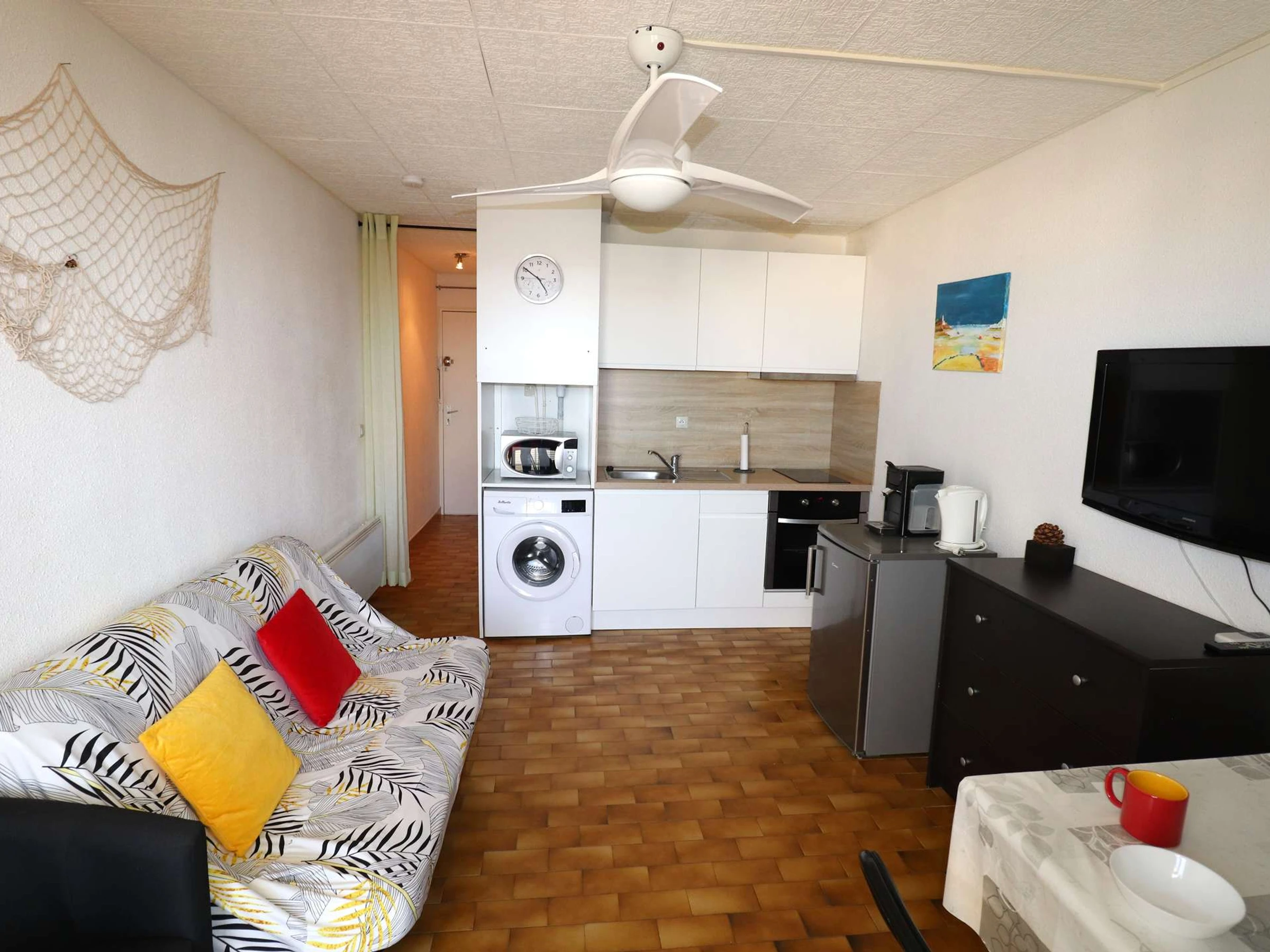 RESIDENCE CITADELLE DU SOLEIL - Estudio Cabaña cerca del mar, comercios y centro de la ciudad para 4 personas. Zona de cabañas en la entrada compuesta por 2 literas, baño con ducha y WC, salón equipado con BZ para 2 personas, cocina recién reformada: lavadora, horno, placa eléctrica, microondas, frigorífico... Terraza con muebles de jardín y vista lateral al mar. No hay estacionamiento con esta propiedad. Aparcamiento gratuito en las inmediaciones: Rue des Primevères, Av. del Palacio de la Mer, calle Jean Jaurès...