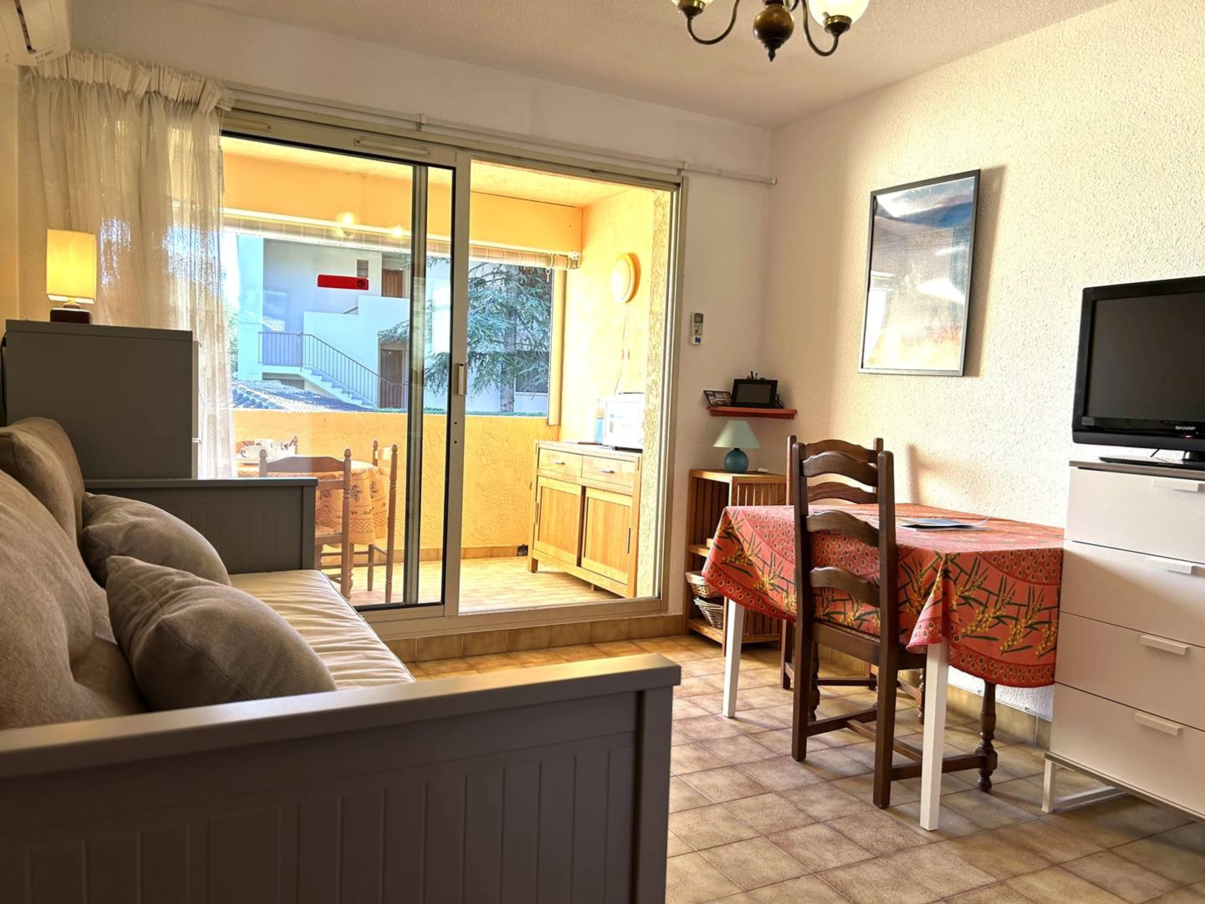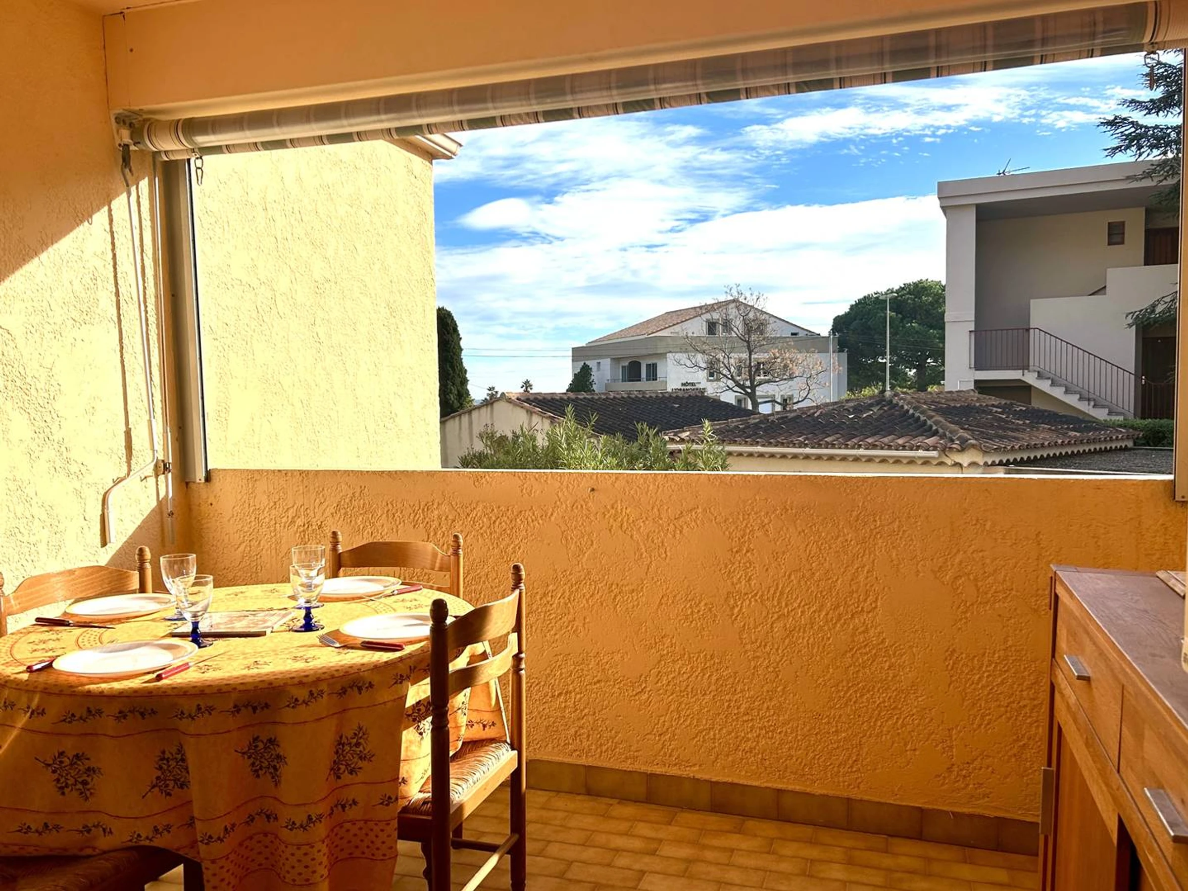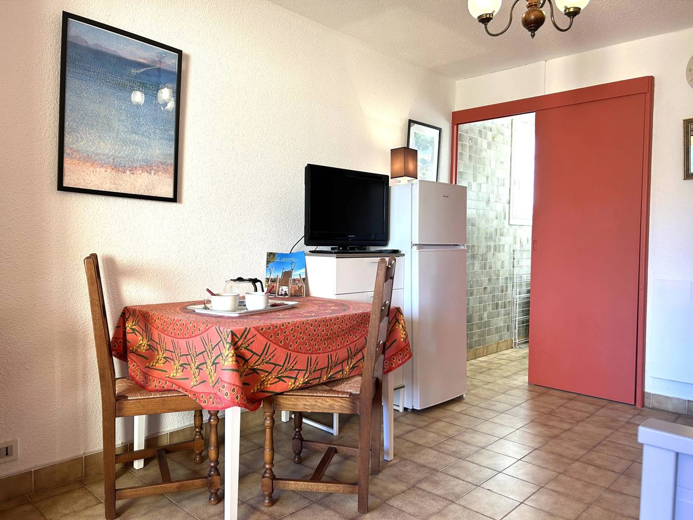 Este apartamento, situado en una zona tranquila, se encuentra en la primera planta de una pequeña residencia. El alquiler incluye una cocina americana totalmente equipada, un salón con aire acondicionado y sofá cama de 160 cm, un cuarto de baño con ducha y aseo independiente, un dormitorio con aire acondicionado y cama de 140 cm, y una terraza con toldo transparente que permite disfrutar de vistas al mar incluso en días de viento.