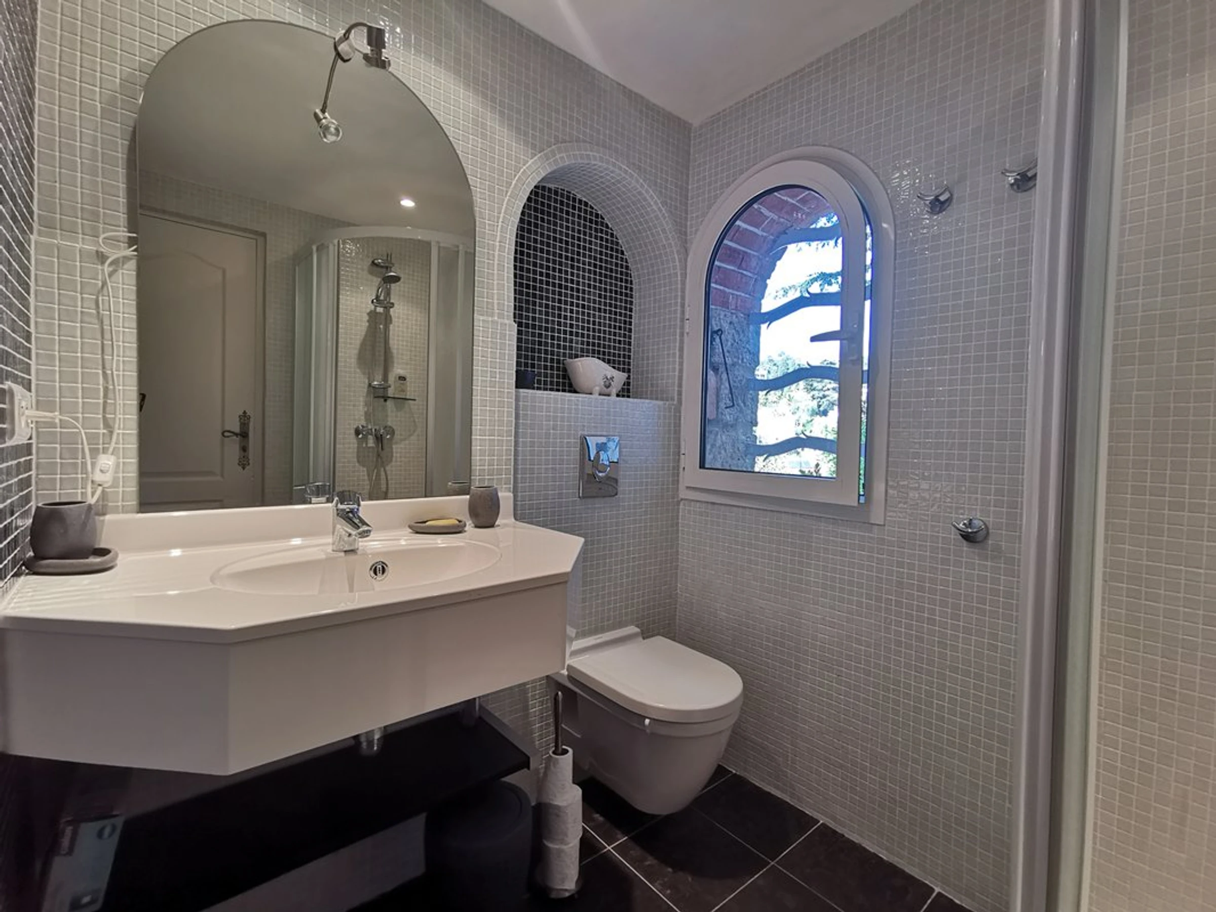 Dormitorio 2: cama de 150x190 cm, baño privado, preciosas vistas a la colina. Planta 2: Dormitorio 3: cama de 160x200 cm con acceso a una terraza cubierta inferior. Habitación 4: Cama de 160x200 cm o 2 camas de 80x200 cm, baño compartido (no se admiten mascotas).