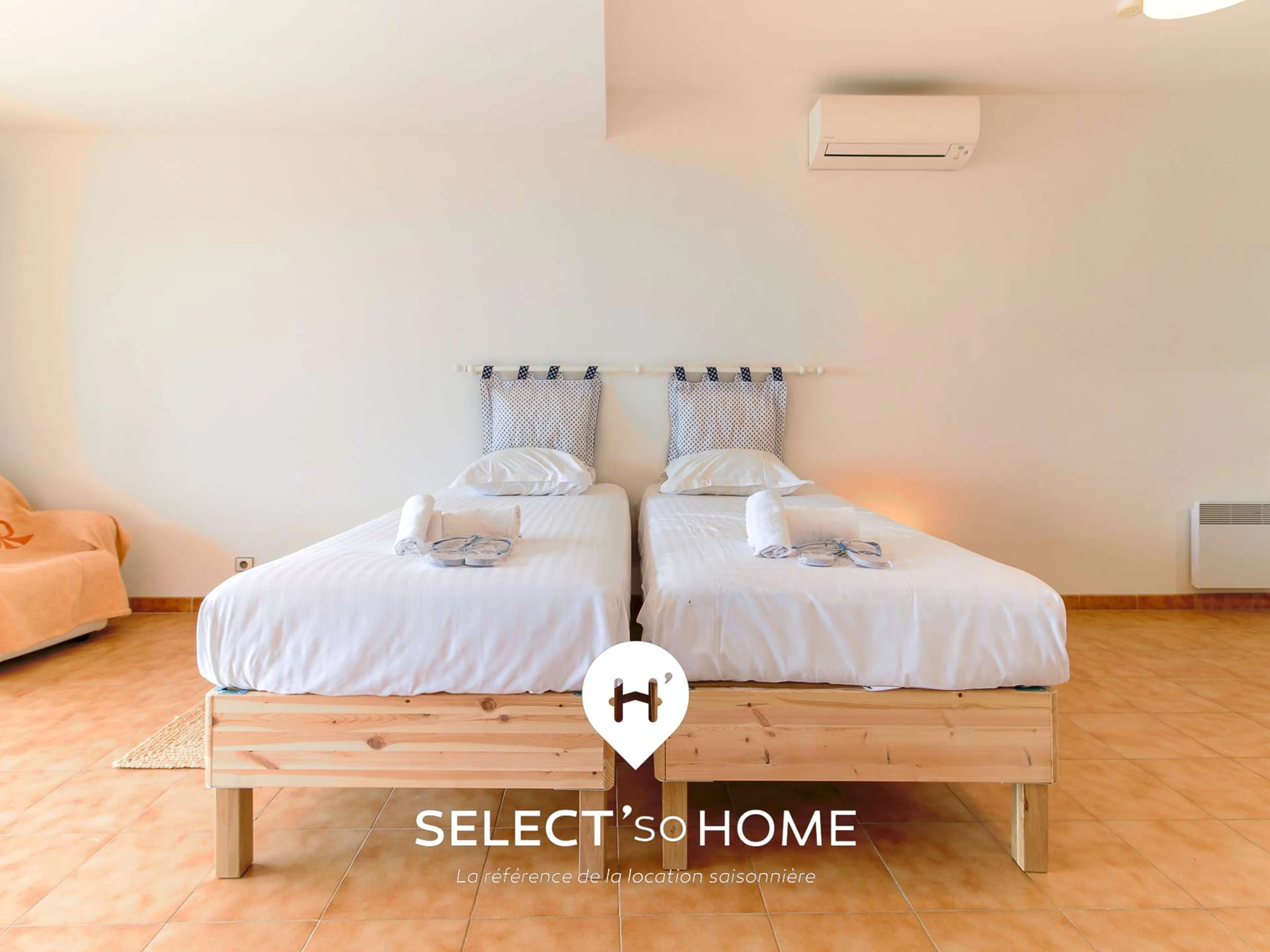 Aquí es donde la vida adquiere el sabor de unas vacaciones puras. Tres cómodas habitaciones se abren directamente a una amplia terraza donde el sol y la brisa marina marcan el ritmo. La piscina infinita es la protagonista: flote con la mirada fija en el horizonte, antes de tumbarse en una tumbona para una merecida siesta. Una barbacoa le espera en las tardes de barbacoa, mientras que dos modernos baños garantizan un confort impecable. Un detalle práctico: una de las habitaciones está equipada con una pequeña cocina, perfecta para una discreta independencia.