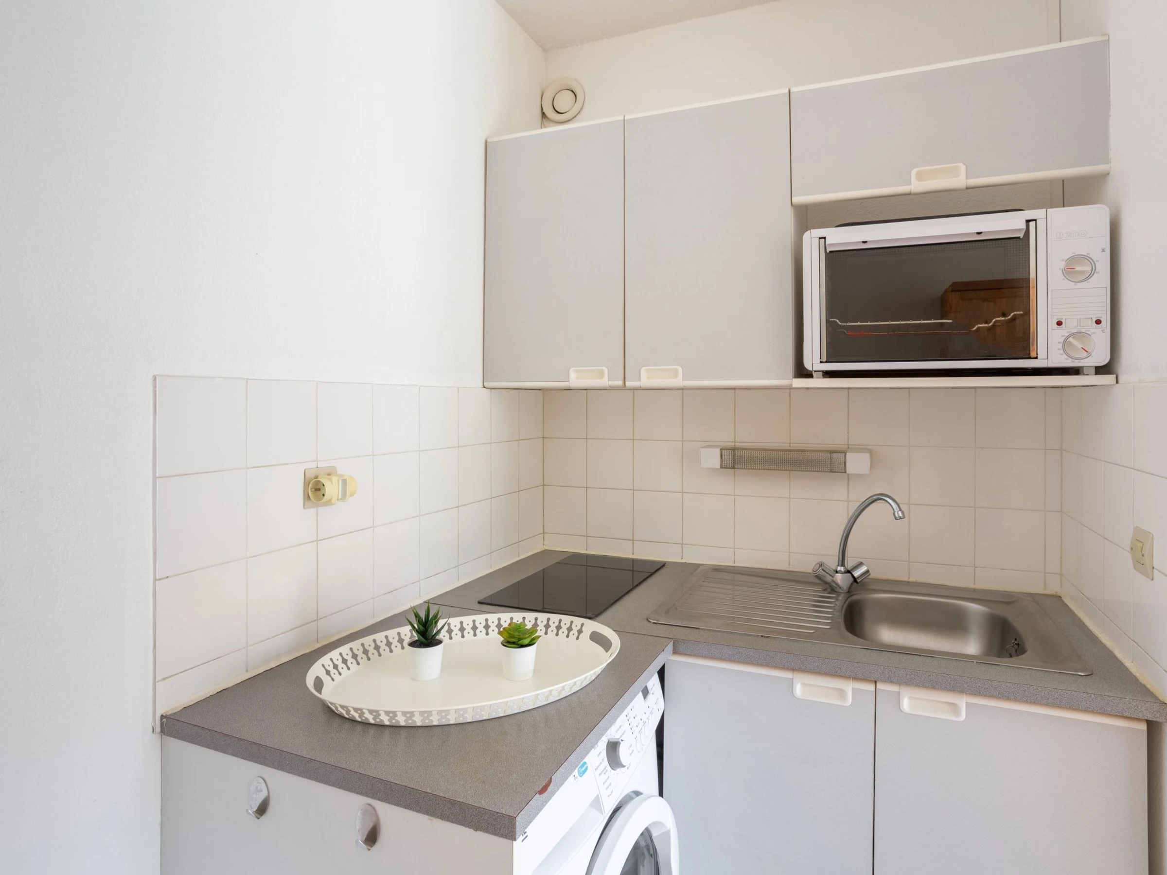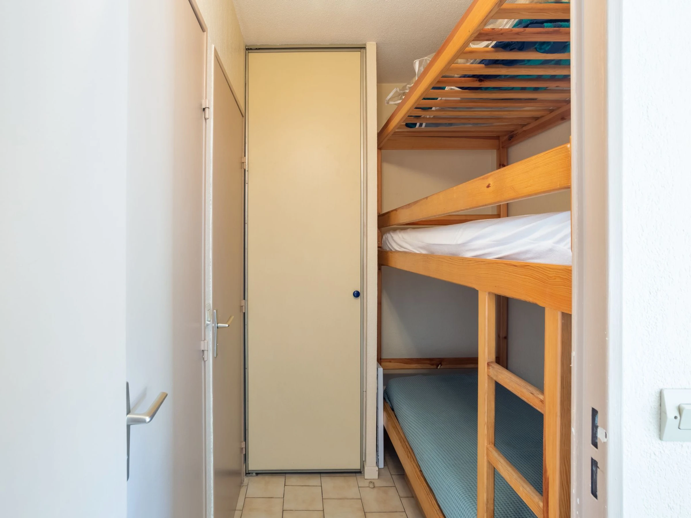 Apartamento de 2 estancias 27 m2 en el 3° piso. Vivienda adecuada para 2 adultos + 2 niños. Con mobiliario confortable: salón-comedor con TV (pantalla plana). 1 dorm. con 1 cama de matrimonio (1 x 140 cm). Cabina con 1 x 2 literas (90 cm). Cocina abierta (horno pequeño, horno, 2 placas de vitrocerámica, tostadora, hervidor de agua eléctrico, microondas, cafetera eléctrica). Ducha, WC separado. Calefacción eléctrica, calentador (100 litros). El alojamiento dispone de: lavadora, plancha, secador de pelo. Internet (Wifi, extra). Plaza de aparcamiento n. 233. A tener en cuenta: apartamento para no fumadores. TV solamente FR. Detector de humo. En lugar de un dormitorio cerrado, algunos espacios para dormir están situados en una zona diáfana (galería, alcoba, etc.). [hidden]