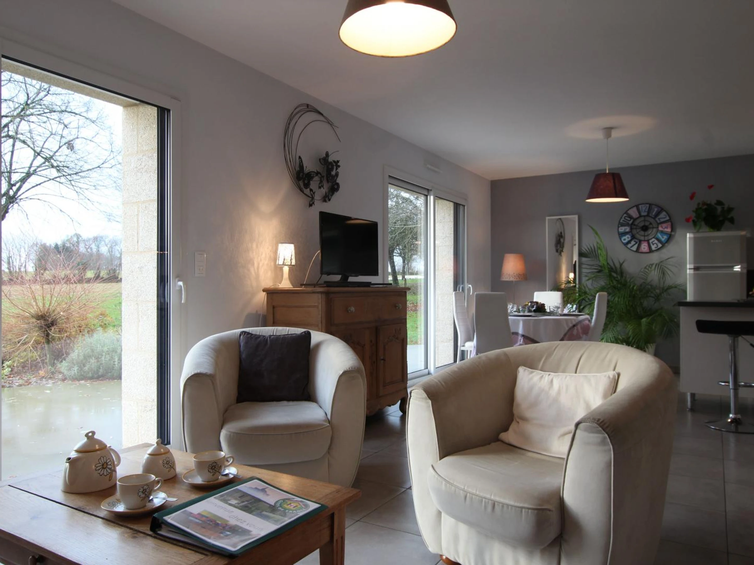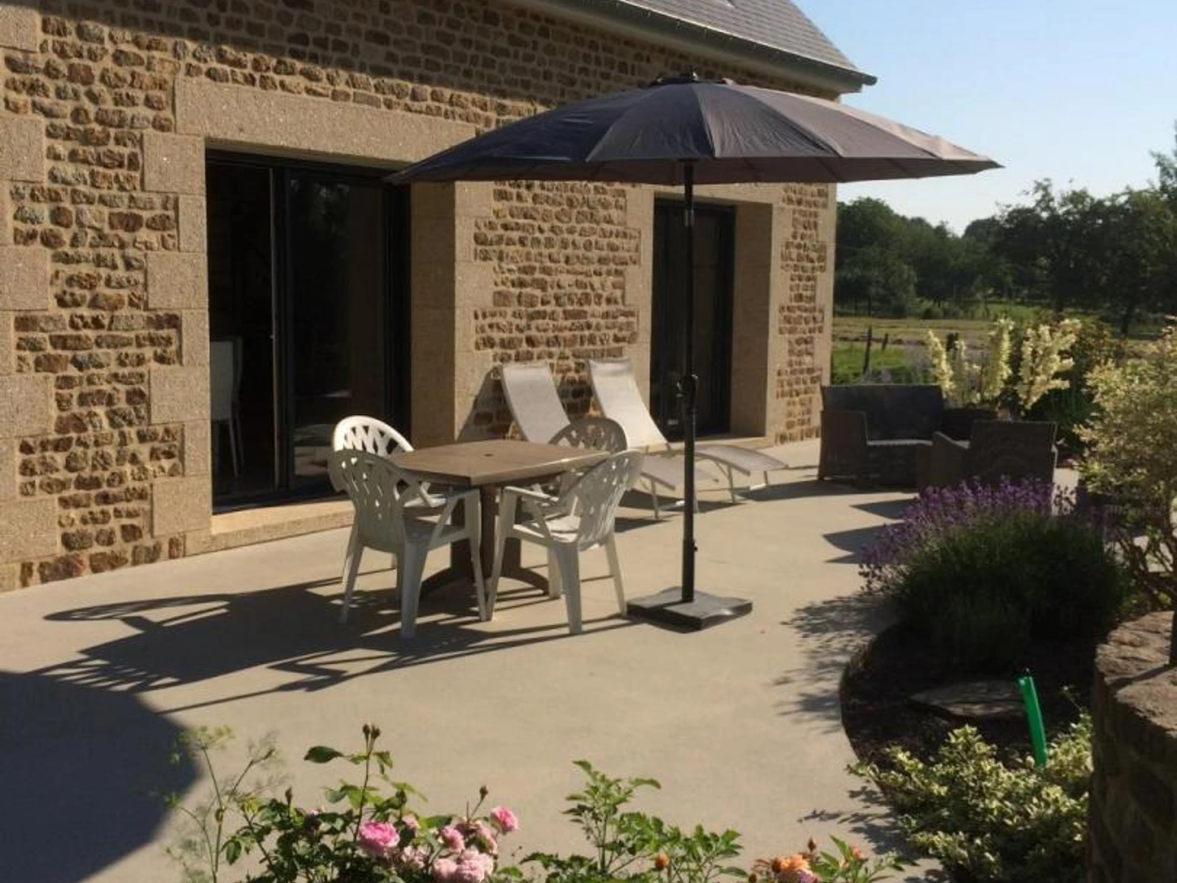 Casa unifamiliar. Salón (TV, internet, equipo de música y reproductor de DVD). Cocina americana (vitrocerámica, lavavajillas, microondas). Lavandería (lavadora). Aseo. Planta alta: Dormitorio 1 (1 cama doble). Dormitorio 2 (2 camas individuales). Aseo con ducha y WC. Equipamiento para bebés. Calefacción eléctrica incluida. Ropa de cama de alquiler. Ropa de cama no incluida. Servicio de limpieza disponible con suplemento. Terreno privado sin vallar. Jardín privado. Columpio. Patio. Terraza. Mobiliario de jardín. Barbacoa. Refugio. Esta zona, formada por valles y colinas, es un auténtico balcón con vistas a la bahía del Mont Saint-Michel. Un paseo de 300 m le llevará a un mirador con una magnífica panorámica de la bahía. La casa también ofrece unas preciosas vistas al campo, y sus amplios ventanales permiten que la luz inunde el salón. Interior confortable. ¡El toldo trasero es práctico para volver de las excursiones!
