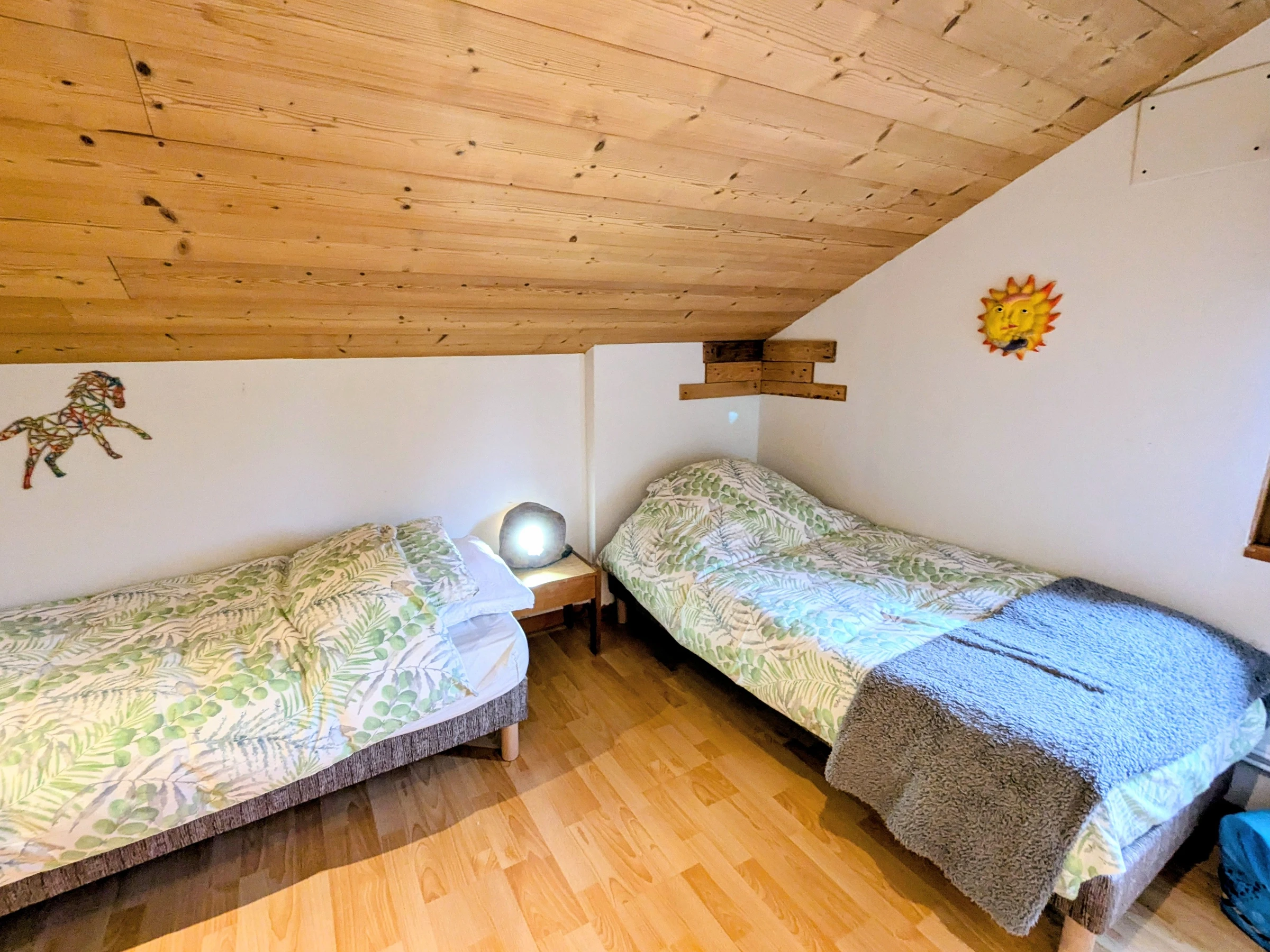 Los perros de la casa te mostrarán los alrededores con un agradable paseo, y en invierno, los caballos te pedirán una manzana. El apartamento amueblado El'Despé tiene capacidad para 4 personas, con una habitación doble y un altillo con dos camas individuales.