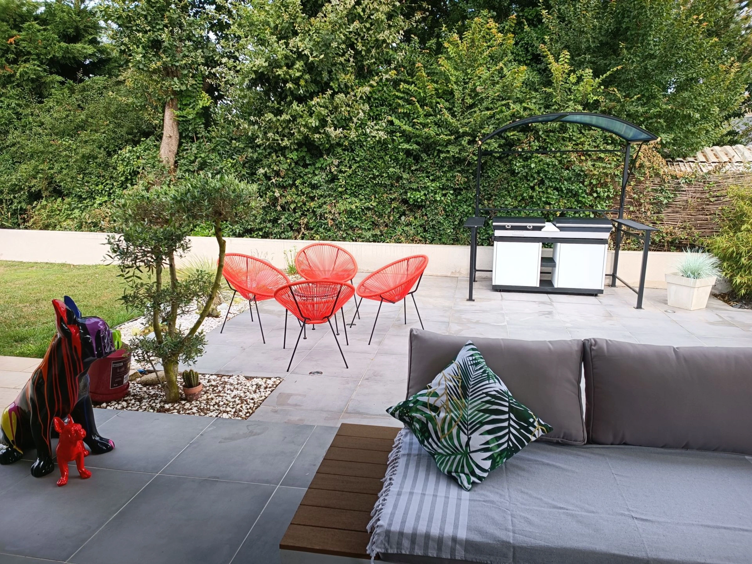 Amplio garaje de aproximadamente 60 m². Jardín cerrado de 300 m². Mesa de ping-pong. Mobiliario de jardín.