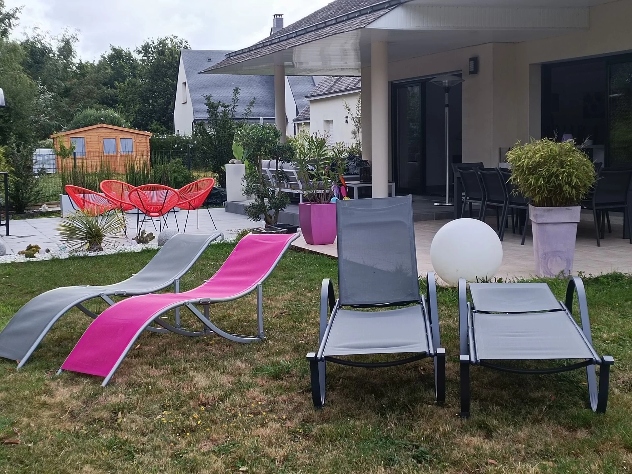 En una tranquila zona residencial, esta casa contemporánea de una sola planta, decorada con buen gusto y de aproximadamente 130 m², consta de: recibidor, aseo con lavabo, amplio salón-comedor con TV (televisión digital terrestre) con acceso a una terraza de madera y otra de baldosas, cocina americana (horno, placa de gas de 4 fuegos, microondas, frigorífico con congelador, cafetera de filtro), lavadero (lavadora, lavavajillas), zona de estar (con sofá cama de 140 cm), armario y cuna de viaje, dormitorio principal (cama de 140 cm) con baño en suite con ducha y vestidor, segundo dormitorio (cama de 140 cm) con estanterías empotradas, tercer dormitorio (cama de 140 cm) con estanterías empotradas y baño con ducha.