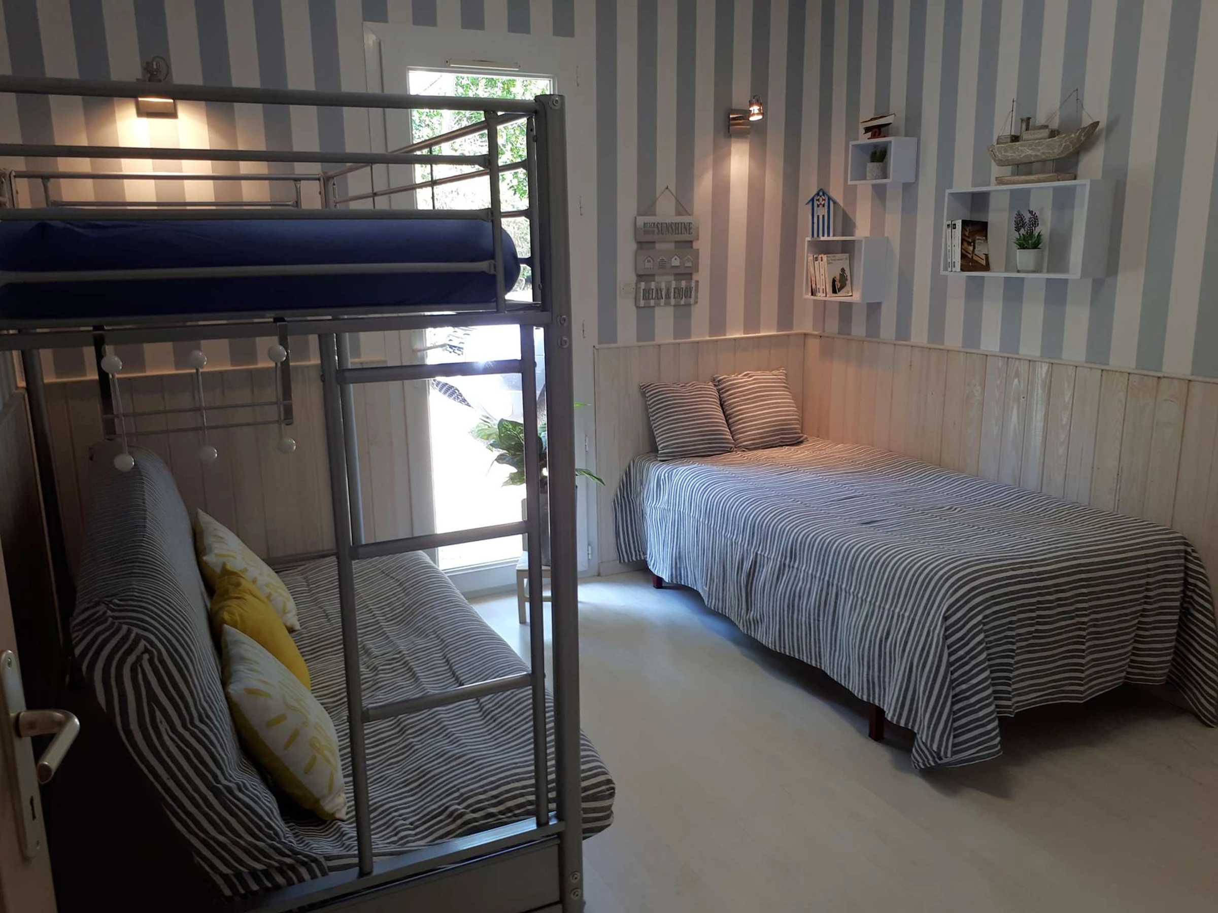 Lado noche: La villa dispone de 4 dormitorios, incluidos 2 con camas de 140 cm, uno con 2 camas de 80 cm que se pueden convertir en una cama de 160 cm y el último con dos camas de 90 cm.