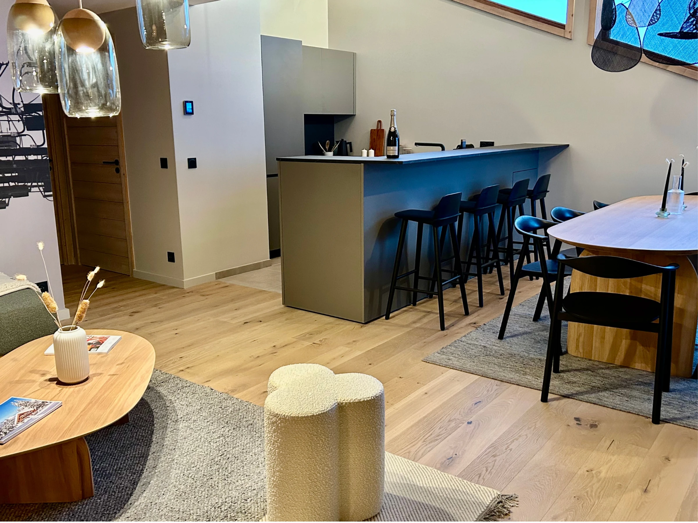 En el último piso de la nueva residencia "Les chalets" en Méribel Mottaret, venga a descubrir este magnífico apartamento de 109 m2 a pocos pasos de las pistas.