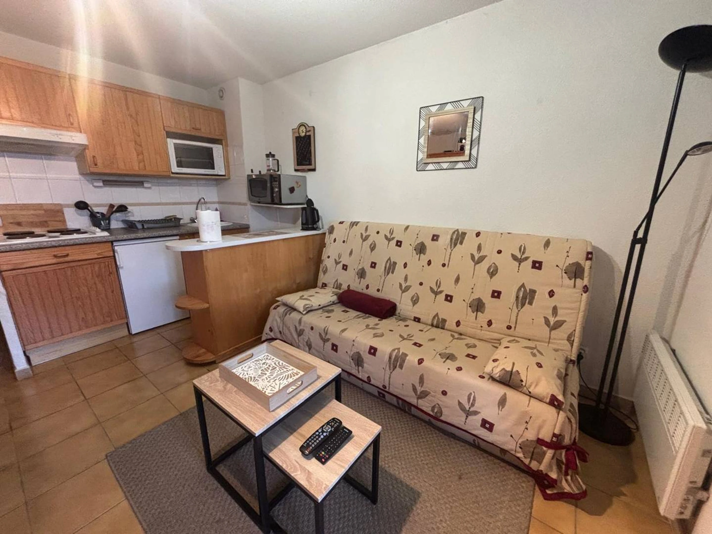 Descubra este encantador apartamento, ideal para sus estancias en familia o con amigos. Cuenta con un luminoso y acogedor salón con sofá cama, perfecto para relajarse después de un día ajetreado. La cocina americana contigua está totalmente equipada para preparar comidas fácilmente: nevera, placa de cocina, microondas, tostadora y todos los utensilios necesarios.