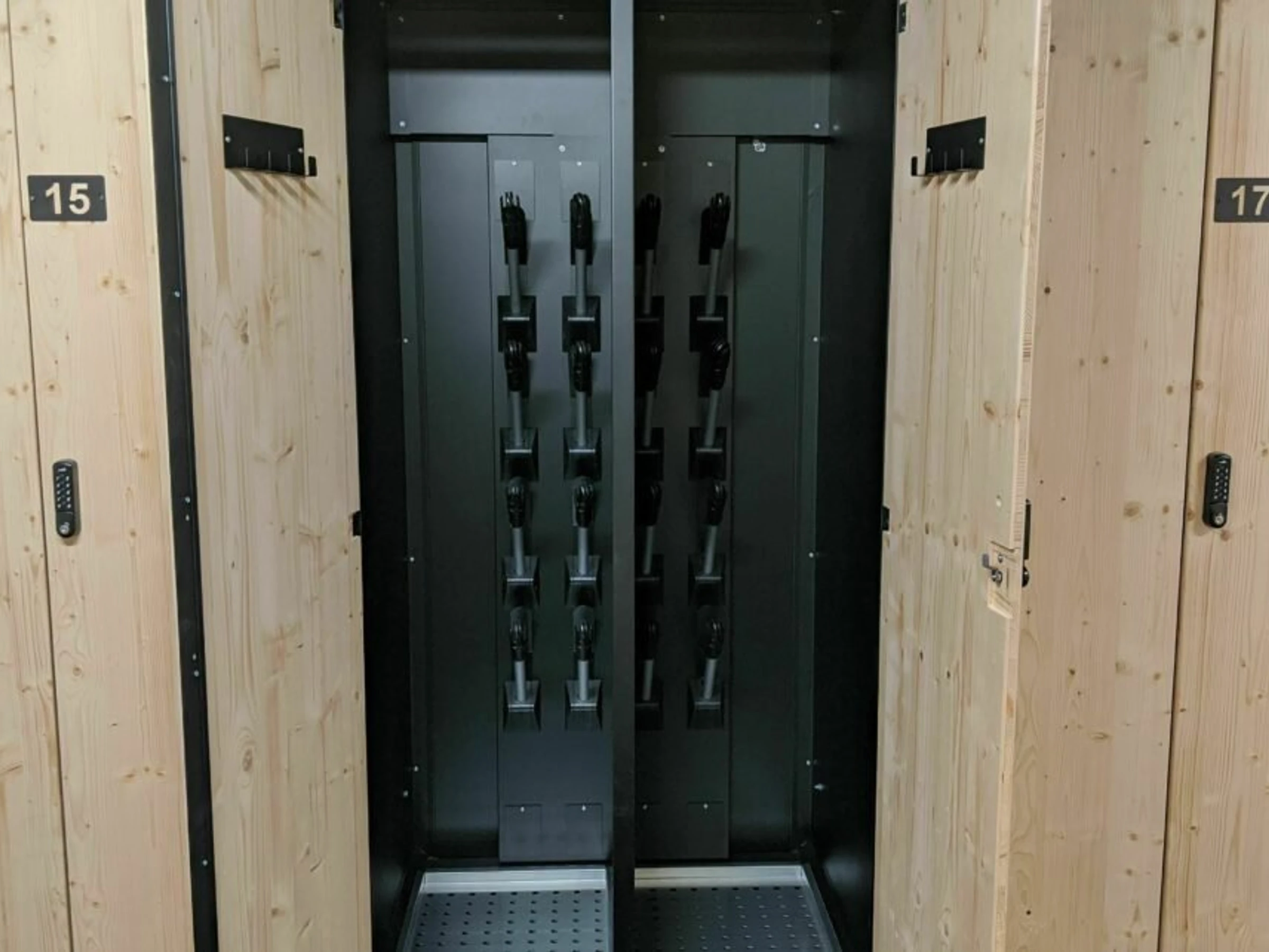 - Sala de esquí equipada con secadores de botas y secadores de guantes, esquís en los pies