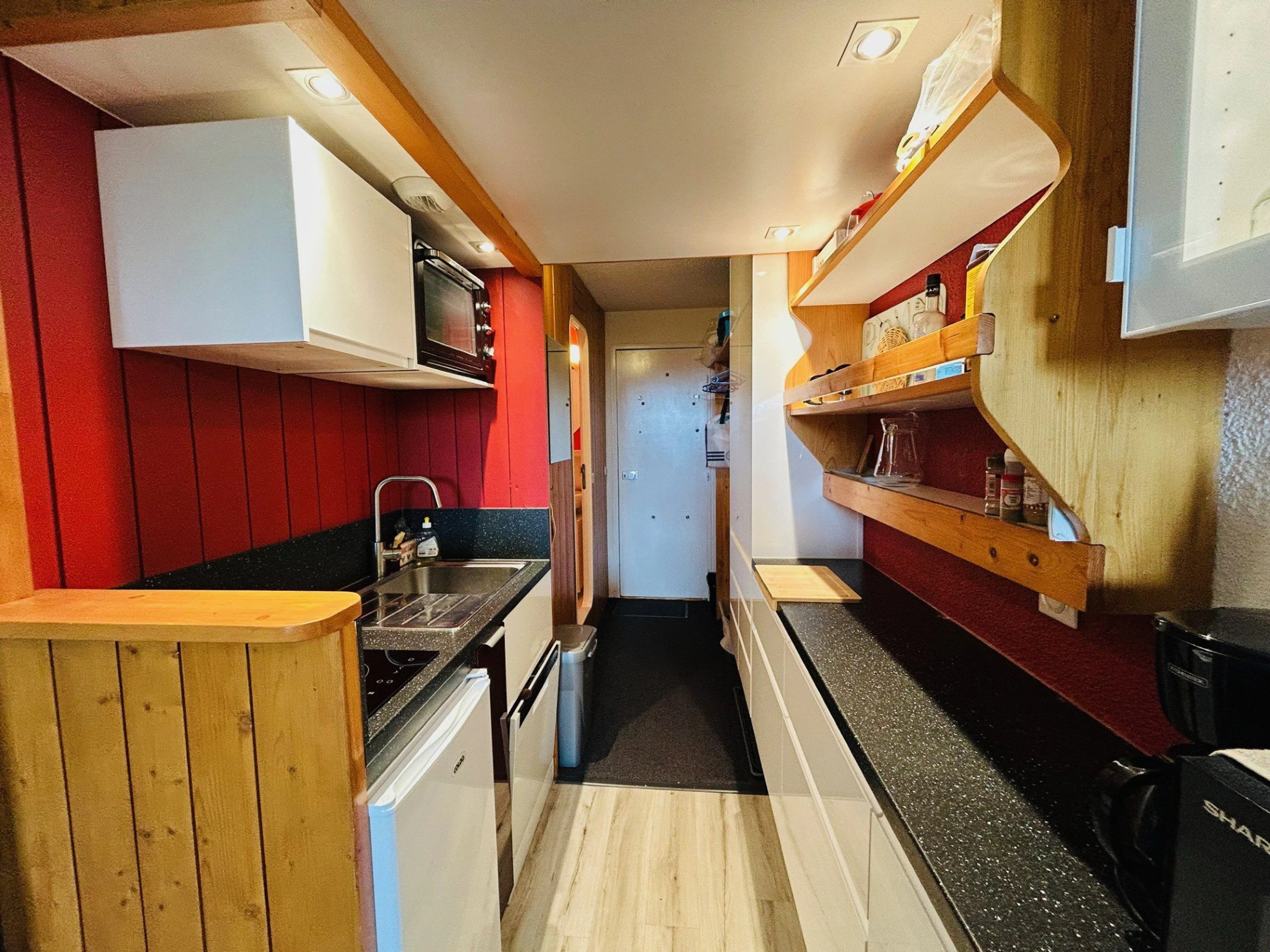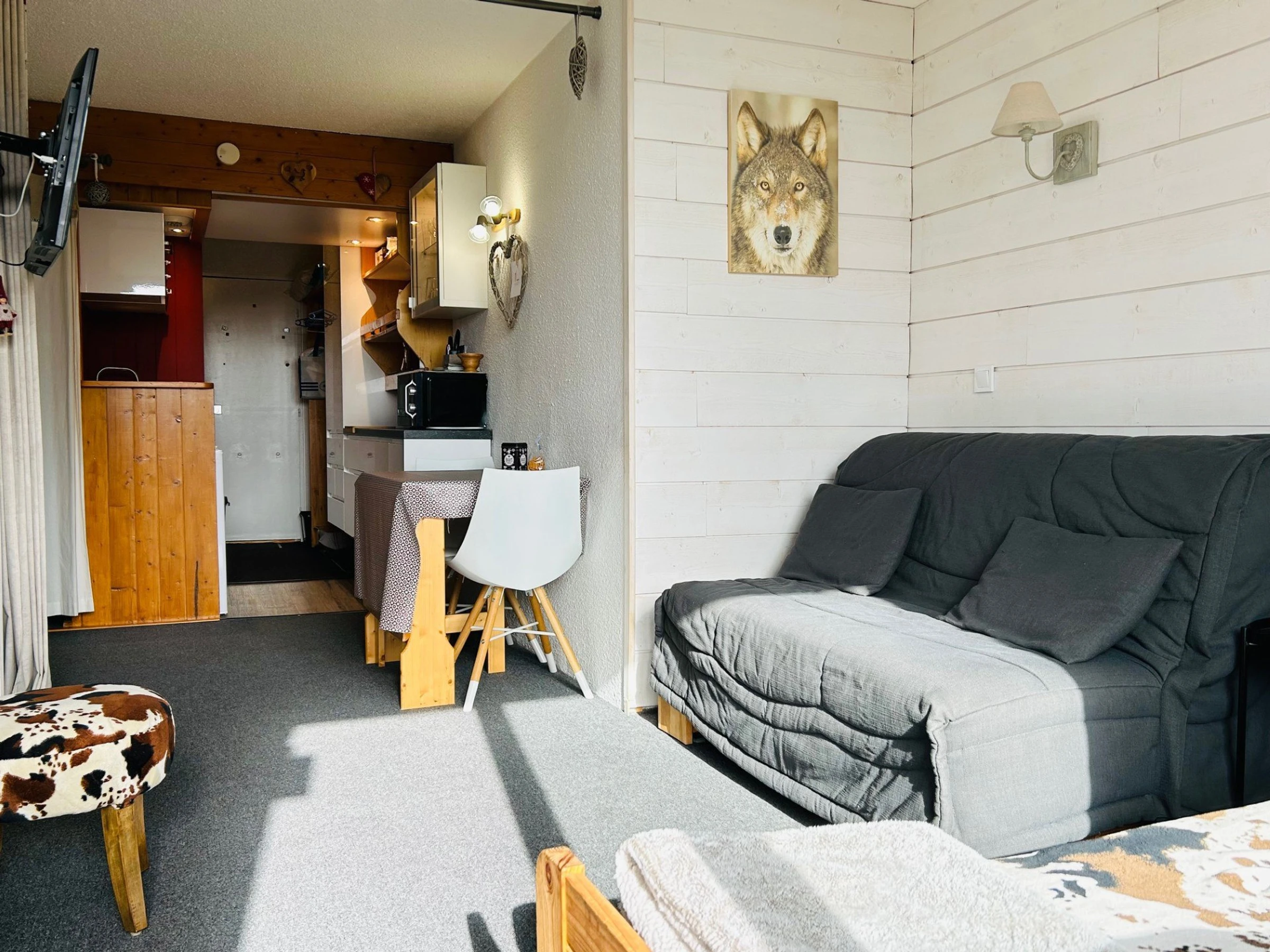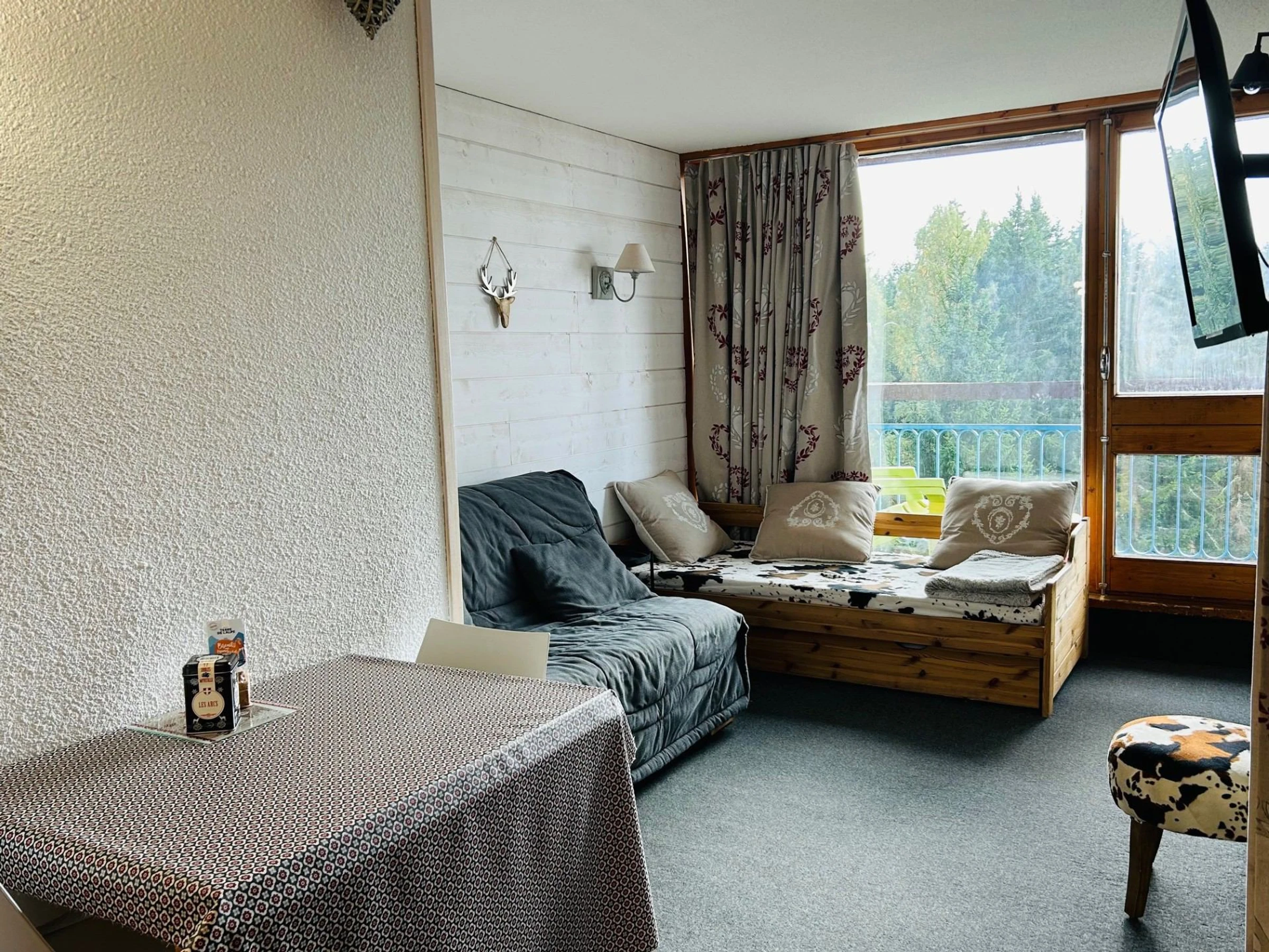 Estudio de 24 m² para 4 personas, ubicado en la 7.ª planta de la residencia Belles Challes du Charvet, con orientación suroeste, a pie de pistas y comercios. Con balcón.