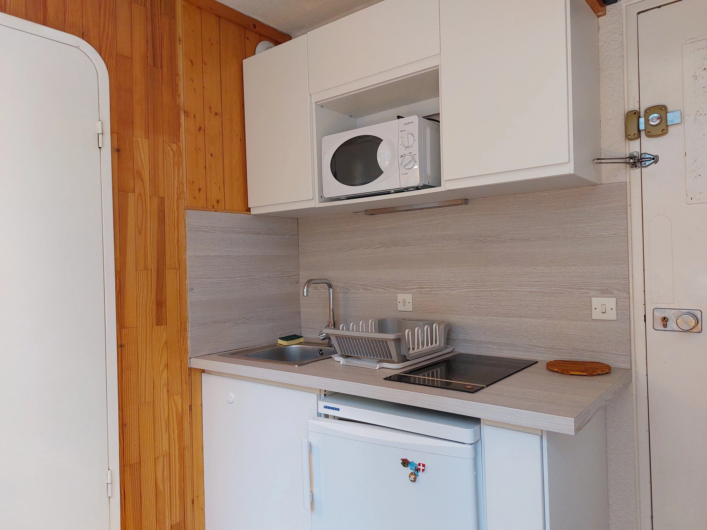 Para sus vacaciones de esquí o para pasar el verano en Arc 1800, reserve este estudio con orientación noreste.