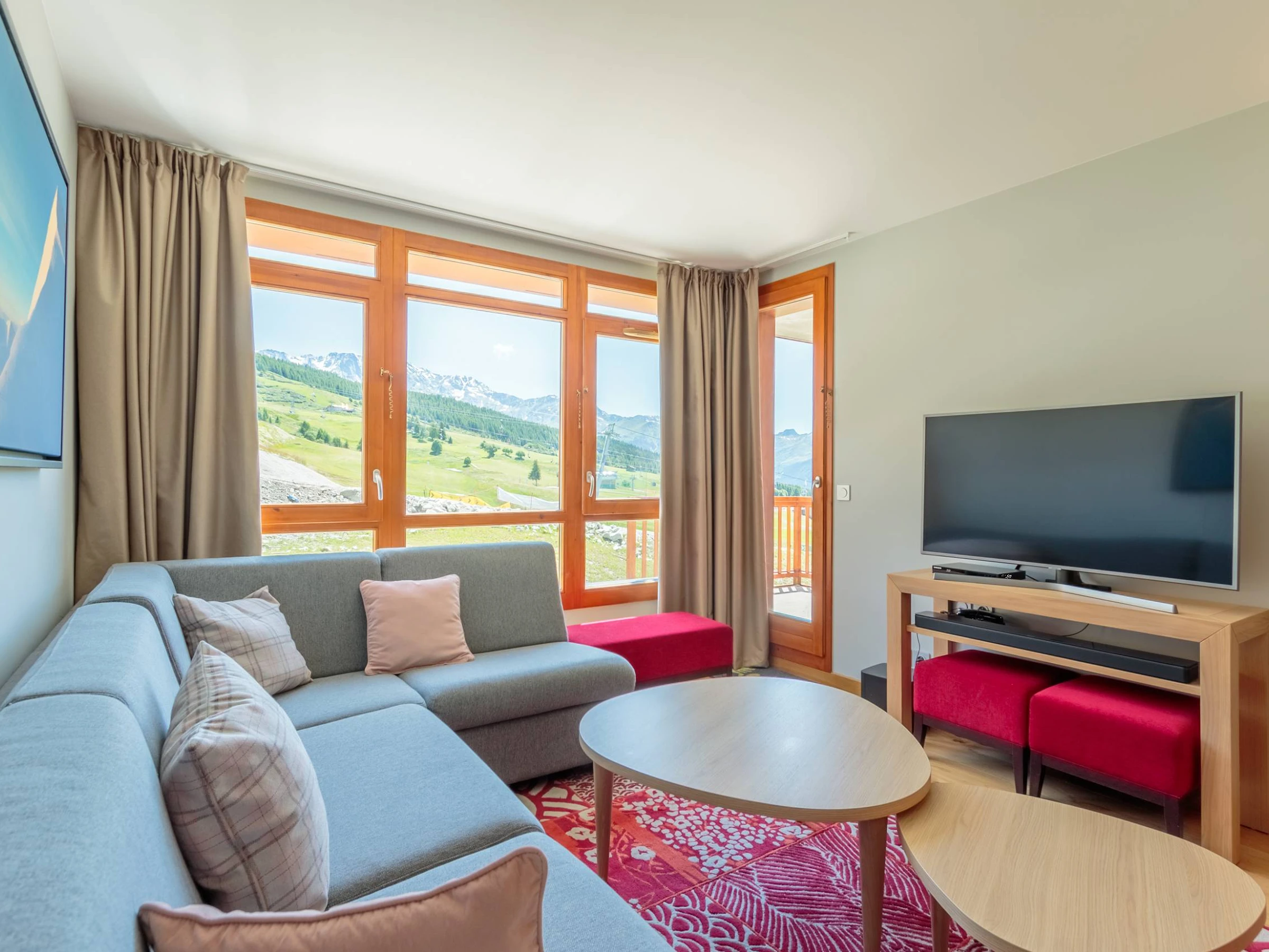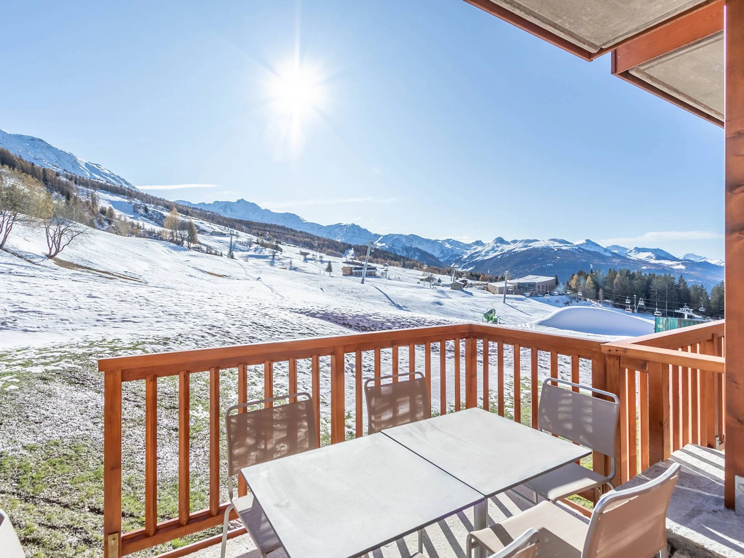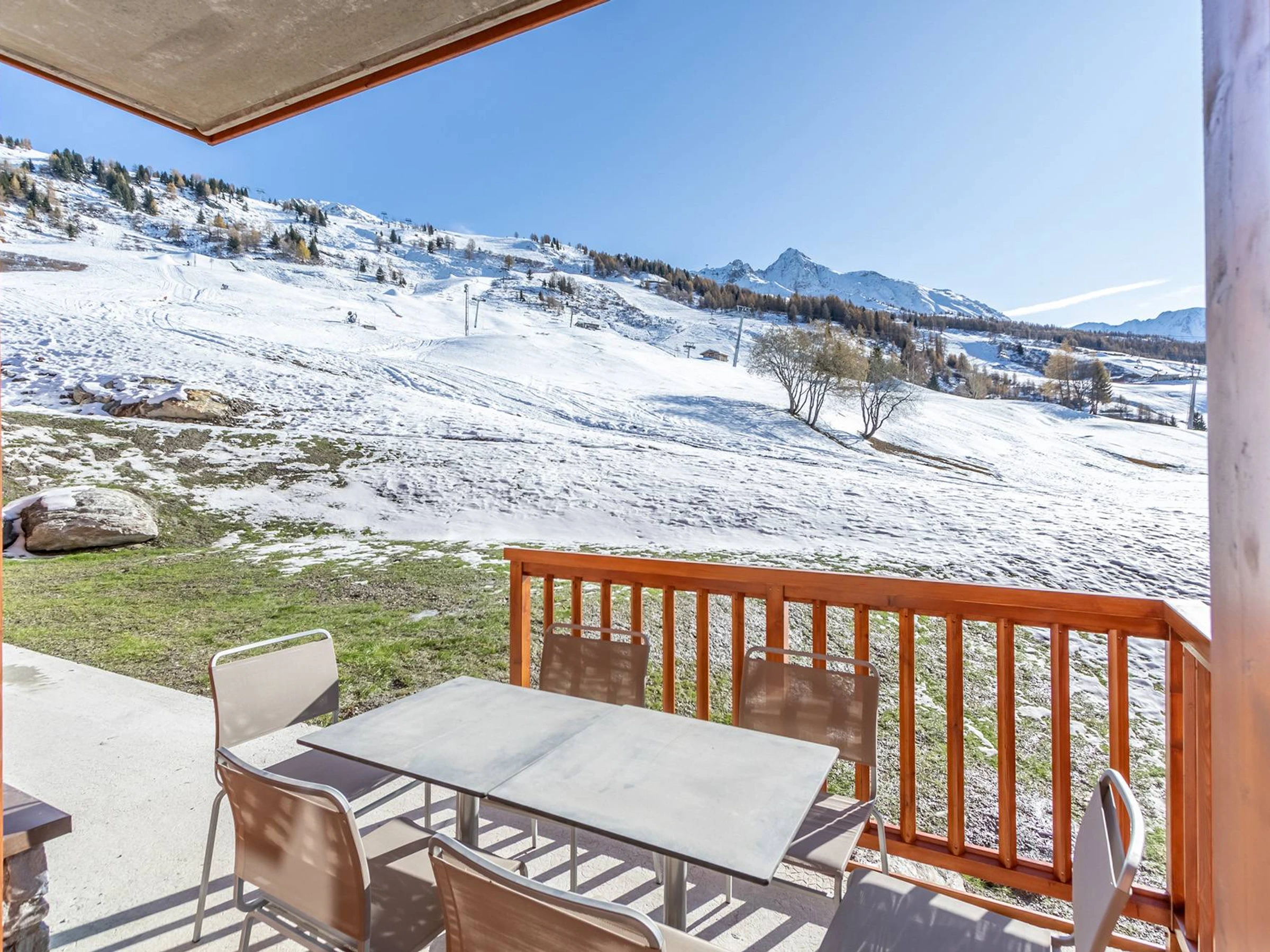 ARCS 1800 - Residencia Premium 4*: LES MONARQUES, un ambiente acogedor y moderno para este apartamento de 78 m² y 4 habitaciones con balcón y terraza en la planta baja, que ofrece magníficas vistas al valle de Tarentaise. Orientación suroeste. Servicios incluidos: piscina, spa y gimnasio en la excepcional ubicación de Edenarc au Chantel en Arc 1800, en pleno centro de la estación de esquí Paradiski. Residencia de lujo con servicios de hotel, acceso directo a las pistas de esquí en invierno y junto al campo de golf en verano.