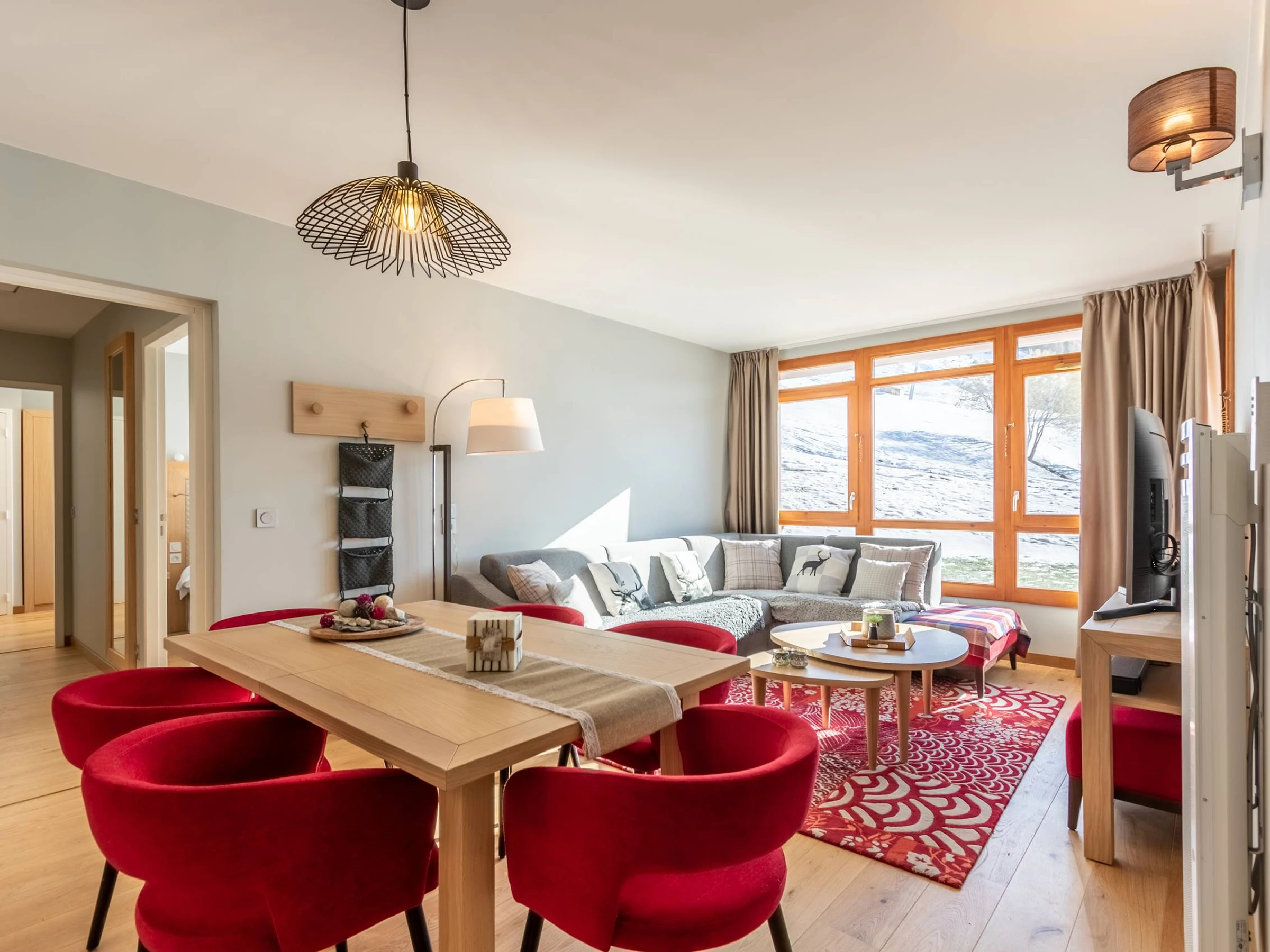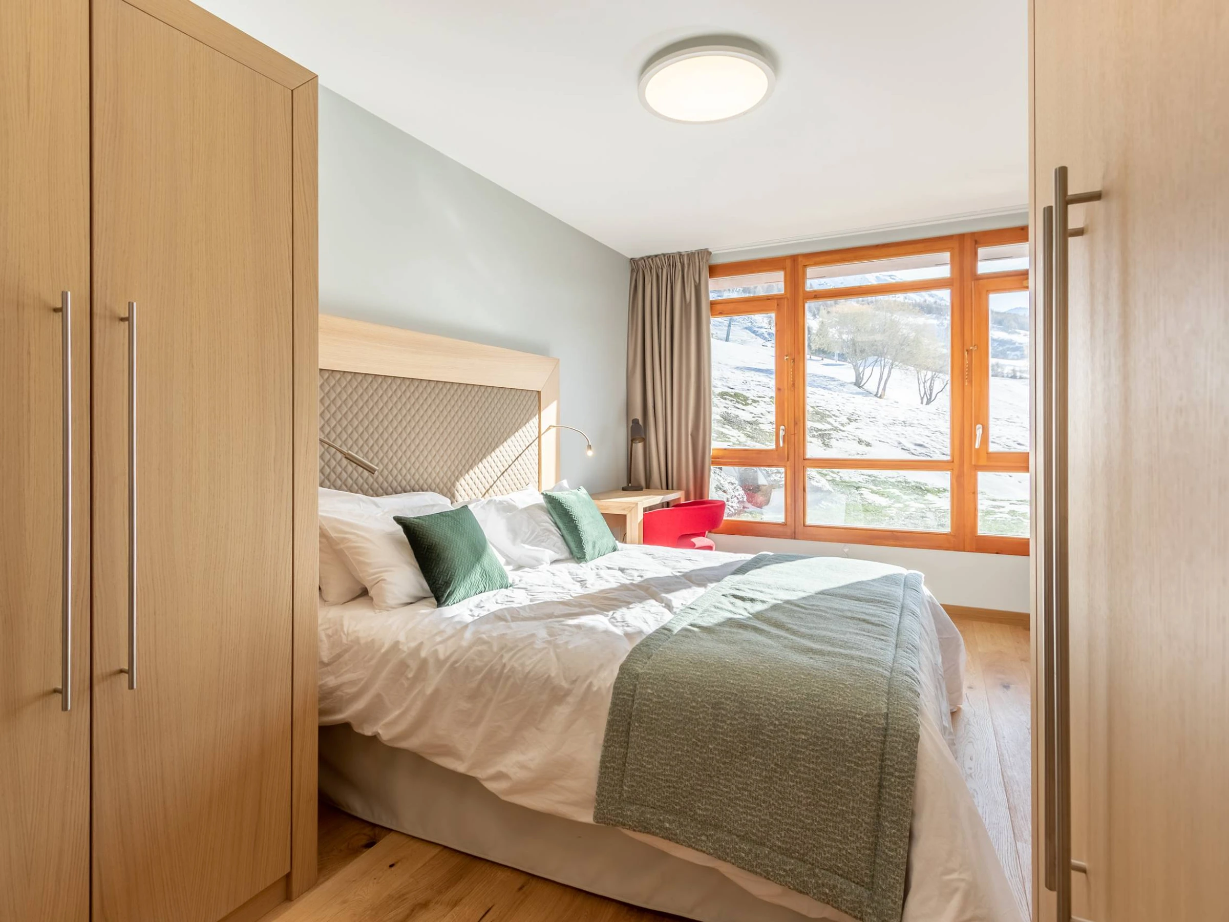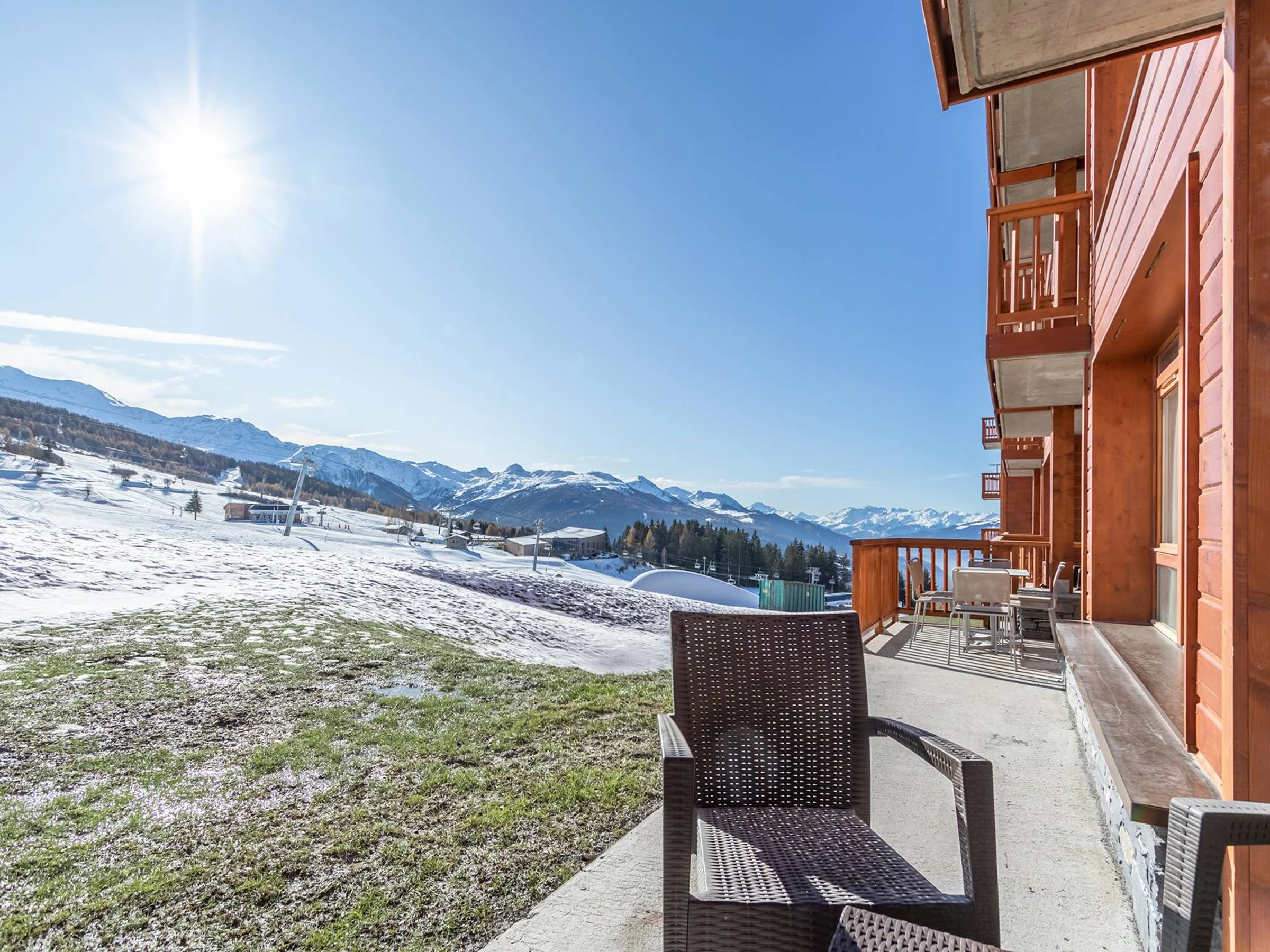ARCS 1800 - Residencia Premium 4*: LES MONARQUES, un ambiente acogedor y moderno para este apartamento de 78 m² y 4 habitaciones con balcón y terraza en la planta baja, que ofrece magníficas vistas al valle de Tarentaise. Orientación suroeste. Servicios incluidos: piscina, spa y gimnasio en la excepcional ubicación de Edenarc au Chantel en Arc 1800, en pleno centro de la estación de esquí Paradiski. Residencia de lujo con servicios de hotel, acceso directo a las pistas de esquí en invierno y junto al campo de golf en verano.