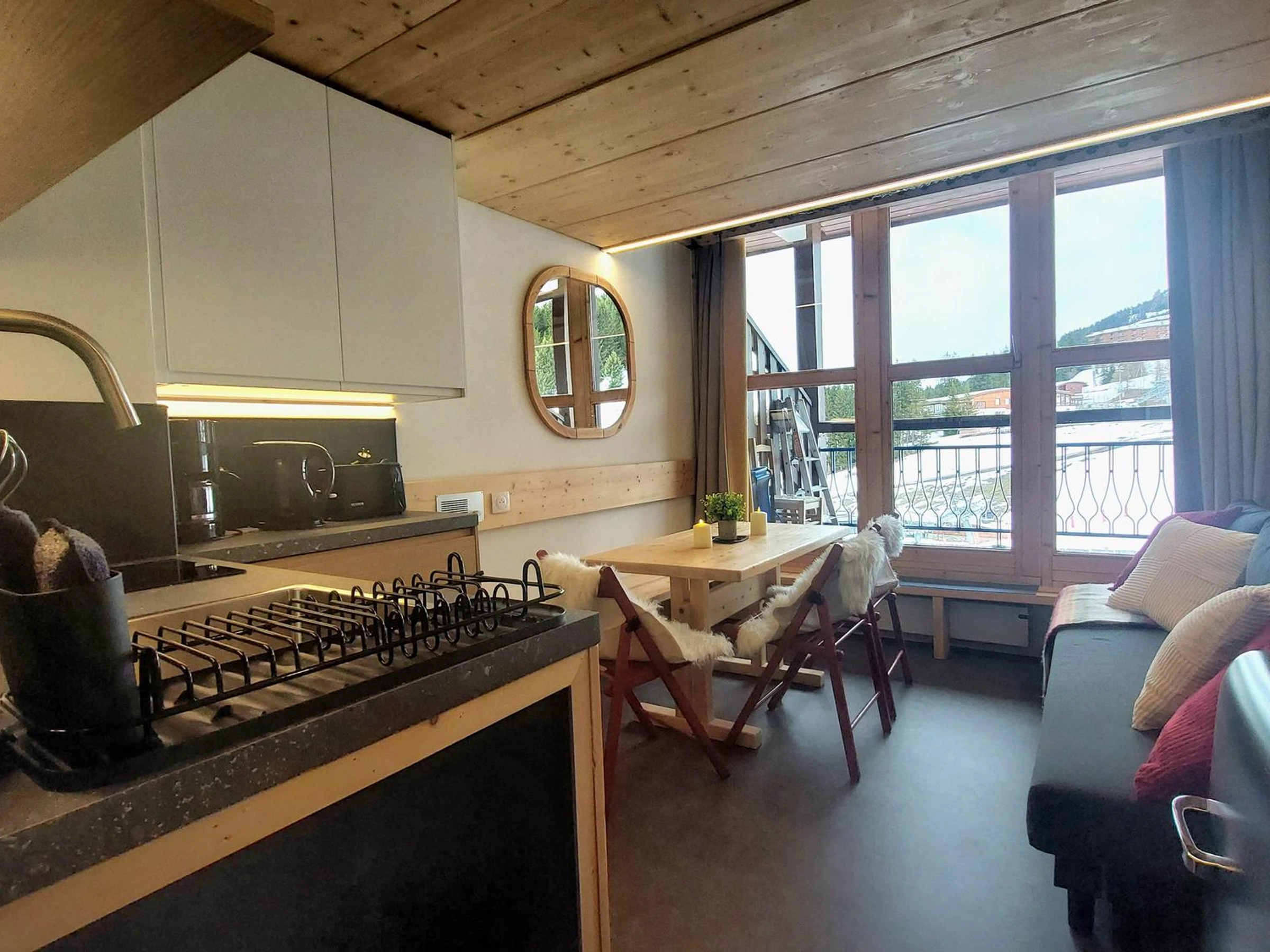 Apartamento dúplex reformado para 6 personas, con una superficie habitable de 30 m², ubicado en la residencia Mirantins 2, en la 4.ª y última planta, en el pueblo de Charmettoger, cerca del telesilla Transarc.