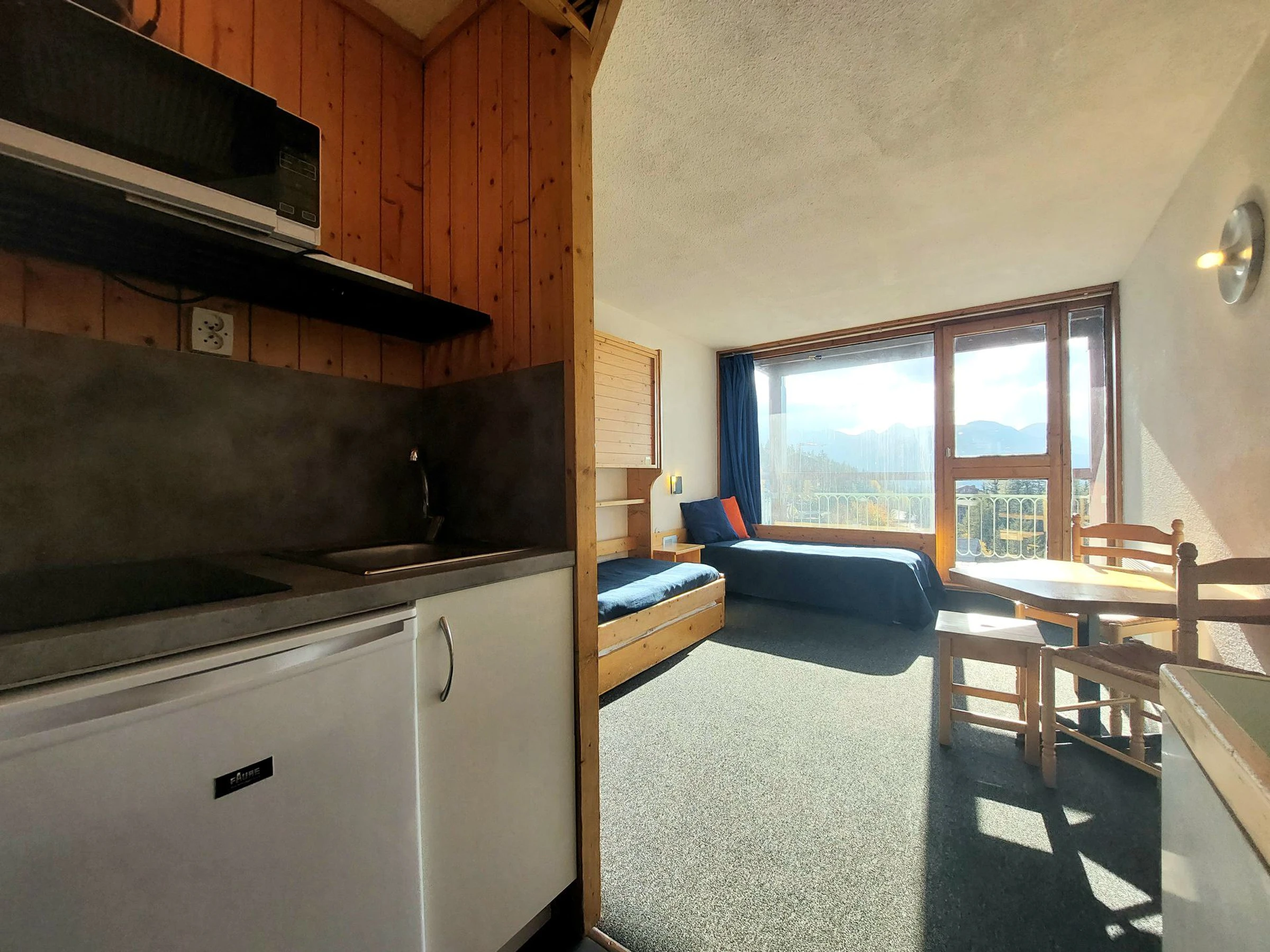 Estudio amueblado y equipado para 3 personas, de 21 m², en pleno centro de la estación, en el pueblo de Les Villards, en la 3.ª planta de la residencia Tournavelles 2, a pie de pistas y de tiendas.