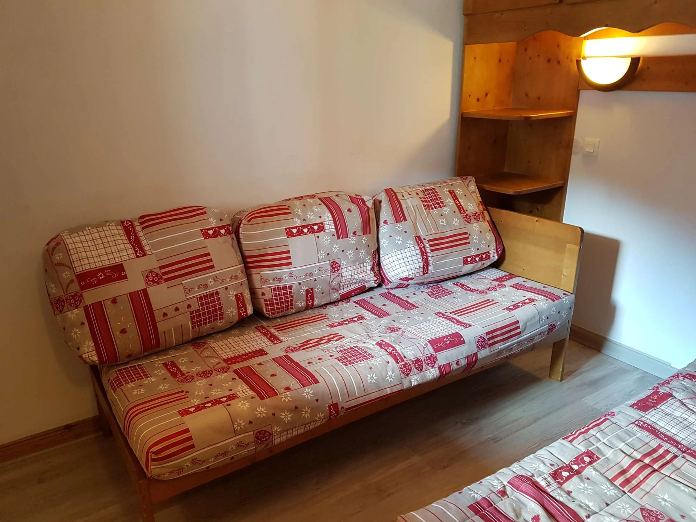 El dormitorio tiene 2 camas individuales de 90x190 cm y la entreplanta tiene una cama doble de 140 cm. Todas las camas están equipadas con edredones.