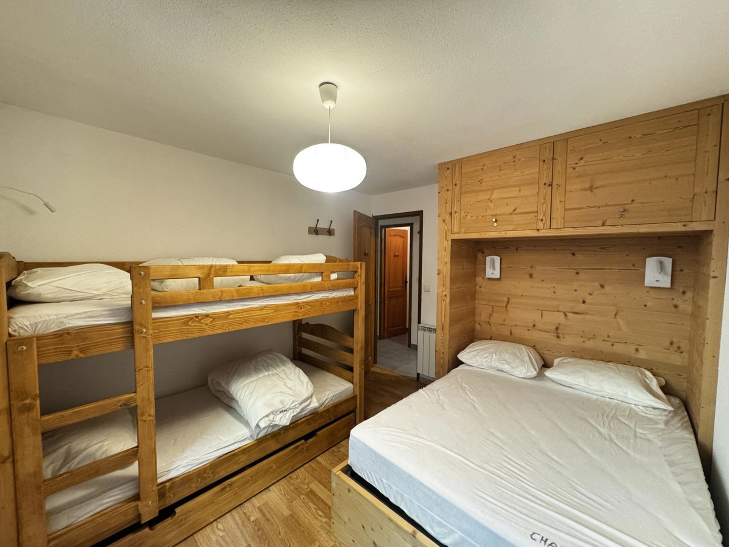El apartamento tiene capacidad para hasta seis personas gracias a un salón con sofá cama doble y un dormitorio con un segundo sofá cama doble y dos literas (la litera superior no es apta para menores de 6 años). El baño fue reformado con ducha en abril de 2016 y el aseo es independiente. La cocina está totalmente equipada con horno, microondas, vitrocerámica, lavavajillas y nevera. Para su comodidad, también encontrará un televisor de pantalla plana, reproductor de DVD, estufa de leña, guardaesquís nº 12 y calefacción y agua caliente eléctricas individuales.