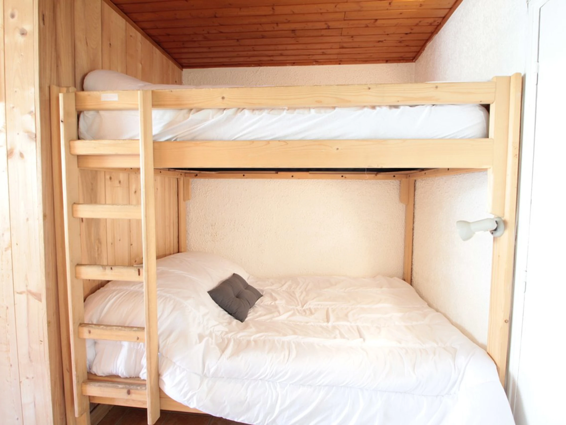 El alojamiento incluye un salón con un sofá cama doble y dos literas (130 cm). Tenga en cuenta que la litera superior no se recomienda para niños menores de 6 años. El baño está equipado con ducha e inodoro. La cocina americana está totalmente equipada con un minihorno, una nevera, dos placas eléctricas y un microondas.