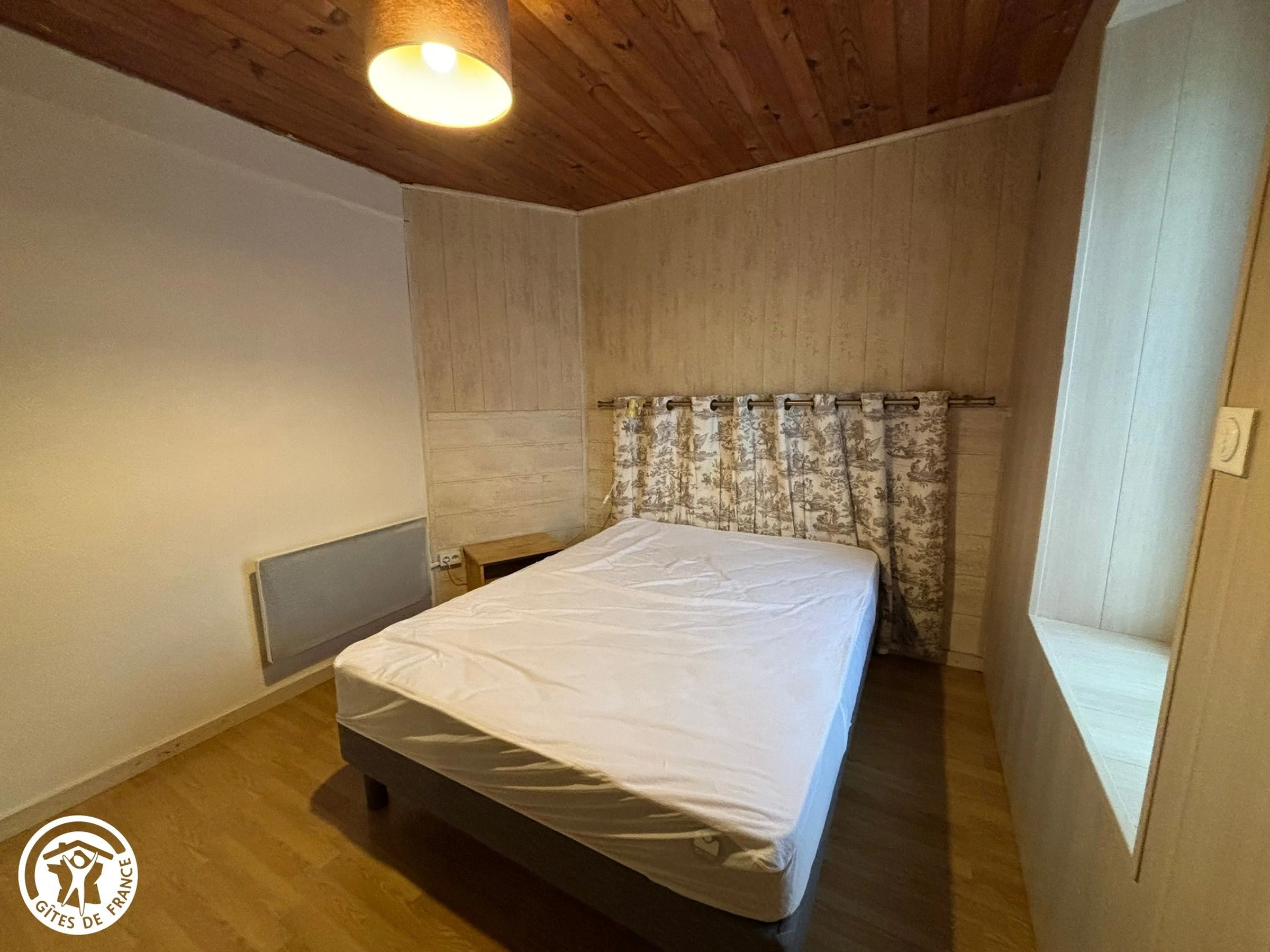Casa antigua reformada, anexa a la residencia del propietario, ubicada en el campo. Planta baja: salón-comedor-cocina, baño con ducha/WC, lavandería, 2 dormitorios (1 cama doble, 2 camas individuales). Wi-Fi. Zona privada de 100 m² con terraza (muebles de jardín, barbacoa). Jardín compartido de 1500 m² con gallinas y cabras. Calefacción incluida.