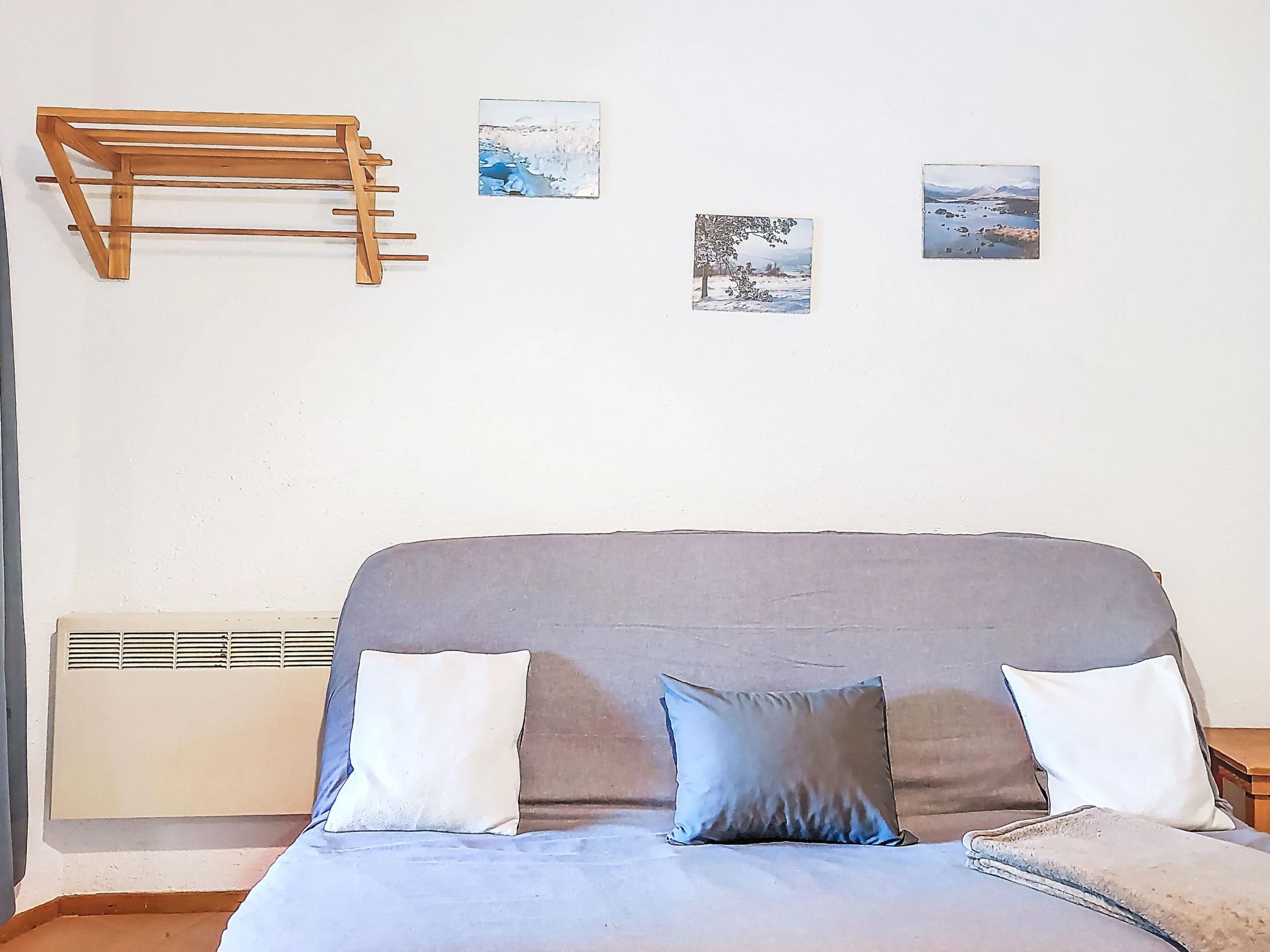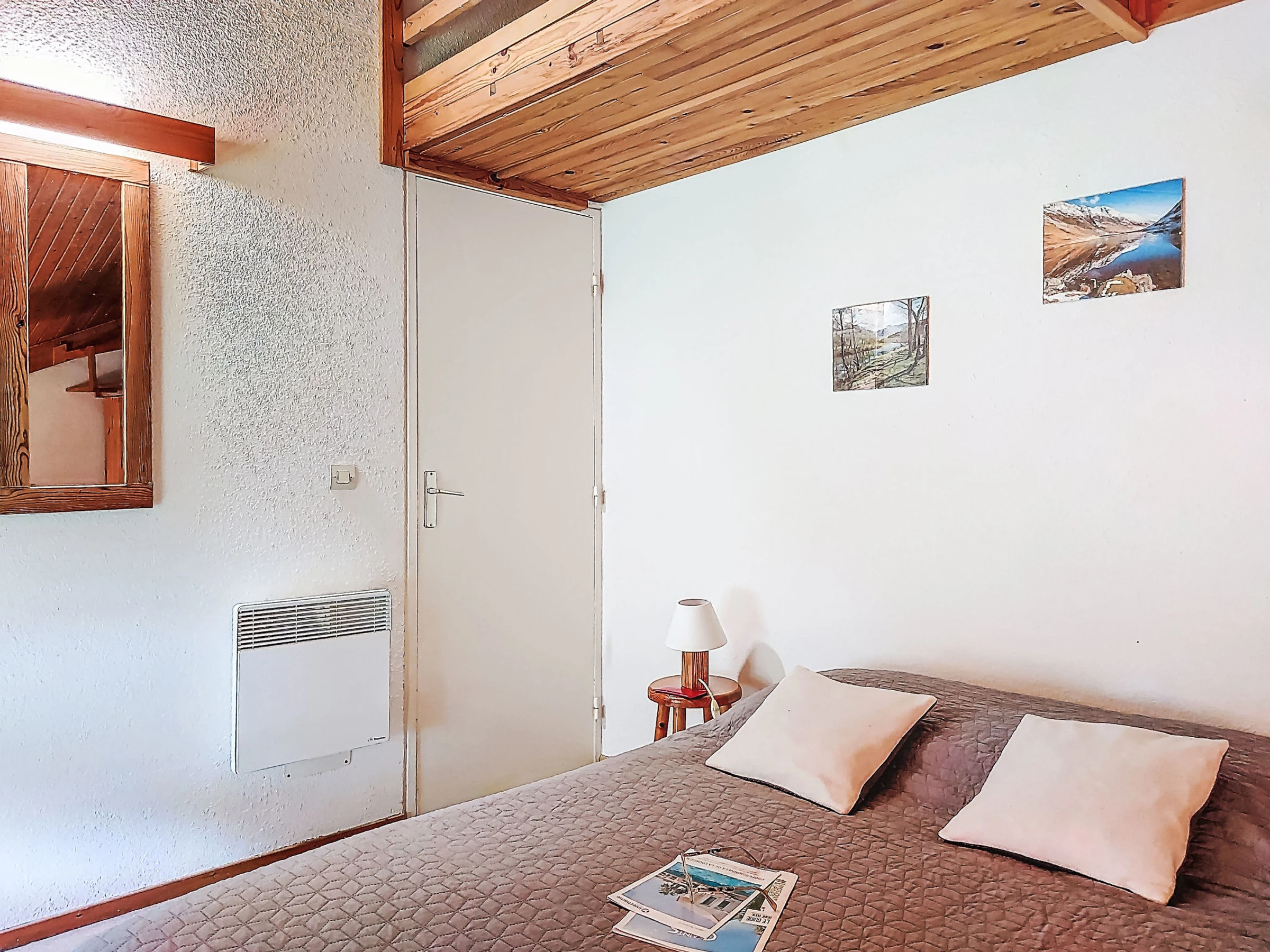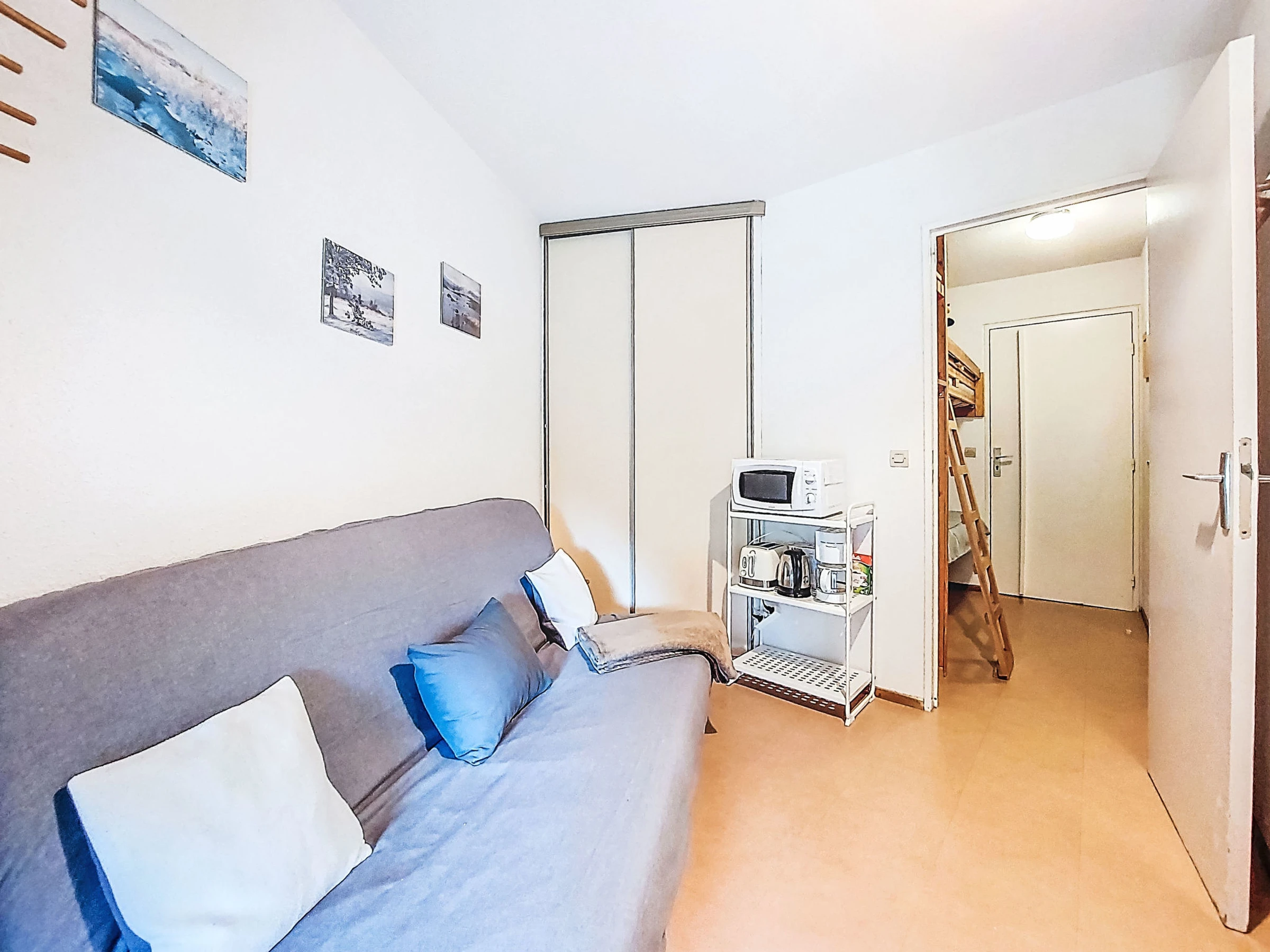 Apartamento de 2 estancias 32 m2 en el 4° piso. Salón-comedor con 1 sofá-cama doble y TV. Salida al balcón. 1 dorm. con 1 cama de matrimonio. Entrada con 1 x 2 literas. Rincón-cocina (2 fogones, horno, tostadora, hervidor de agua eléctrico, cafetera eléctrica, microondas/grill). Baño, WC separado. Calefacción eléctrica. Balcón 3 m2, orientación suroeste. Muebles de balcón. Vista a las montañas. El alojamiento dispone de: cuna. Internet (Wifi, extra). A tener en cuenta: TV solamente FR. Detector de humo. Edificio F. [hidden]
