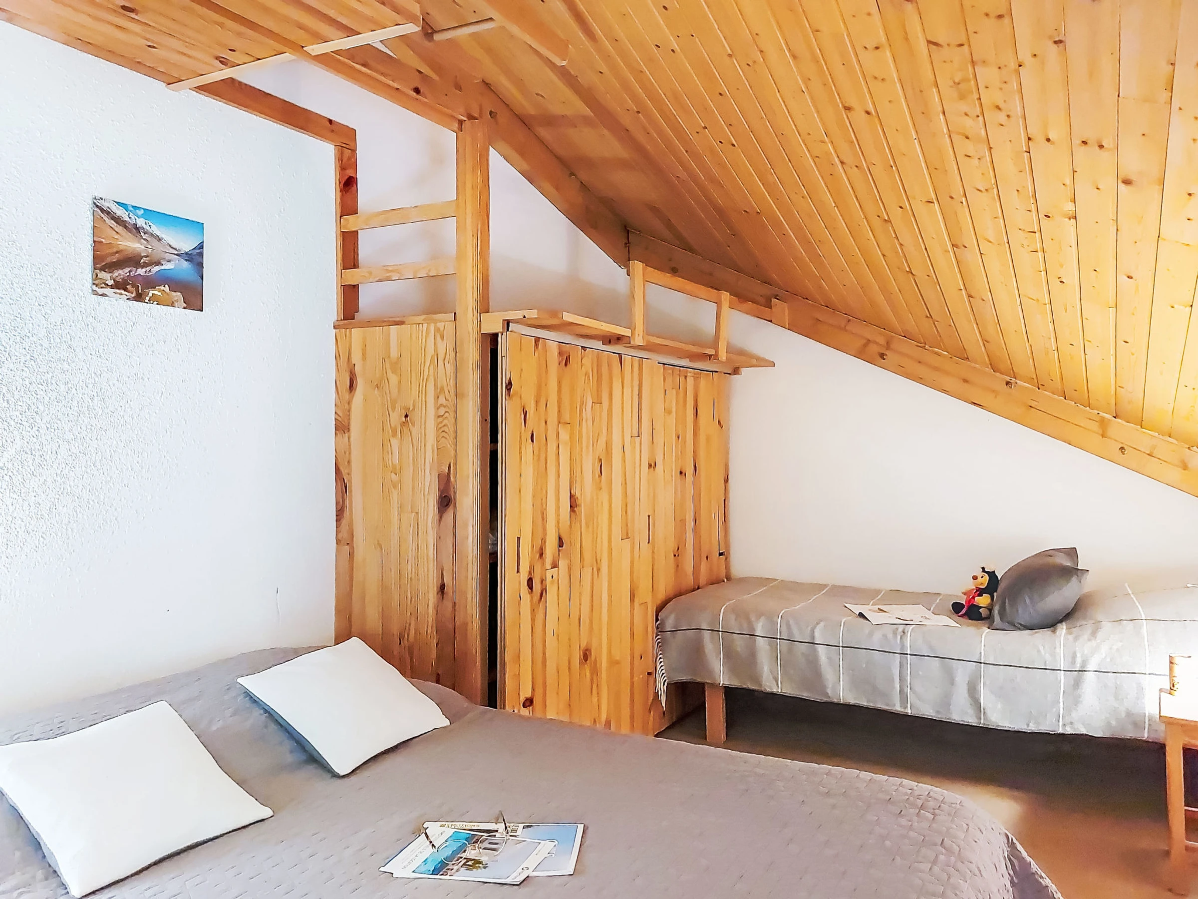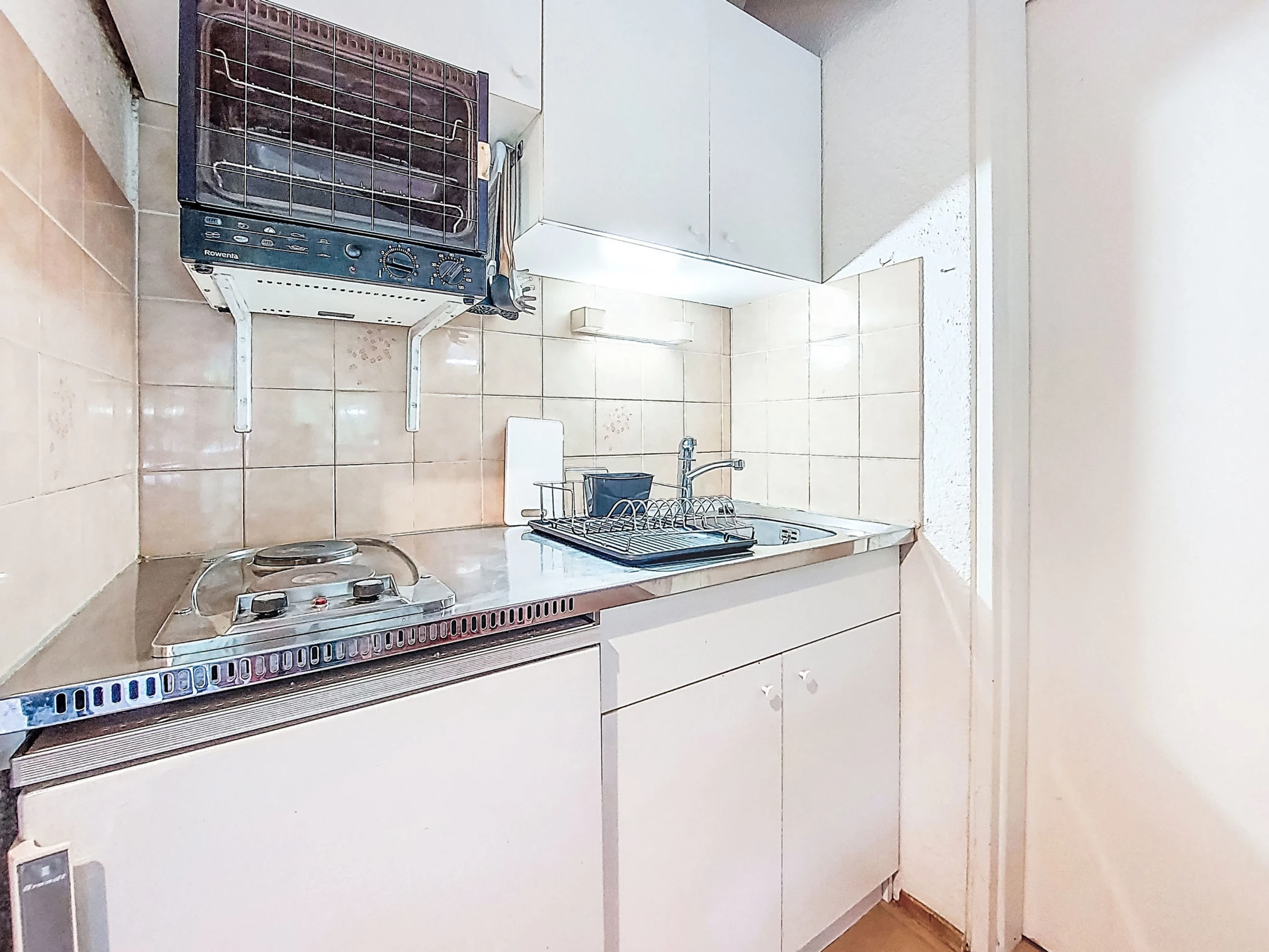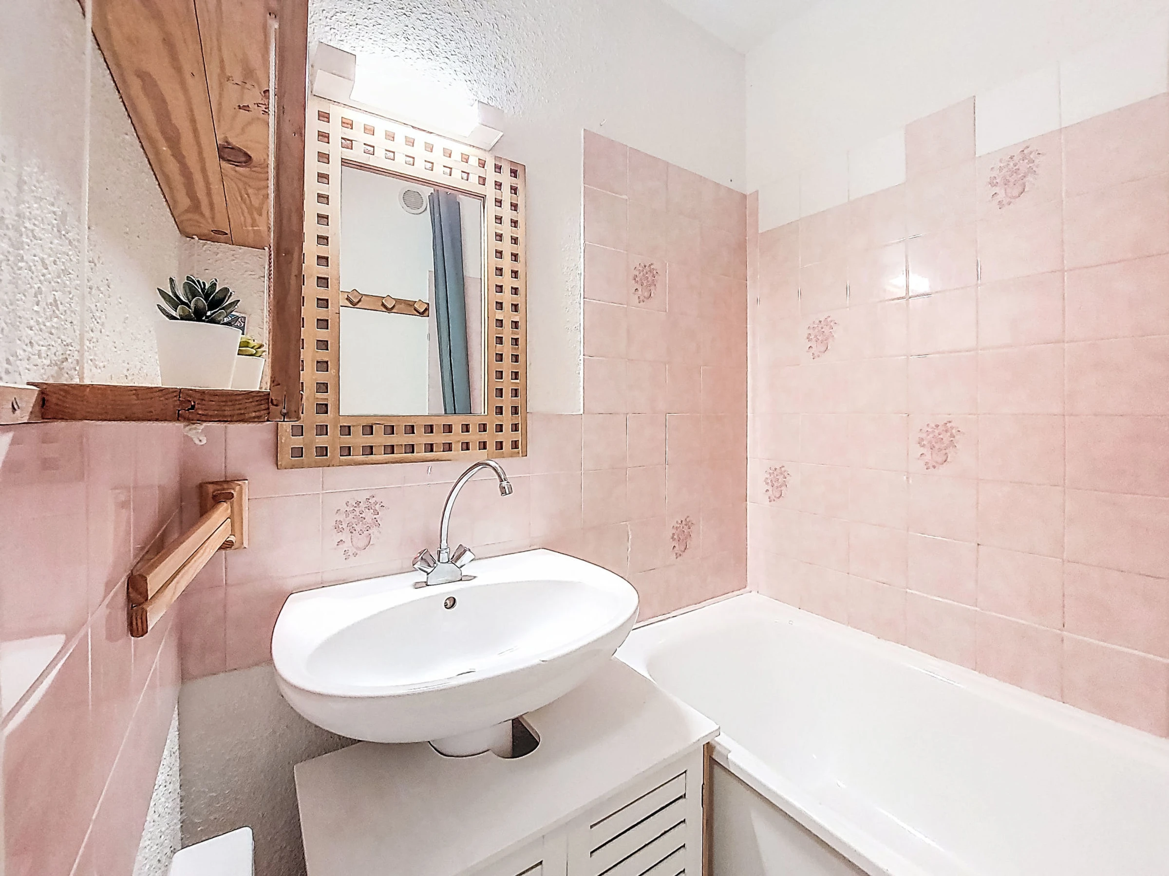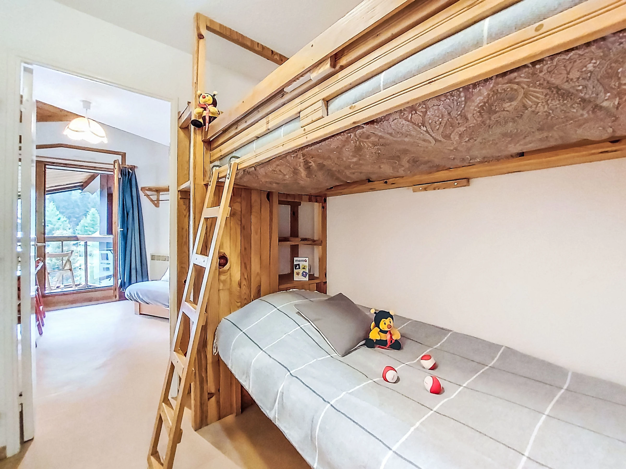 Apartamento de 2 estancias 32 m2 en el 4° piso. Salón-comedor con 1 sofá-cama doble y TV. Salida al balcón. 1 dorm. con 1 cama de matrimonio. Entrada con 1 x 2 literas. Rincón-cocina (2 fogones, horno, tostadora, hervidor de agua eléctrico, cafetera eléctrica, microondas/grill). Baño, WC separado. Calefacción eléctrica. Balcón 3 m2, orientación suroeste. Muebles de balcón. Vista a las montañas. El alojamiento dispone de: cuna. Internet (Wifi, extra). A tener en cuenta: TV solamente FR. Detector de humo. Edificio F. [hidden]