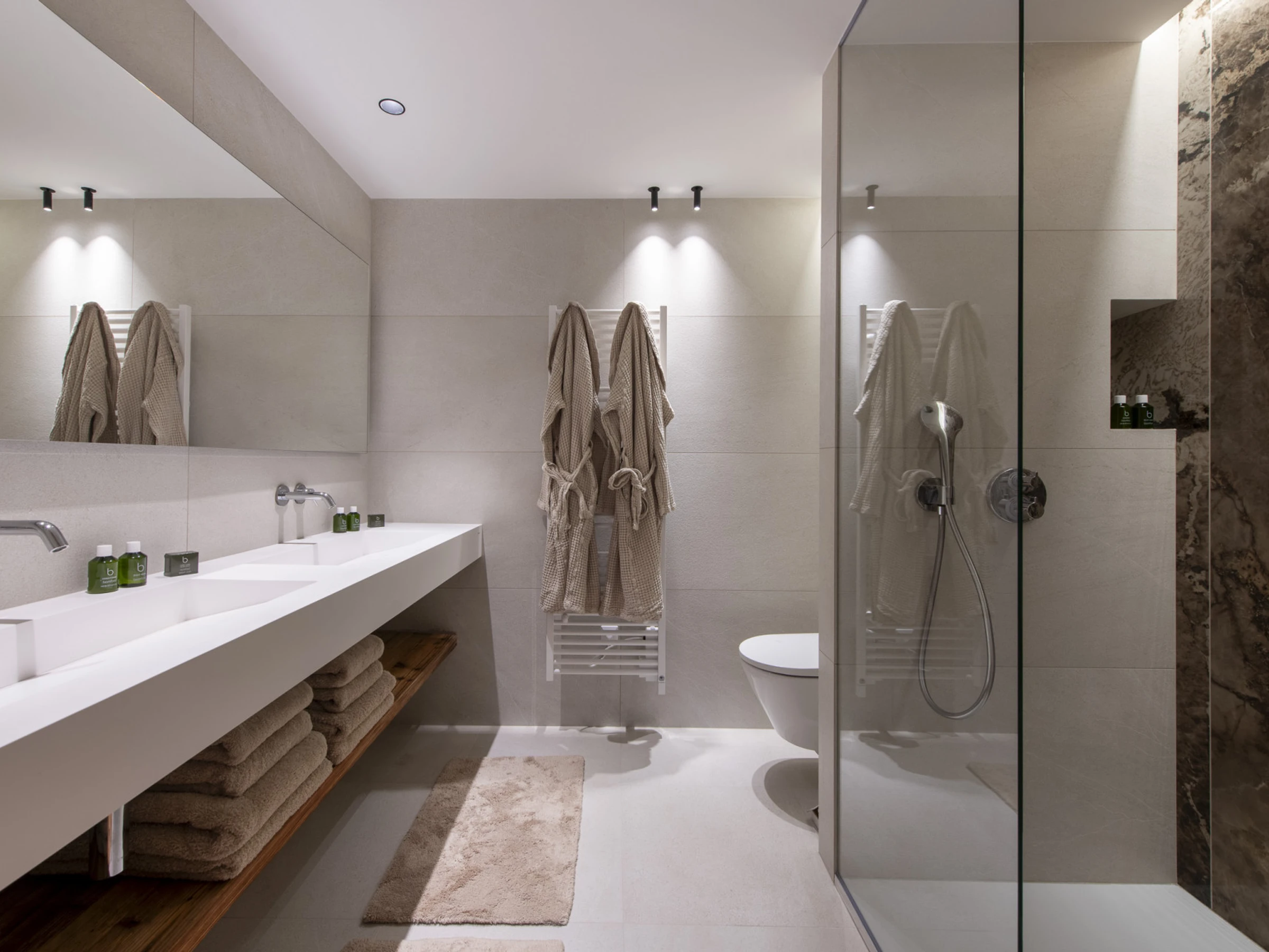2 WC(s) separados, 1 Baño(s) con bañera/ducha y lavabo, 1 Cuarto de ducha con ducha y lavabo