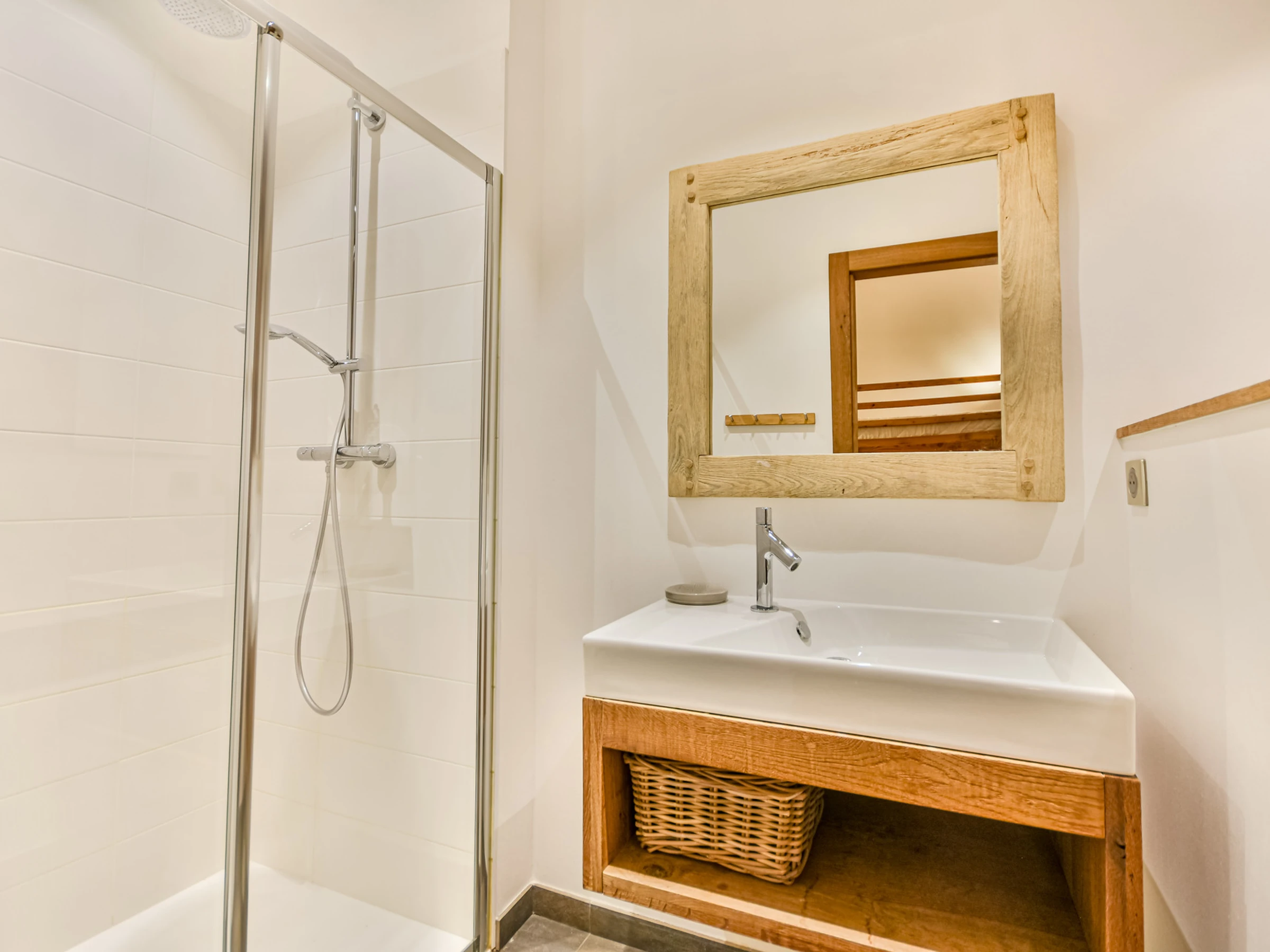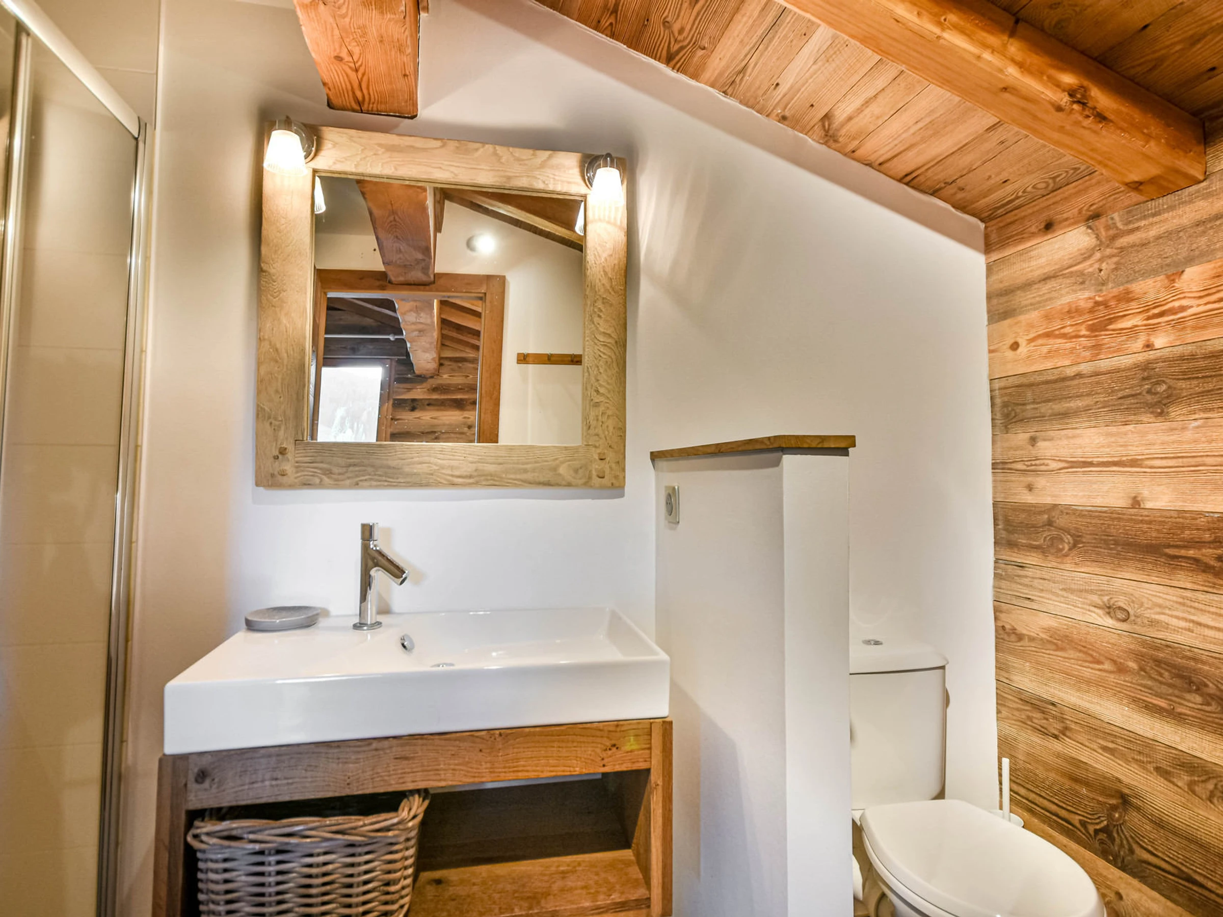 - Dormitorio tipo cabaña con baño en suite y 4 literas de 90 cm (TV, ducha a ras de suelo, WC)