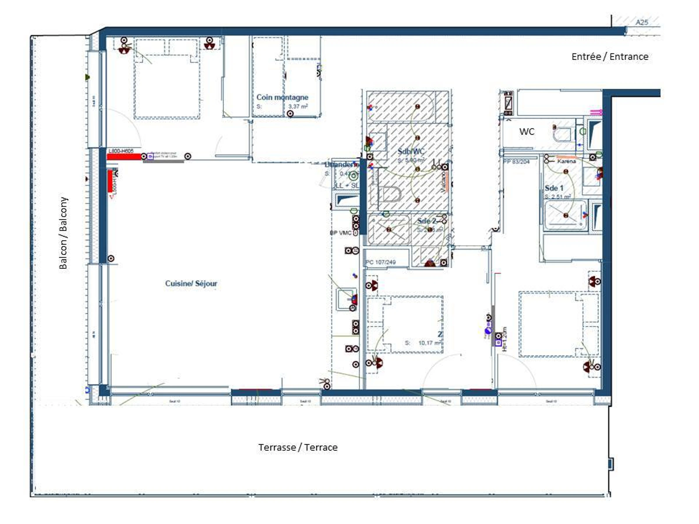 Apartamento de 100 m² en el segundo piso de una residencia de alta calidad con una ubicación ideal y un ascensor que ofrece una vista impresionante del Mont Chéry y del centro del pueblo con su pista de hielo y restaurantes, así como del pie de pistas. Enorme terraza de 42 m² orientada al este/sur/oeste.