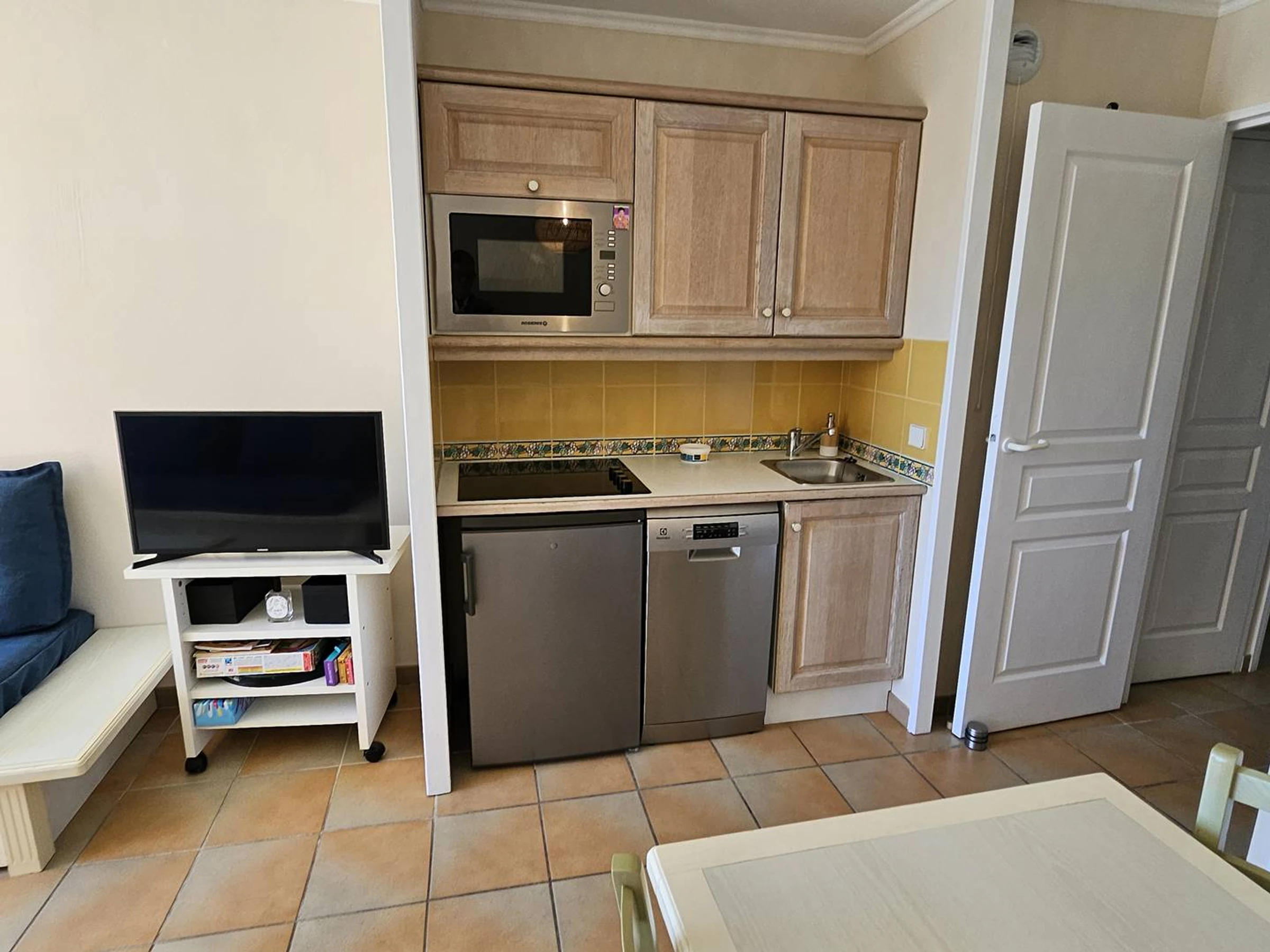 T2 en Rivage des Issambres, Costa Azul, frente a Saint Tropez. Situado a 100 m del mar, del puerto y de los comercios, el encantador condominio de vacaciones "Le Rivage", este apartamento con aire acondicionado tiene capacidad para 4+1 personas para las vacaciones. Compuesto por un dormitorio con cama de 140 cm, 3 camas en el salón con camas de 80 cm (alquiler de ropa de cama bajo petición), salón con zona de cocina. Lavavajillas, lavandería en el condominio, televisión TNT, ofrece todas las comodidades contemporáneas para su estadía. Para ello se reserva una plaza de aparcamiento y, por supuesto, la gran piscina de la residencia.