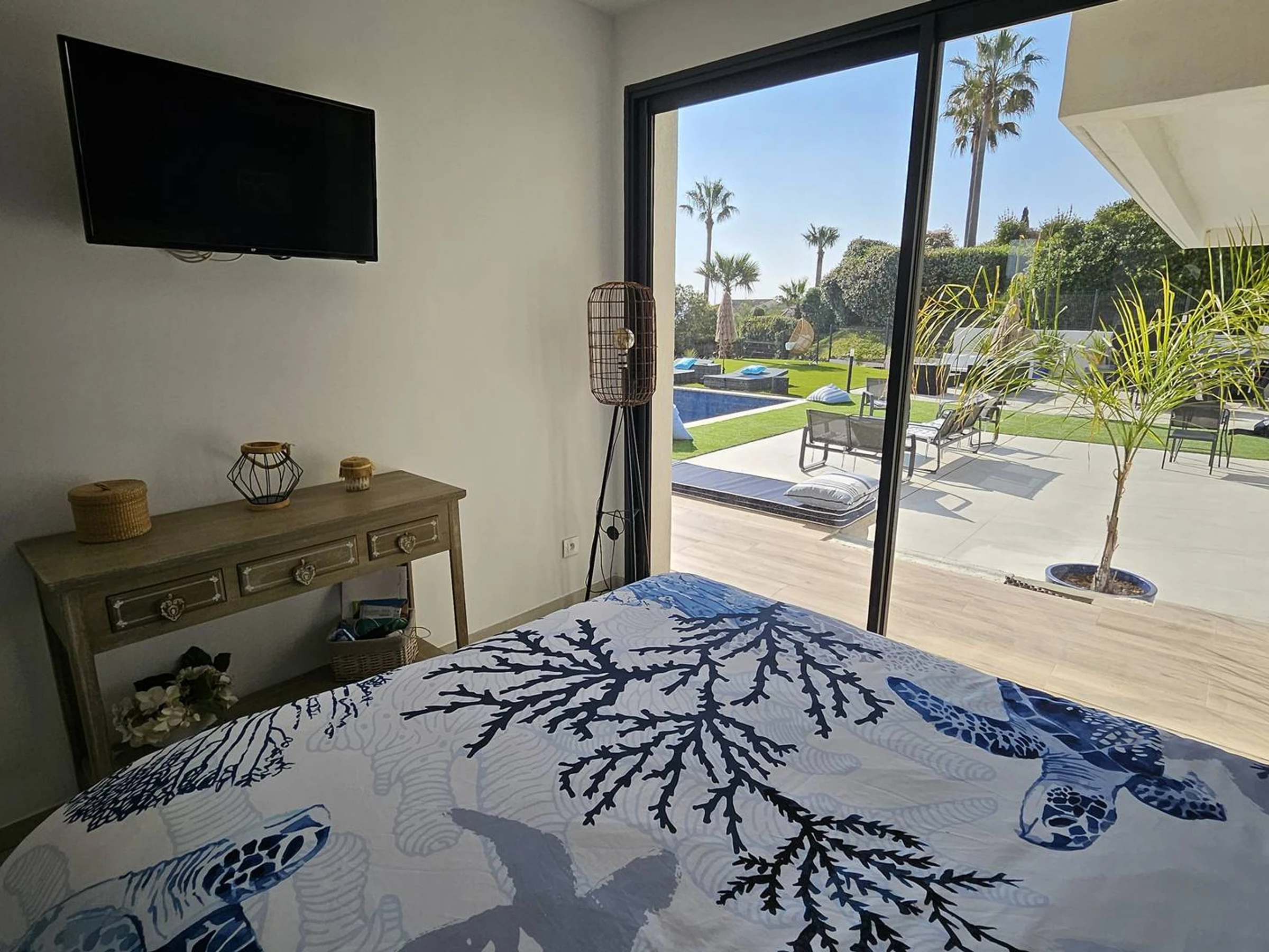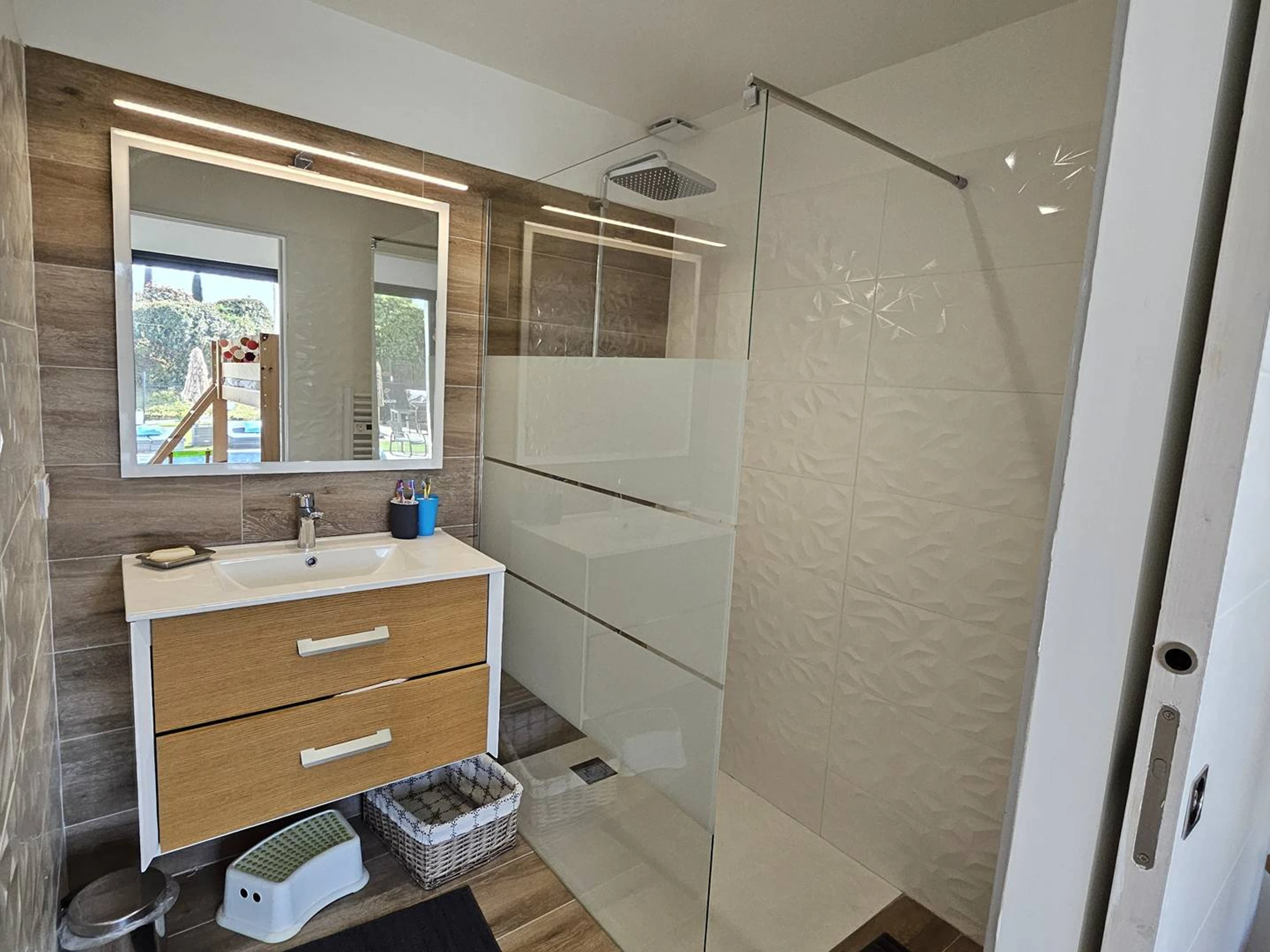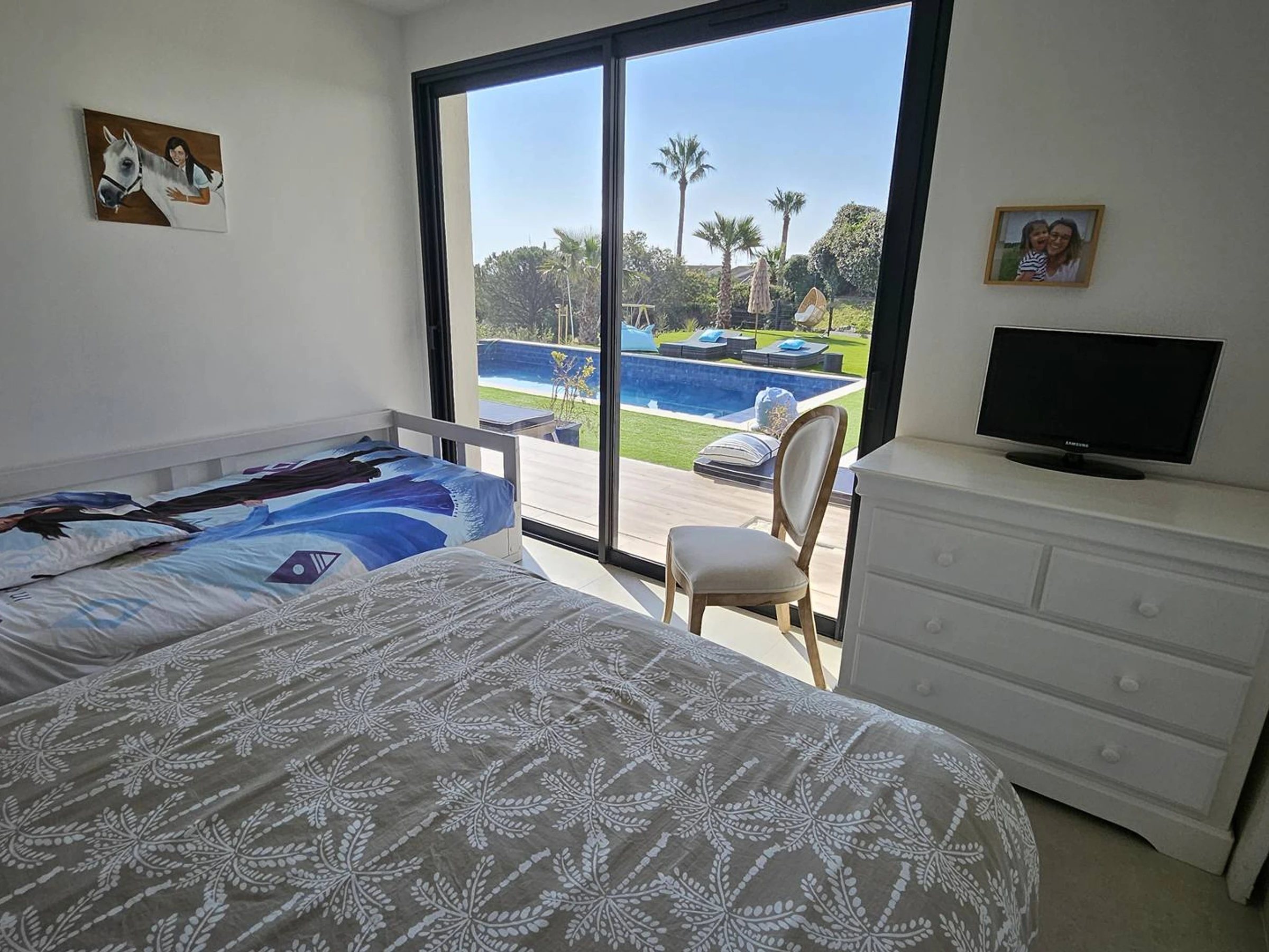 Apreciarás la elegancia combinada con muy buen gusto. En el nivel de la terraza, piscina, sala de estar, comedor con cocina abierta, lavadero Dormitorio 1 y 2 con cama de 160 cm, baño con ducha, dormitorio 3 con su baño con cama de 140 cm + cama infantil de 90 cm, dormitorio 4 llamado parental (cama de 160 cm) con su baño con ducha, vestidor y una discreta ducha en la terraza. Casa de piscina totalmente equipada con cocina, barbacoa de gas y plancha de gas.