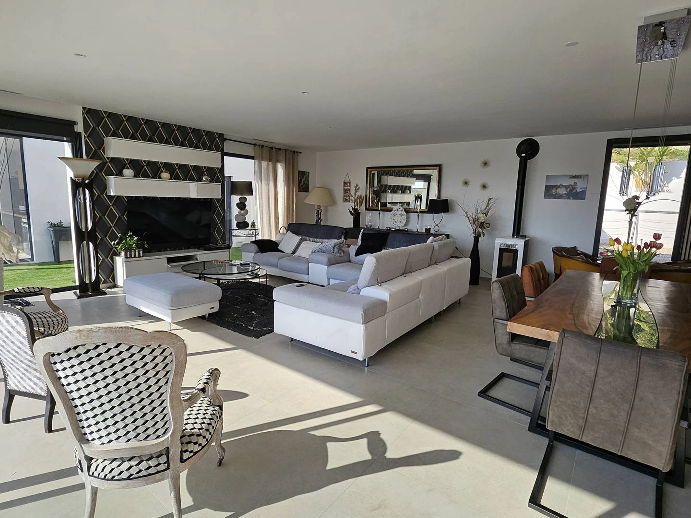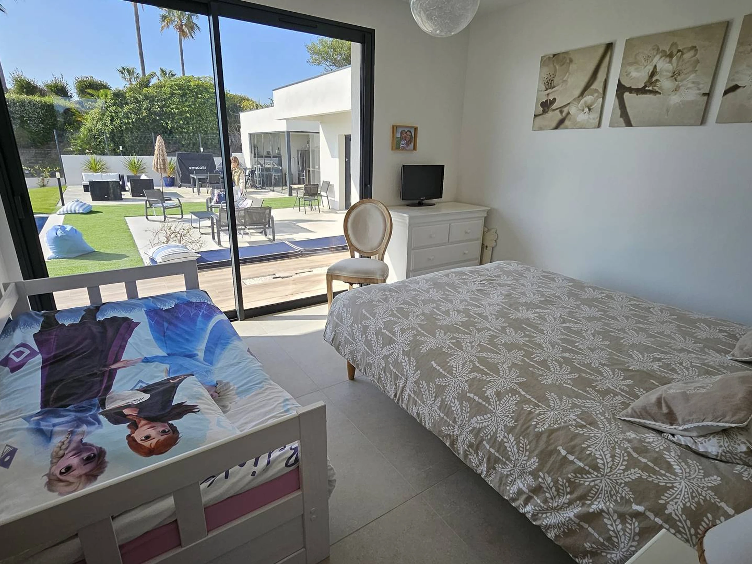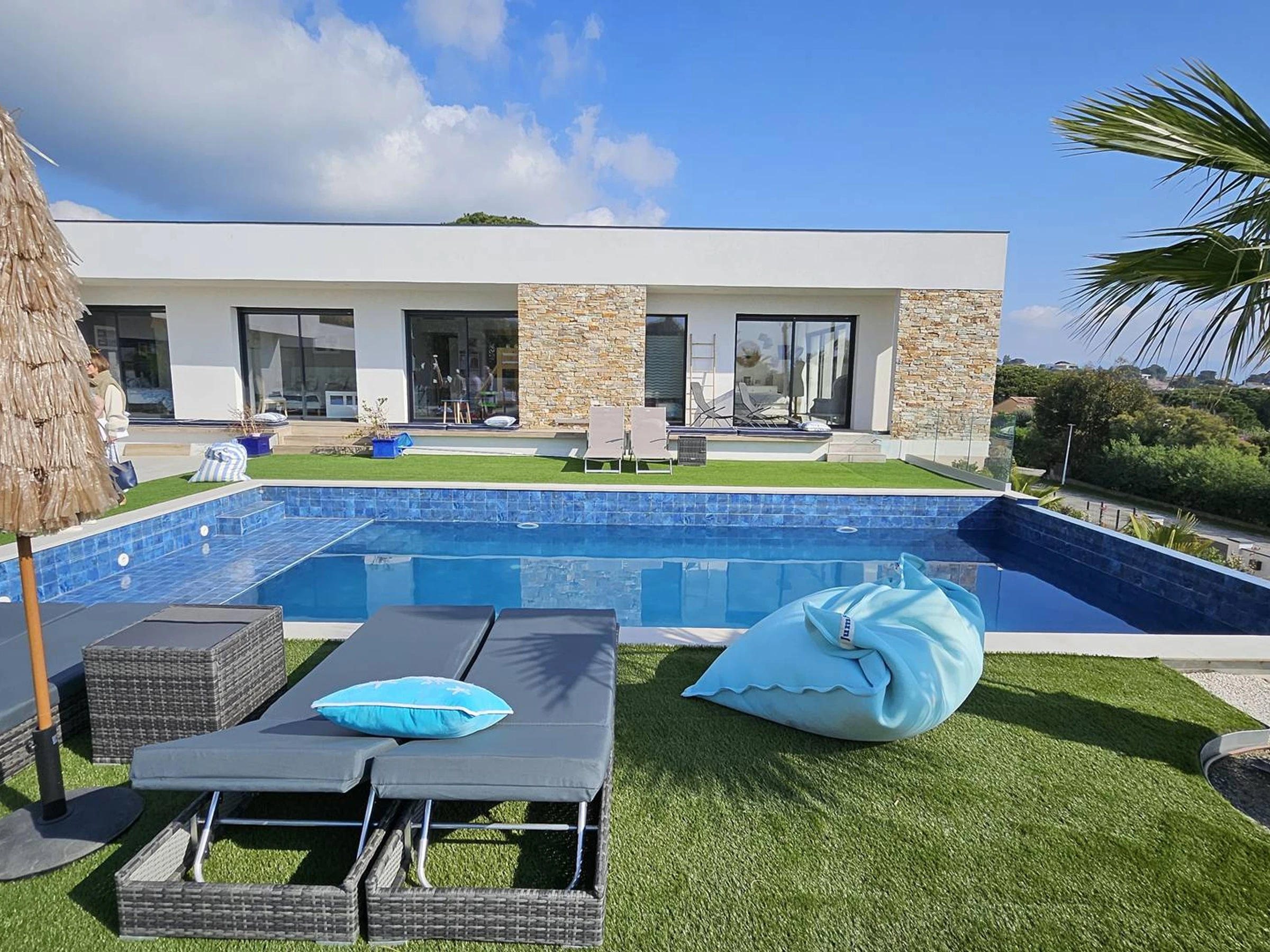 Apreciarás la elegancia combinada con muy buen gusto. En el nivel de la terraza, piscina, sala de estar, comedor con cocina abierta, lavadero Dormitorio 1 y 2 con cama de 160 cm, baño con ducha, dormitorio 3 con su baño con cama de 140 cm + cama infantil de 90 cm, dormitorio 4 llamado parental (cama de 160 cm) con su baño con ducha, vestidor y una discreta ducha en la terraza. Casa de piscina totalmente equipada con cocina, barbacoa de gas y plancha de gas.