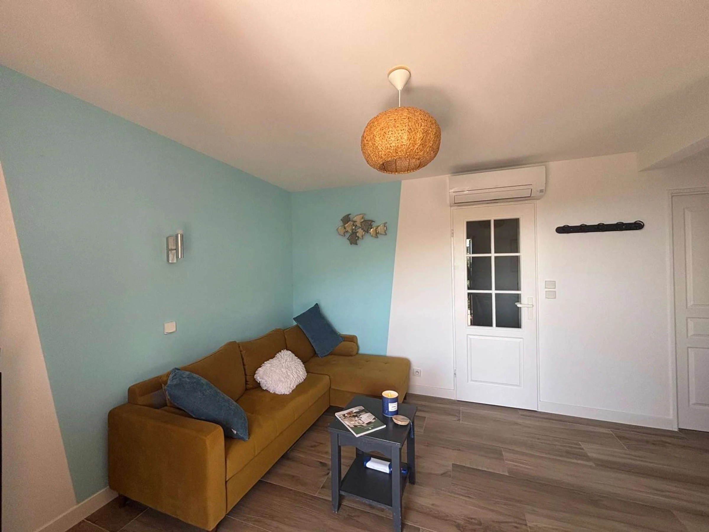 El alojamiento: Este apartamento vacacional, renovado con buen gusto y con aire acondicionado, consta de una sala de estar con sofá cama, una cocina totalmente equipada, un dormitorio con cama de matrimonio, un cuarto de ducha, una alcoba con cama de matrimonio y espacio de almacenamiento, y un aseo independiente.