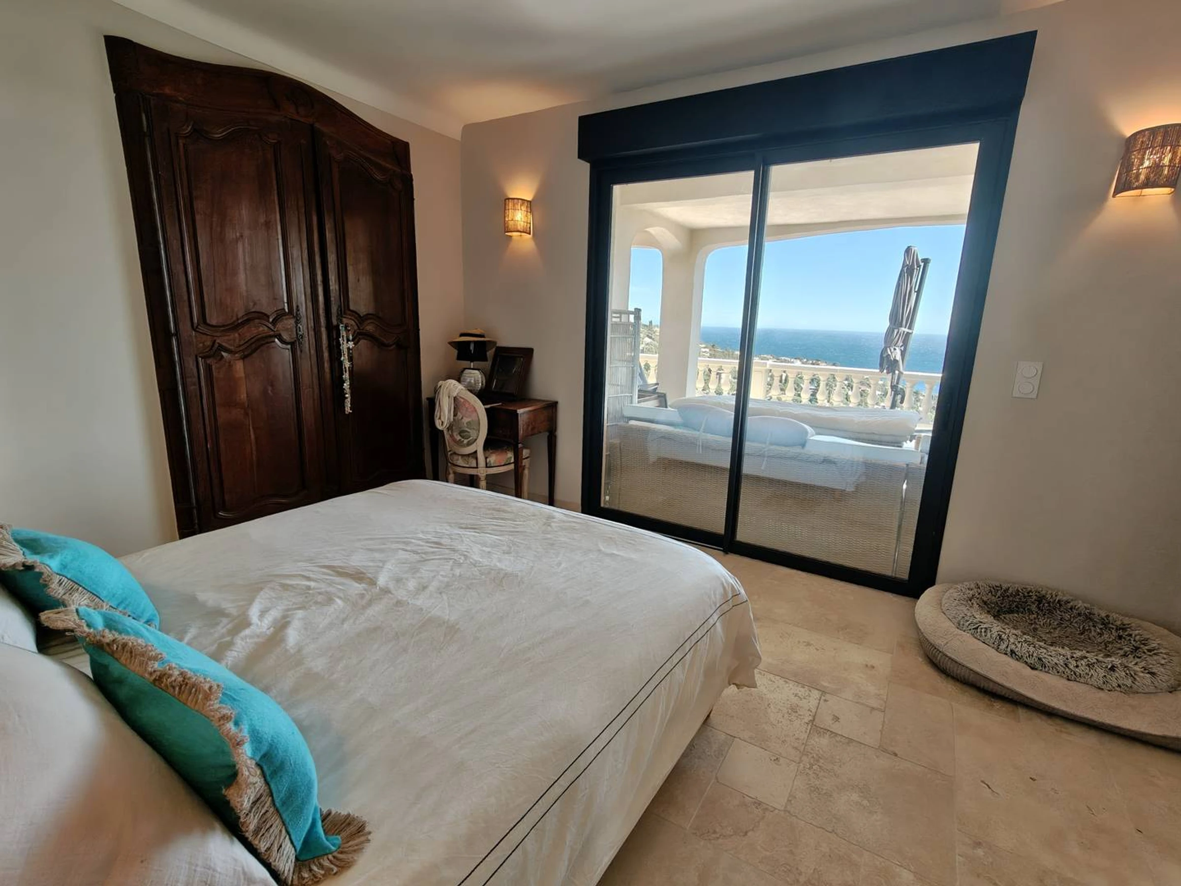 Construida sobre una parcela de 2000 m² al final de una tranquila calle sin salida, su jardín mediterráneo es igualmente encantador. La gran piscina de 8,7 x 3,5 m y 1,5 m de profundidad cuenta con una cubierta de seguridad y una amplia terraza de madera. También dispone de una pista de petanca, una mesa de ping-pong y una agradable zona de relax junto al jardín de cactus. Todas las comodidades necesarias para el alquiler están incluidas. Esta propiedad consta de 6 habitaciones: Habitación 1 (160 m²), Habitación 2 (140 m²), Habitación 3 (160 m²), Habitación 4 (dormitorio con 4 camas de 80 m²), Habitación 5 (1 cama de 140 m²) y una habitación principal con baño en suite y una cama de 180 m² (ropa de cama y toallas disponibles para alquilar bajo petición). Hay 3 cuartos de ducha y 1 baño. Hay aparcamiento disponible para 4 vehículos. La propiedad está equipada con sistema de alarma y aire acondicionado. Disfrute de excepcionales vistas al mar y a la bahía.