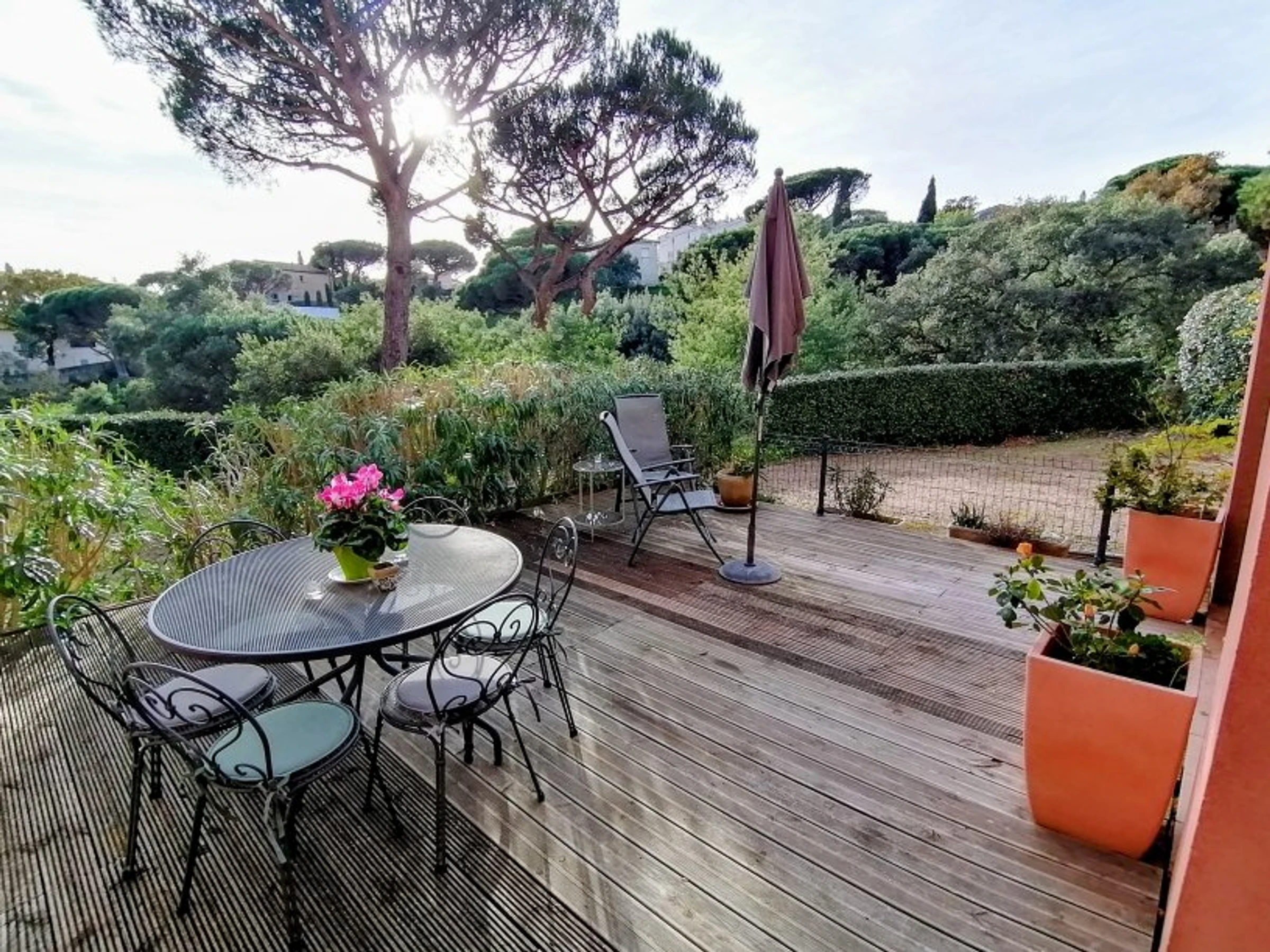 Les Issambres, Riviera Francesa, frente a St. Tropez, apartamento muy confortable de 2 dormitorios (63 m²) en la residencia Mas d'Esquières con piscina. Aire acondicionado en dormitorios y salón, agradable terraza con jardín contiguo, plaza de aparcamiento. Plancha eléctrica, lavadora, lavavajillas, cocina bien equipada. La amplia terraza orientada al sur y su jardín contiguo de 200 m² le permiten disfrutar del sol en paz y tranquilidad. El mar y las tiendas están a 800 m por un sendero bajo los pinos piñoneros, ¡o a 3 minutos en coche! Plaza de aparcamiento reservada.