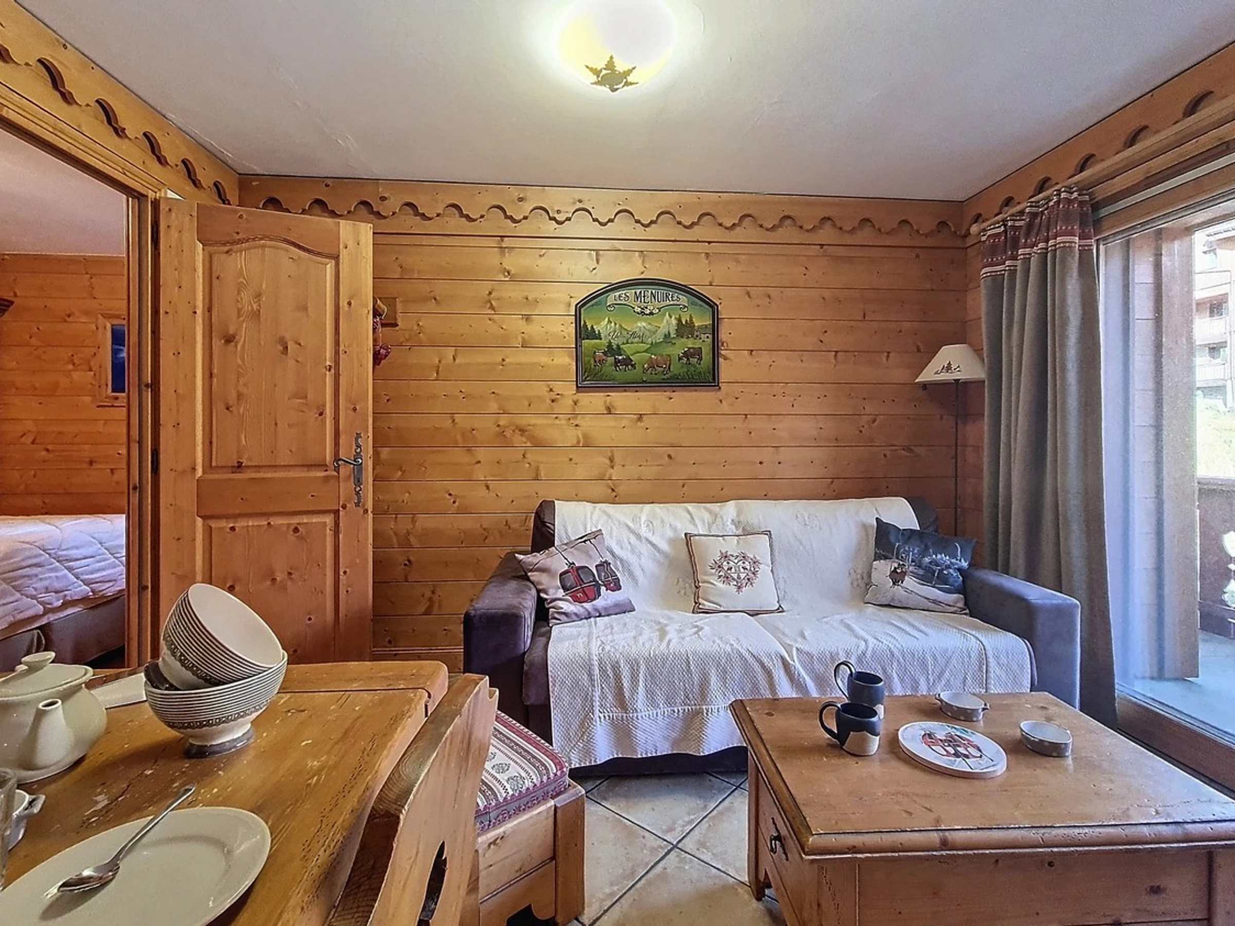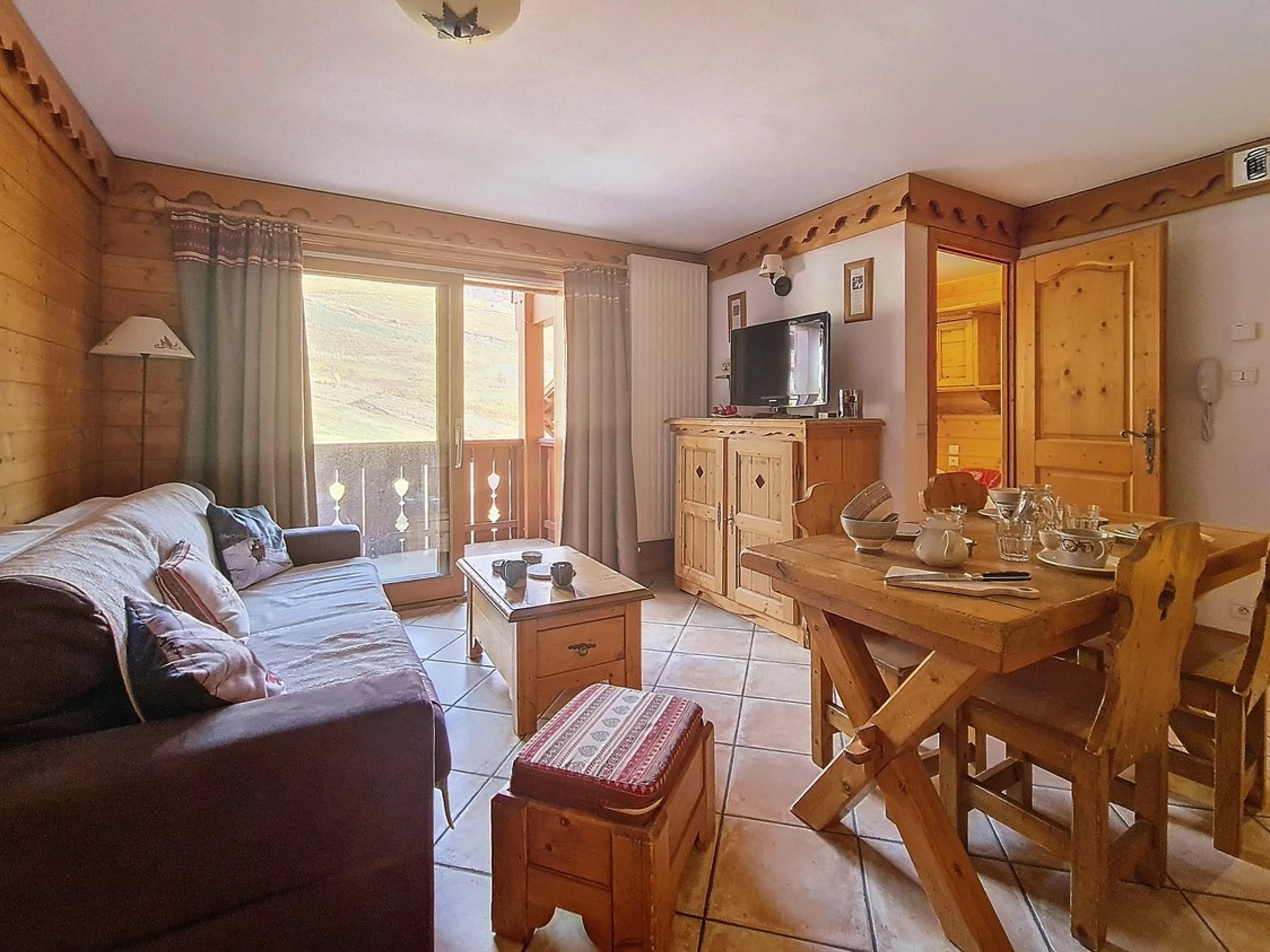 Salón: 1 sofá cama doble rápido. Equipado con televisión.